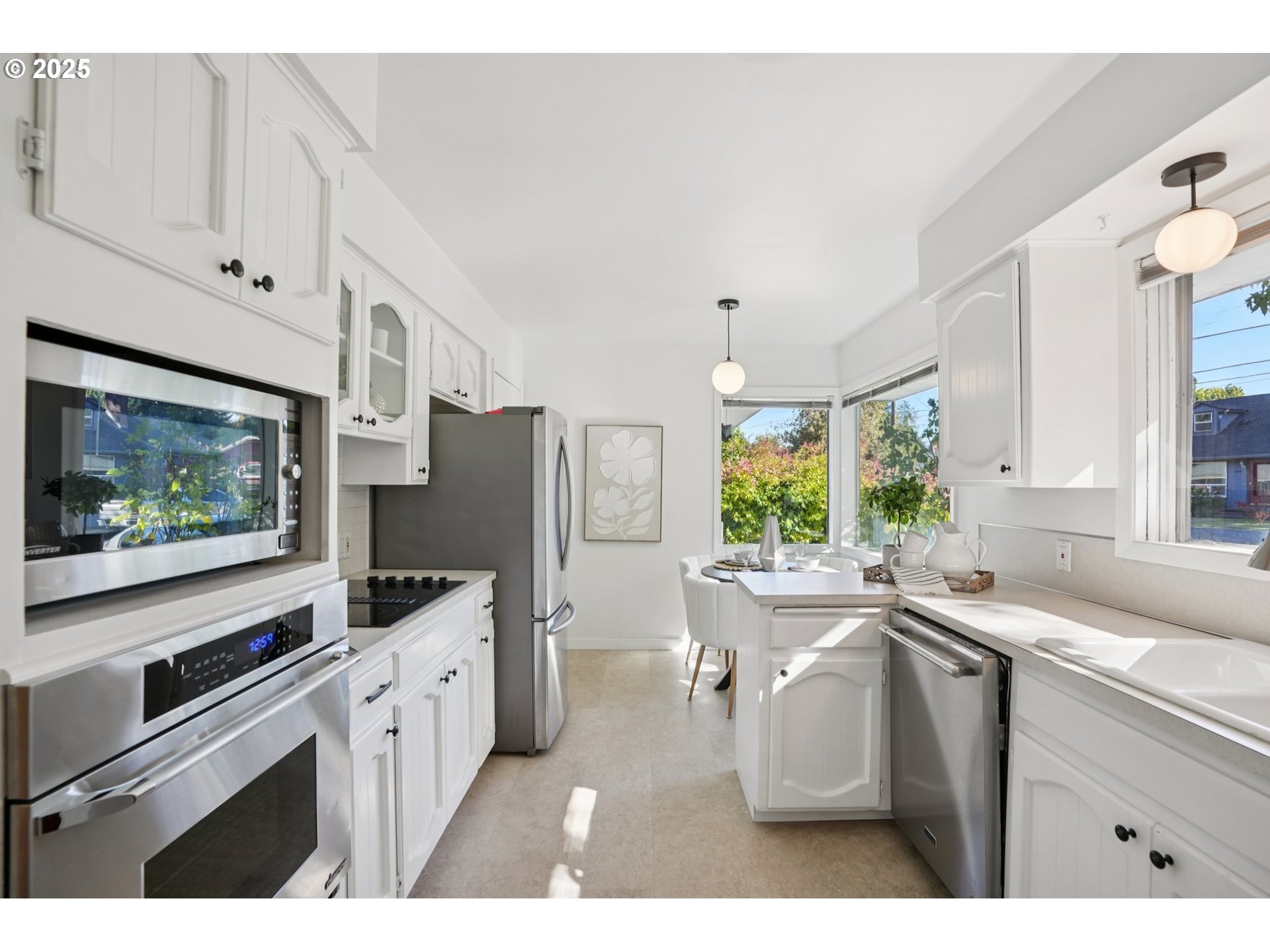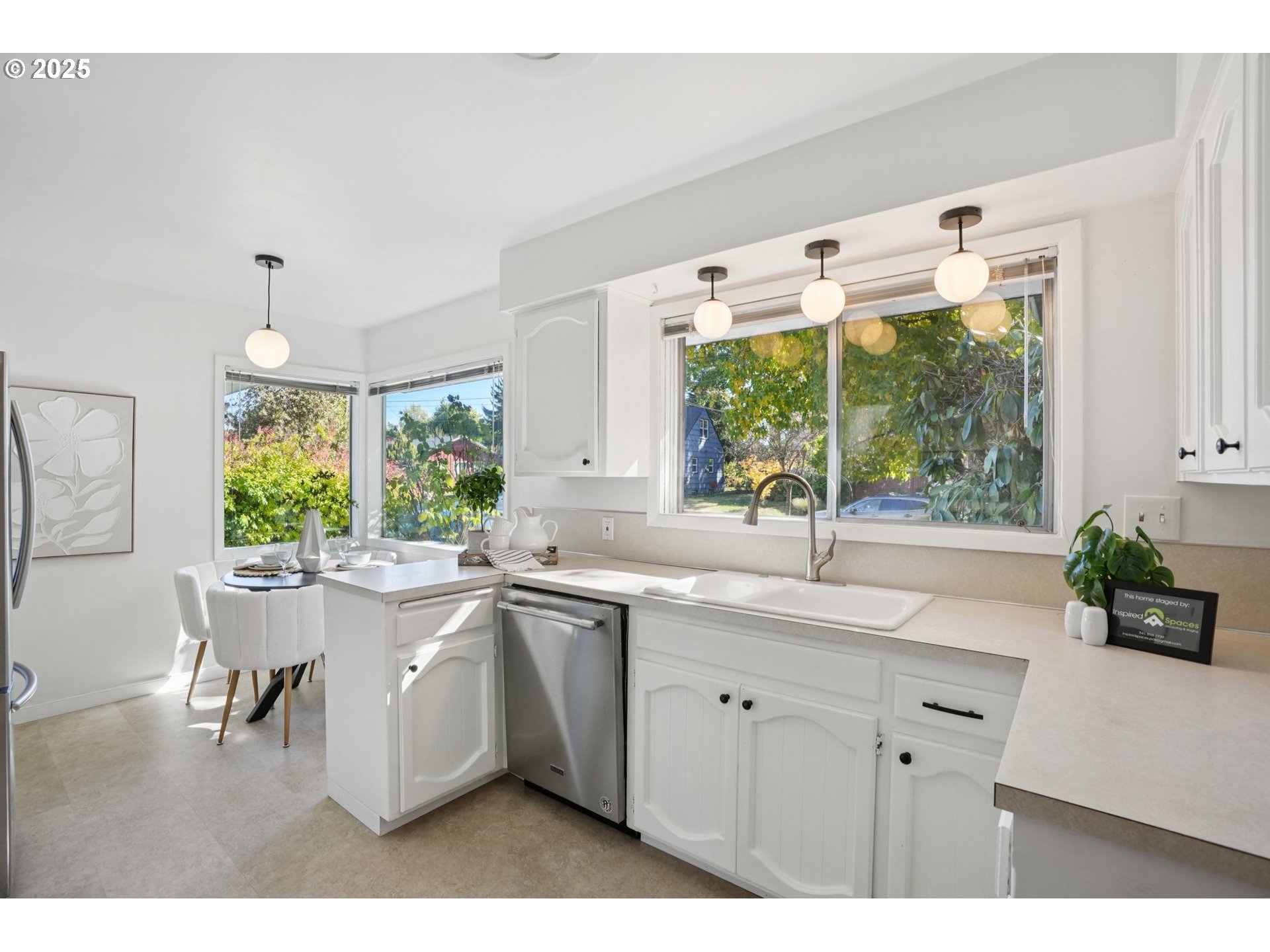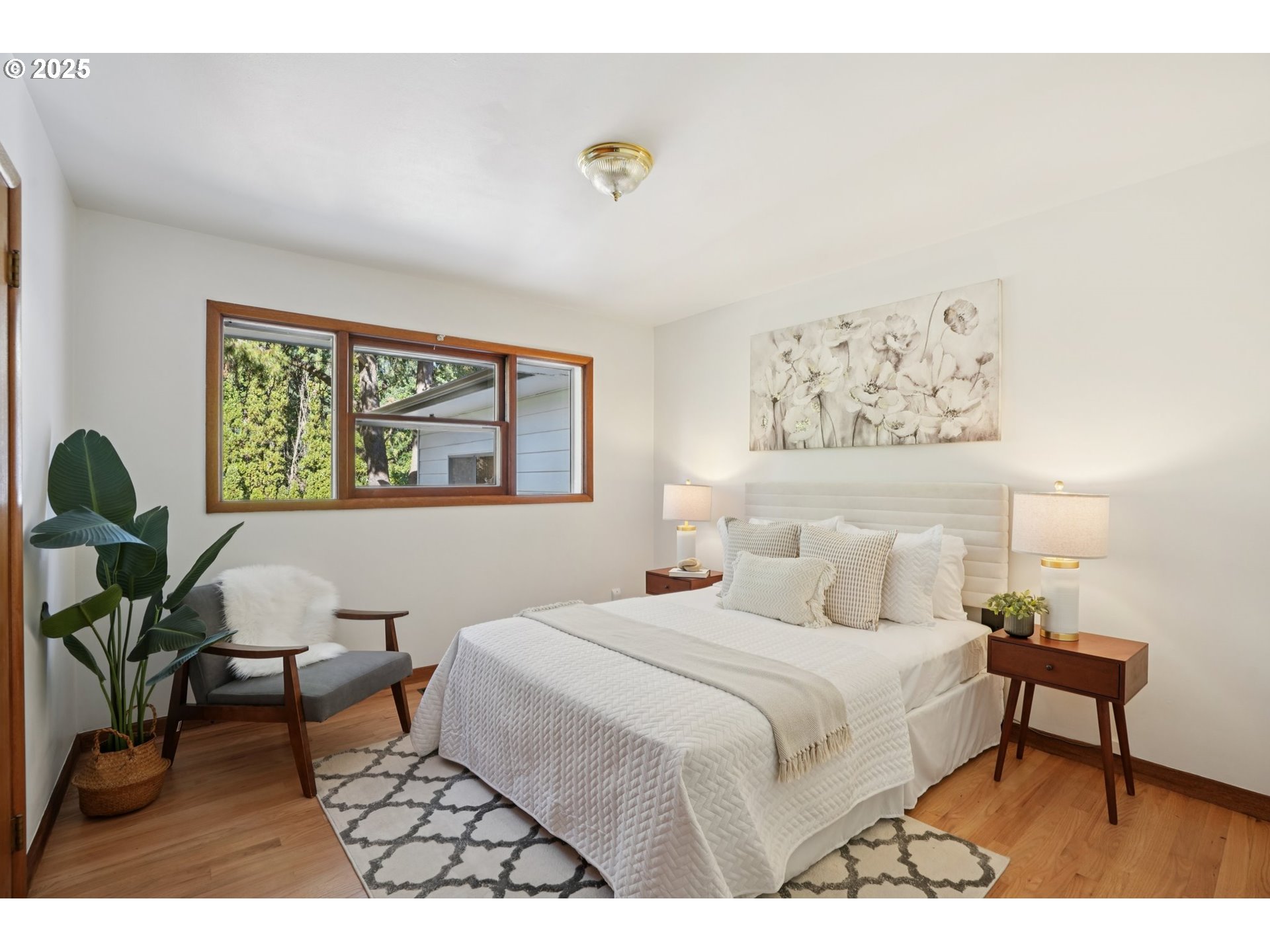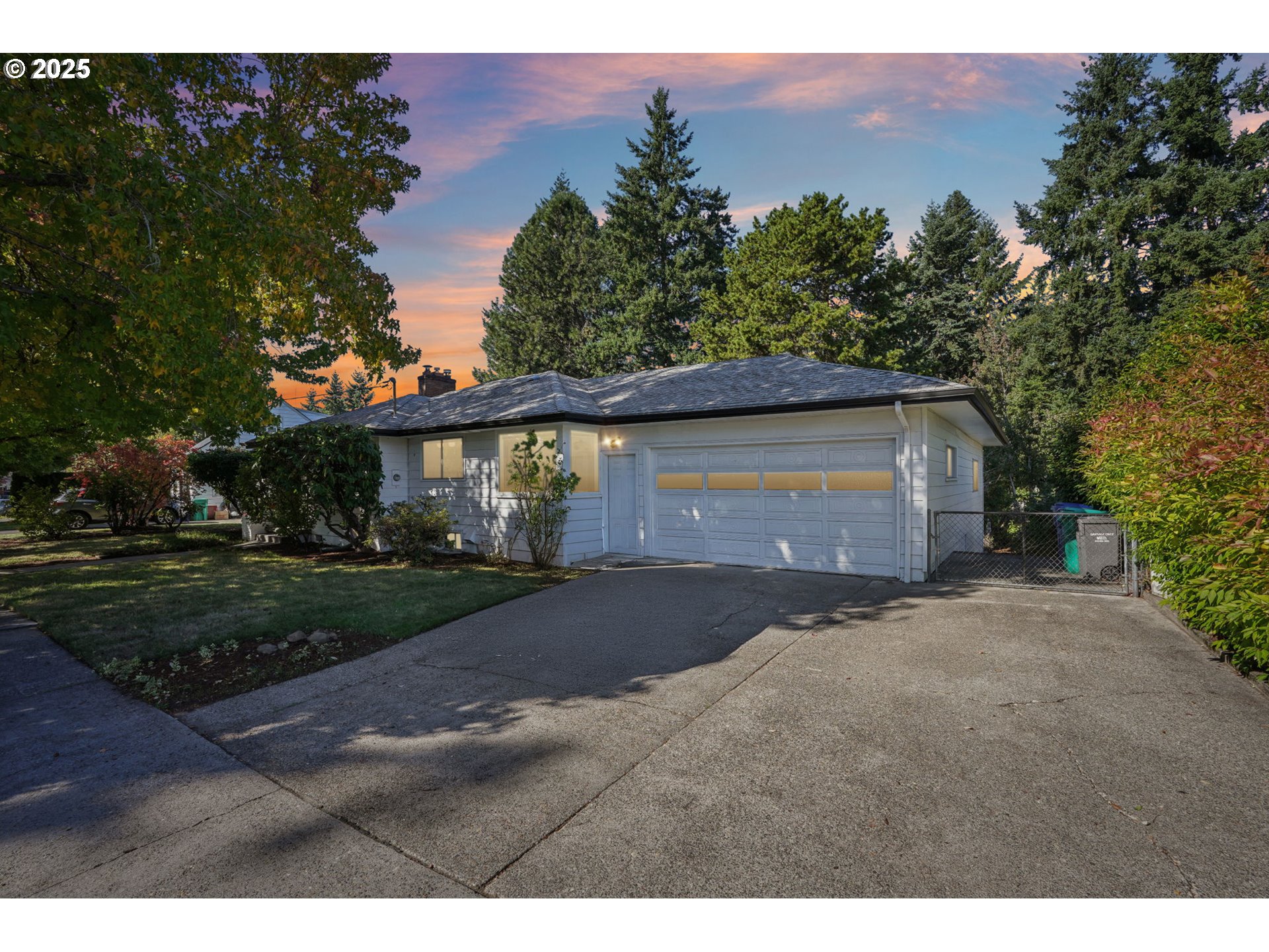 - Lovingly maintained by the same owner for over 35 years this spacious 3-bedroom, 2-bath daylight ranch is rich with mid-century modern character—clean lines, natural light, and timeless design elements throughout.The main level showcases beautiful refinished hardwood floors, a generous living room with an expansive picture window, gas fireplace, and a formal dining area with tray ceiling perfect for gatherings. The cozy kitchen with a sunny breakfast nook captures the charm of the era, while fresh interior paint, updated light fixtures and stainless steel appliances bring a refreshed feel. A wood stove downstairs and a gas fireplace upstairs add warmth and vintage ambiance.The full lower-level apartment—with a private entrance—offers incredible versatility. Ideal for rental income, guests, or multi-generational living, it features a large family room, dining area, kitchenette, full bath, and a 3rd bedroom. A spacious laundry/utility room provides ample storage and workspace.A generous 4-car garage is paired below with a spacious 15x20 unfinished bonus area—ideal for a creative studio, sleek home office, or functional workshop. Set on an oversized lot surrounded by mature landscaping, this park-like setting with idyllic pathways features a fully fenced private backyard with spacious garden area, fruit trees, a storage shed,fire pit, space for a pool and is patio—perfect for outdoor entertaining. Conveniently located near parks, shops, and transit, this timeless mid-century residence is ready for its next chapter. [Home Energy Score = 4. HES Report at https://rpt.greenbuildingregistry.com/hes/OR10242335]