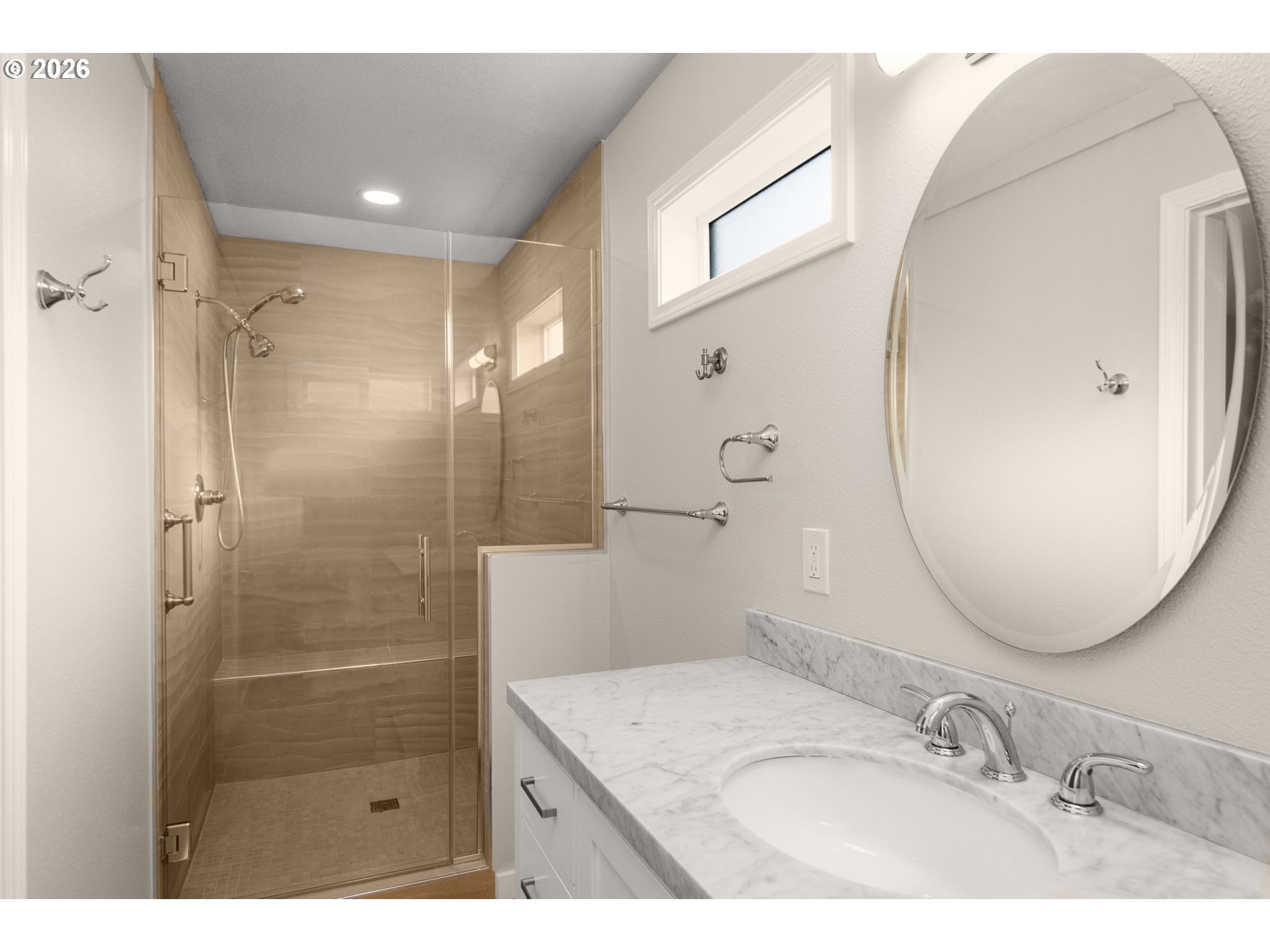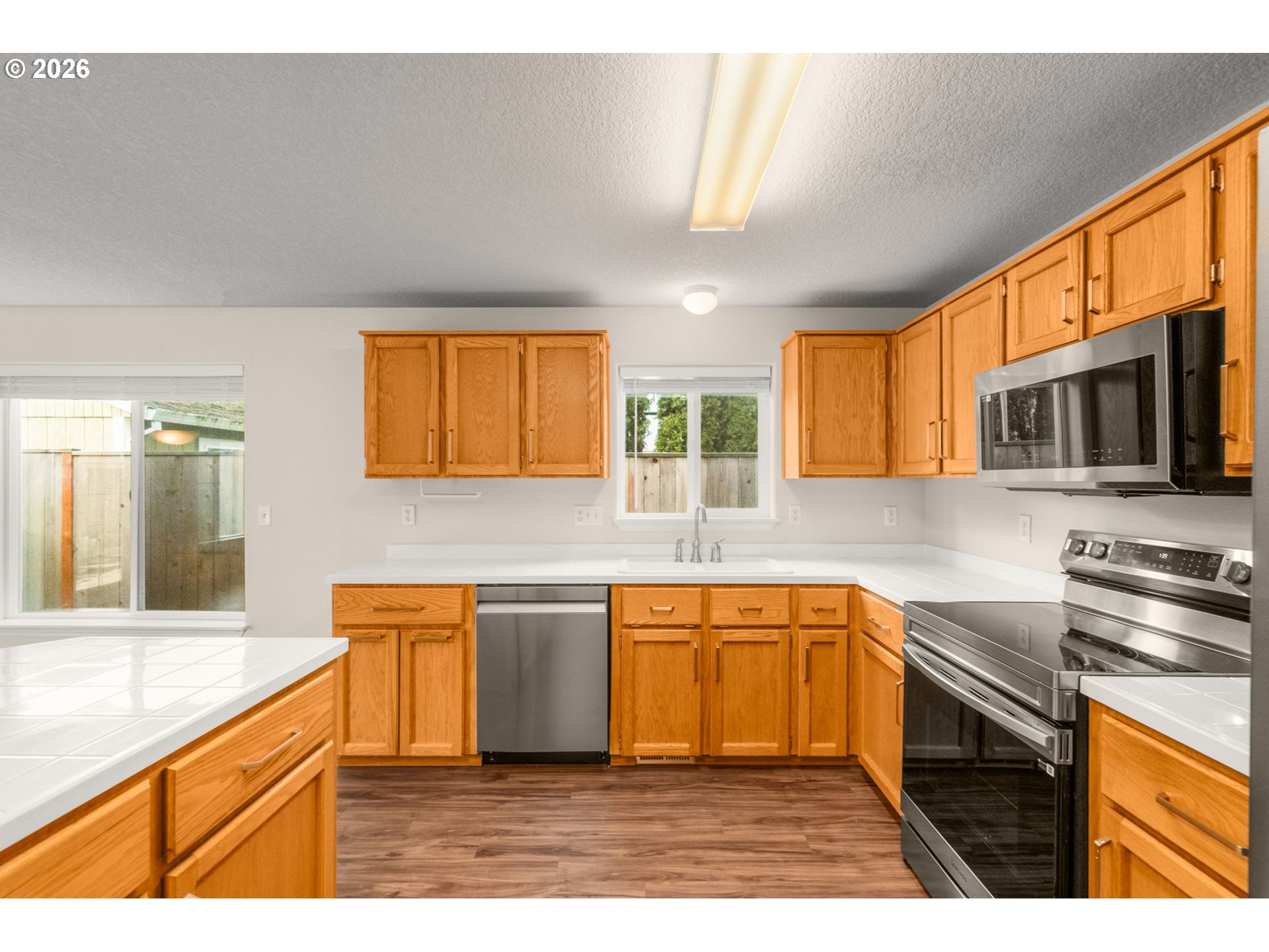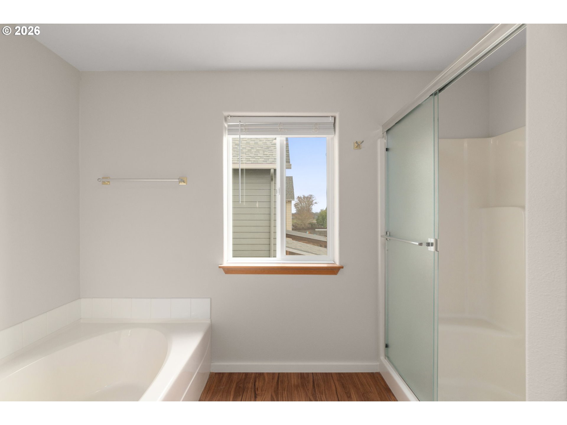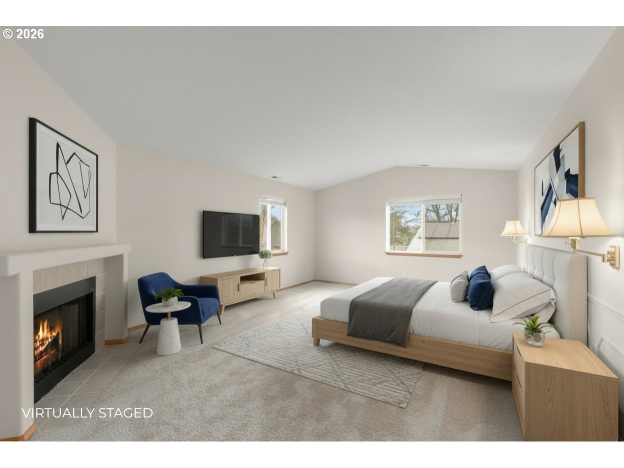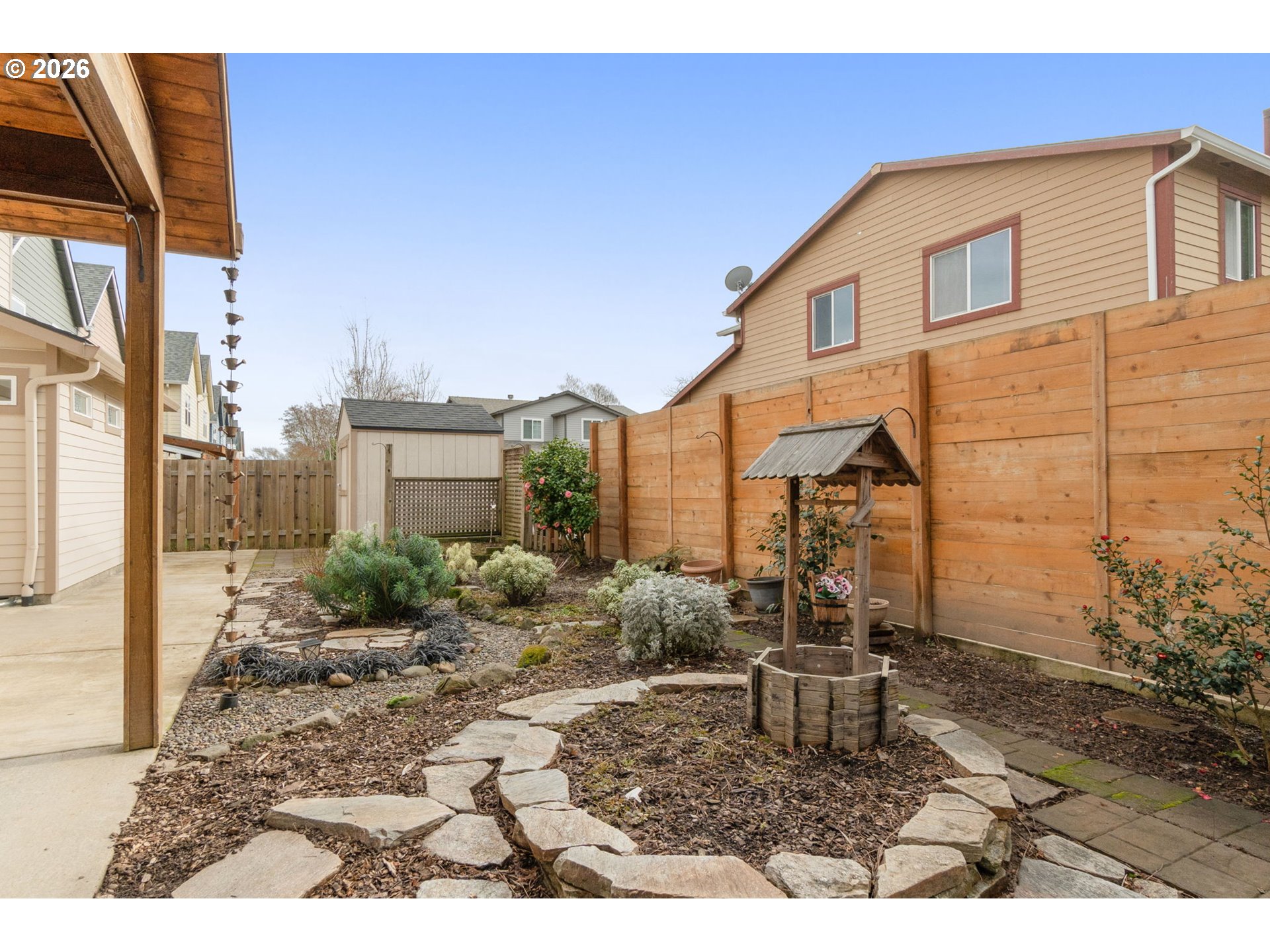 - Open and versatile floor plan designed with space for everyone. This home offers two primary bedroom suites—one on the main level and one upstairs—making it ideal for multigenerational living or flexible guest accommodations.The main-level primary suite features a tiled walk-in shower, quartz countertops, walk-in closet, and private exterior access. The open great room is spacious and inviting with a cozy fireplace, flowing seamlessly into the island kitchen with abundant counter space, eating bar, built-in microwave, stainless steel appliances, and an adjacent eating area.The eating area opens to the fully fenced, low-maintenance backyard with a covered patio and tool shed—perfect for outdoor enjoyment year-round. Upstairs, the expansive second primary suite includes its own fireplace, double sinks, soaking tub, and walk-in closet, offering a private retreat. A three-car garage provides ample space for parking, storage, or hobbies. Conveniently located close to schools, restaurants, and shopping. [Home Energy Score = 5. HES Report at https://rpt.greenbuildingregistry.com/hes/OR10240089]