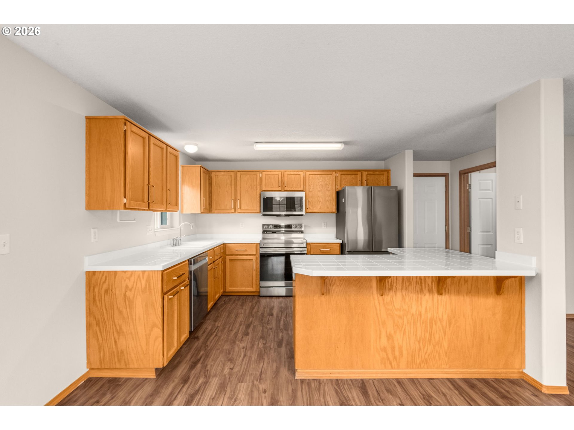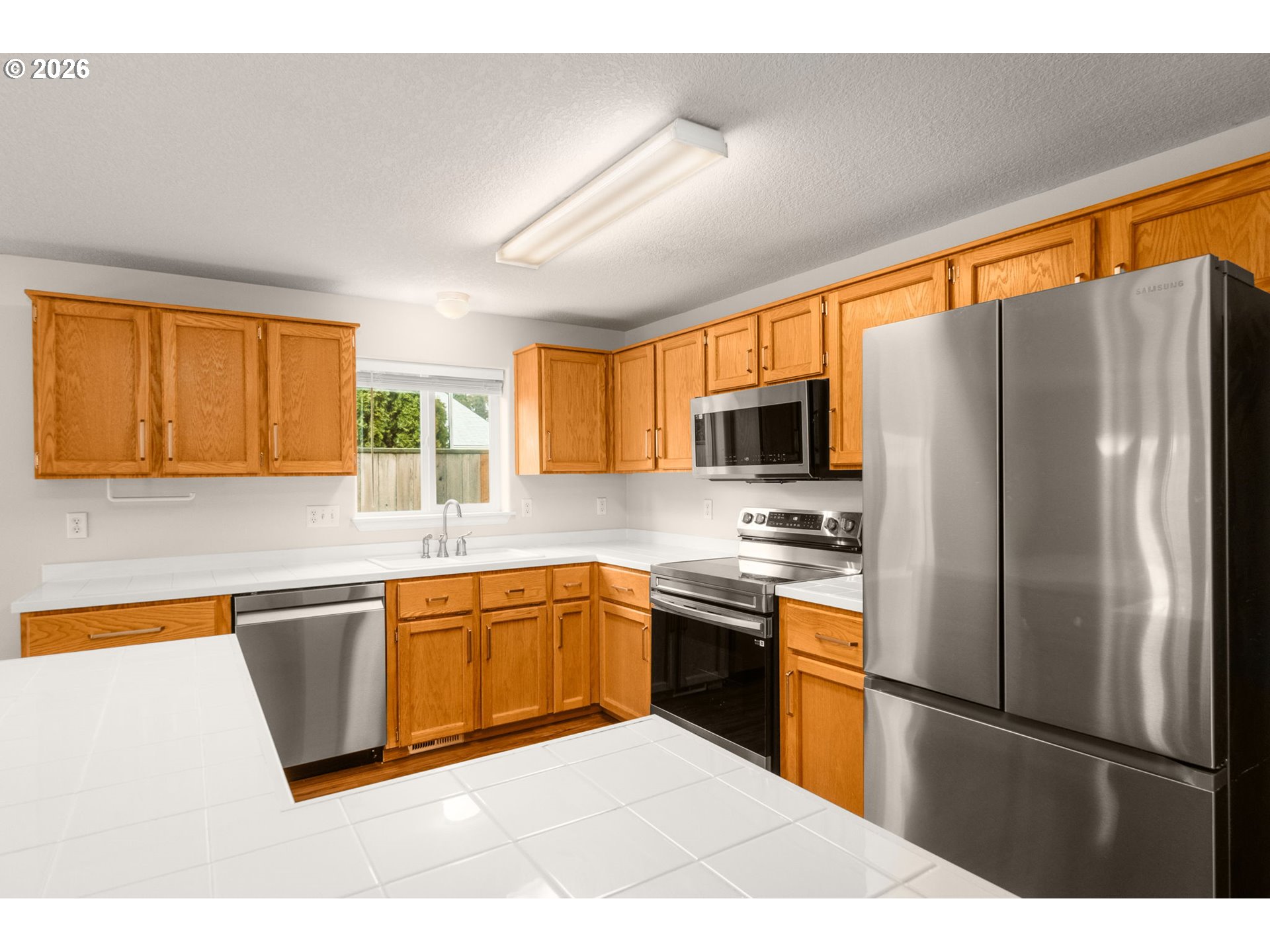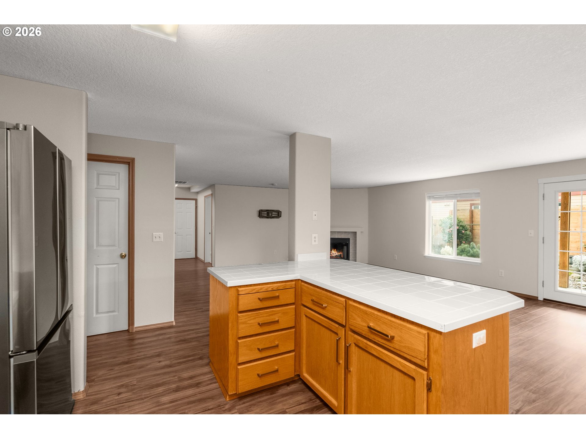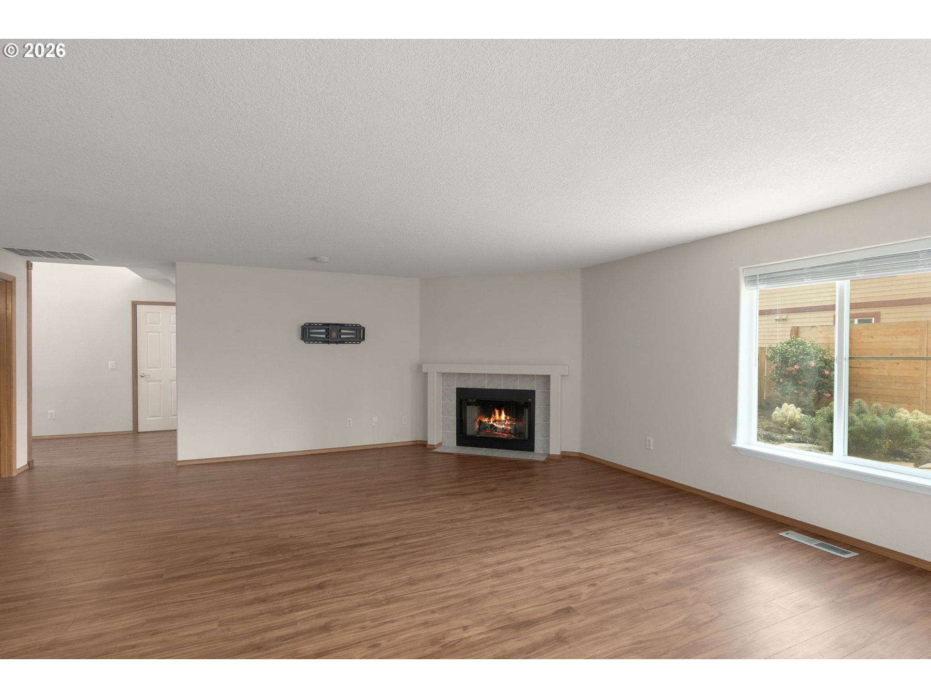 - Open and versatile floor plan designed with space for everyone. This home offers two primary bedroom suites—one on the main level and one upstairs—making it ideal for multigenerational living or flexible guest accommodations.The main-level primary suite features a tiled walk-in shower, quartz countertops, walk-in closet, and private exterior access. The open great room is spacious and inviting with a cozy fireplace, flowing seamlessly into the island kitchen with abundant counter space, eating bar, built-in microwave, stainless steel appliances, and an adjacent eating area.The eating area opens to the fully fenced, low-maintenance backyard with a covered patio and tool shed—perfect for outdoor enjoyment year-round. Upstairs, the expansive second primary suite includes its own fireplace, double sinks, soaking tub, and walk-in closet, offering a private retreat. A three-car garage provides ample space for parking, storage, or hobbies. Conveniently located close to schools, restaurants, and shopping. [Home Energy Score = 5. HES Report at https://rpt.greenbuildingregistry.com/hes/OR10240089]
