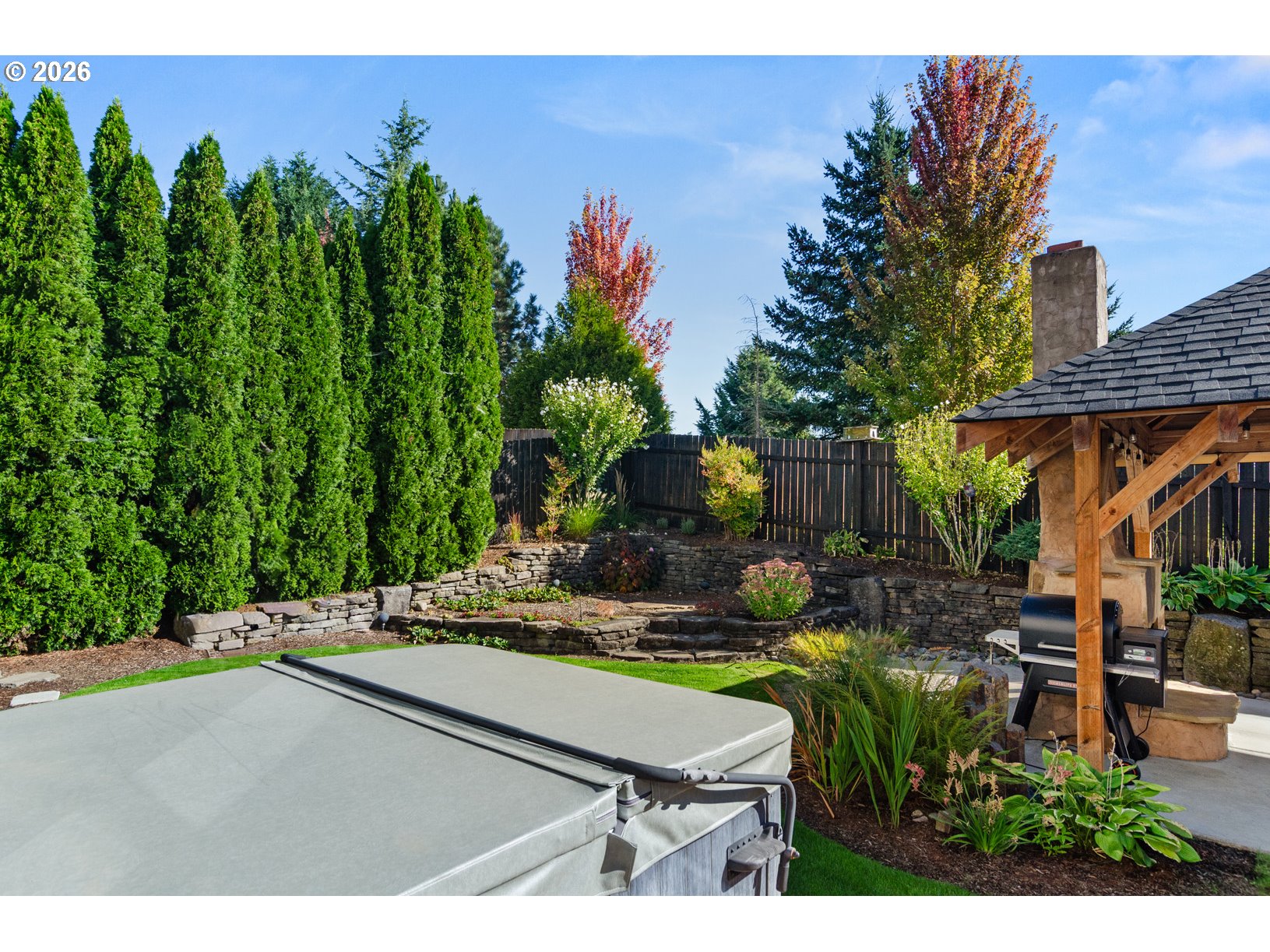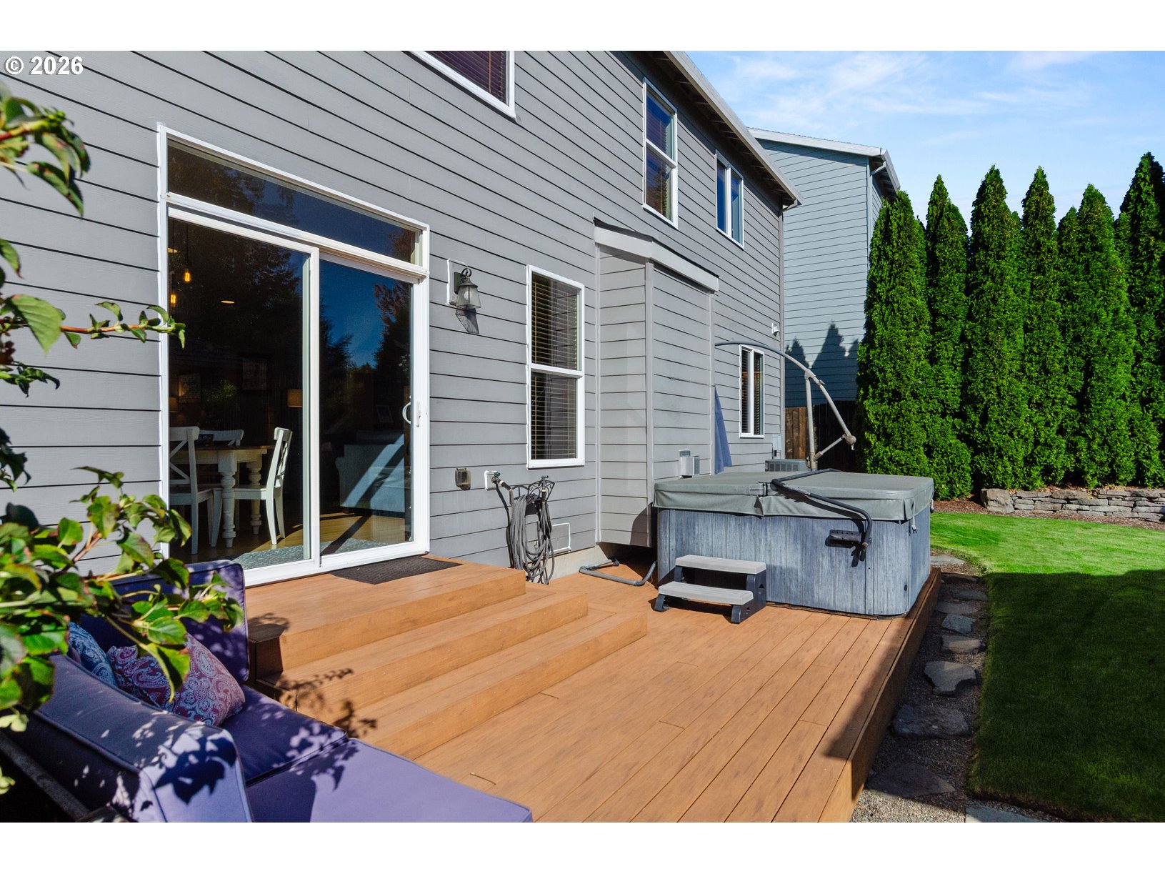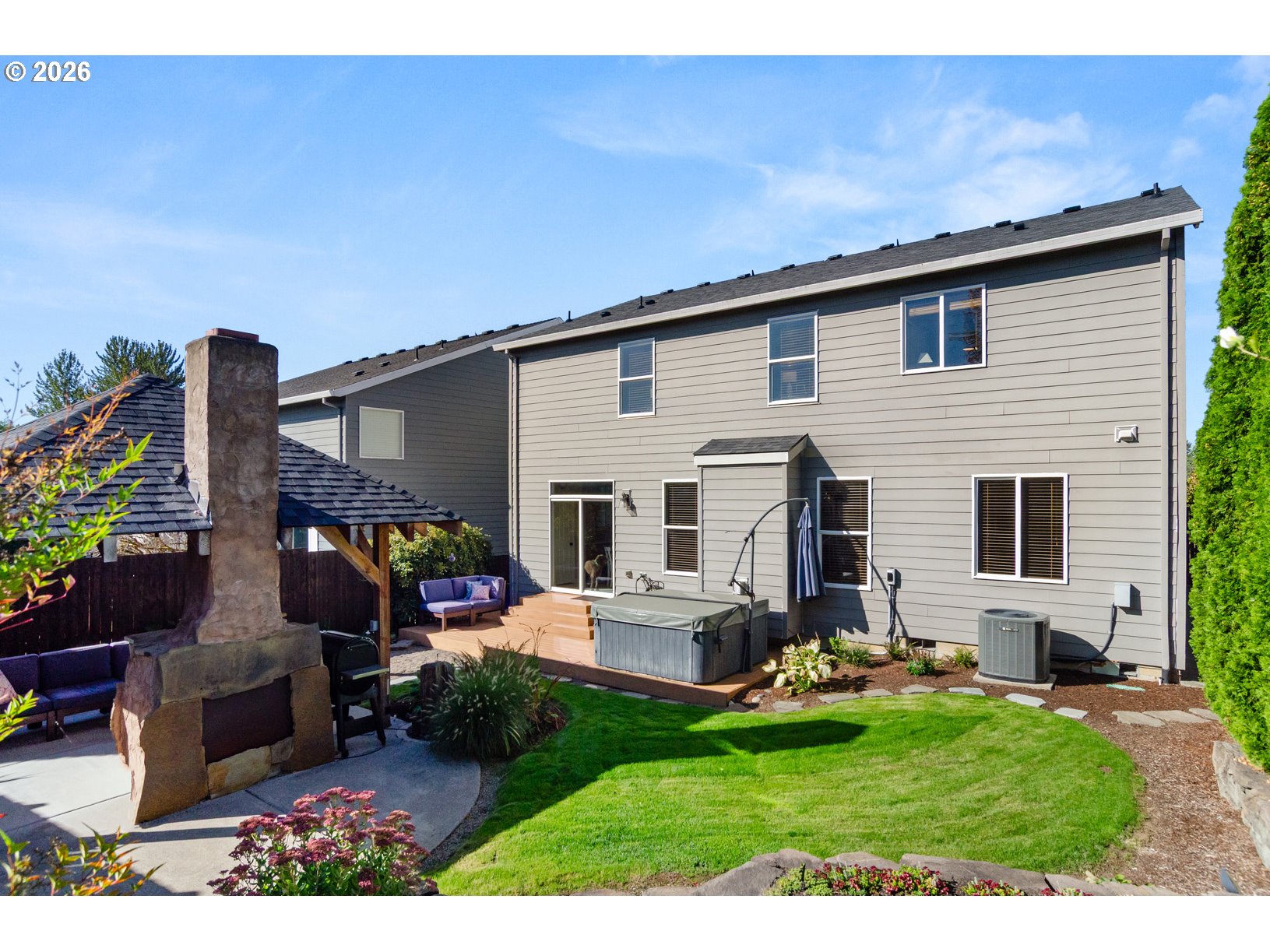 - Deck, Fenced, Free-Standing Hot Tub, Gazebo, Porch, Sprinkler, Yard
