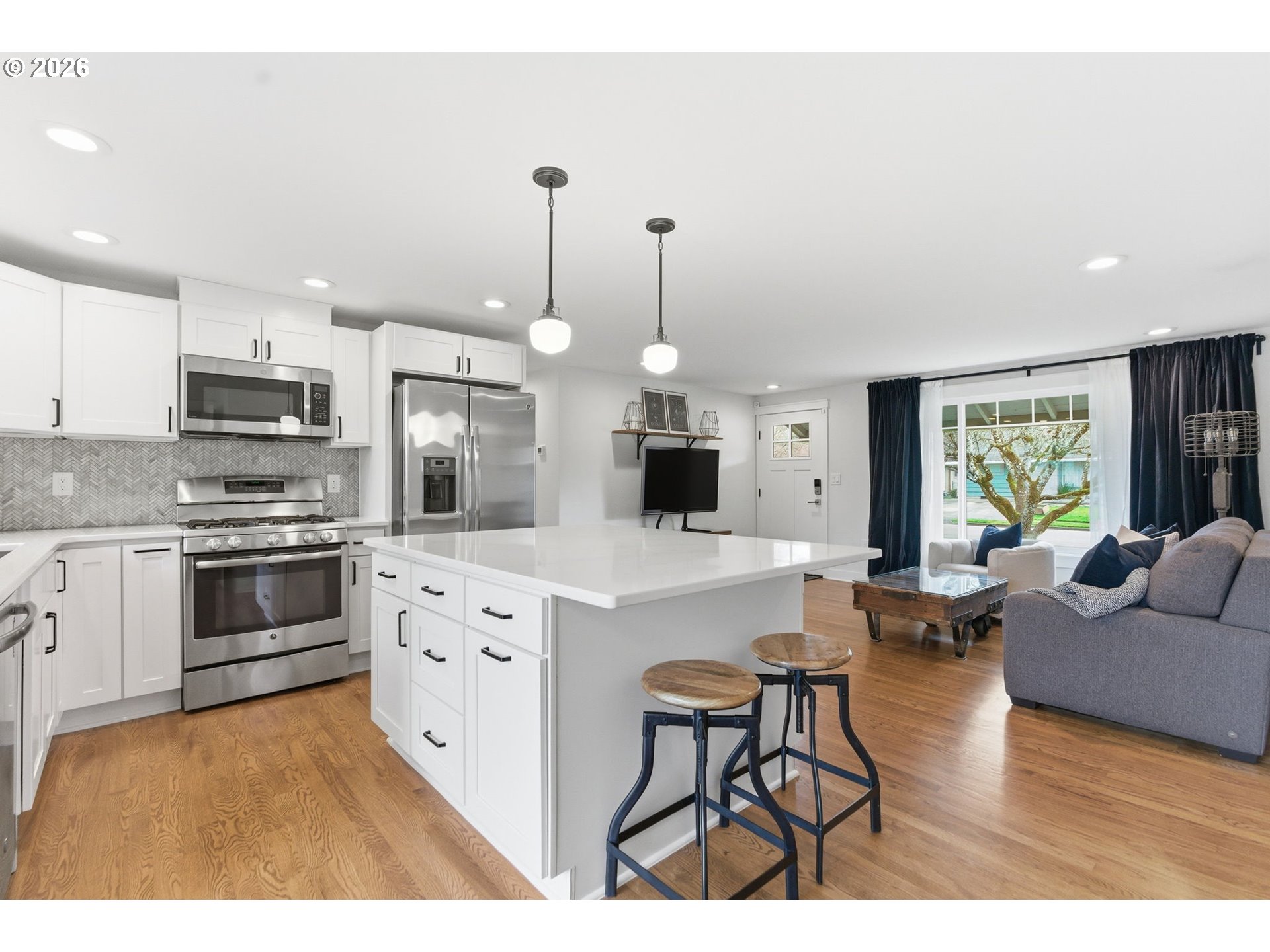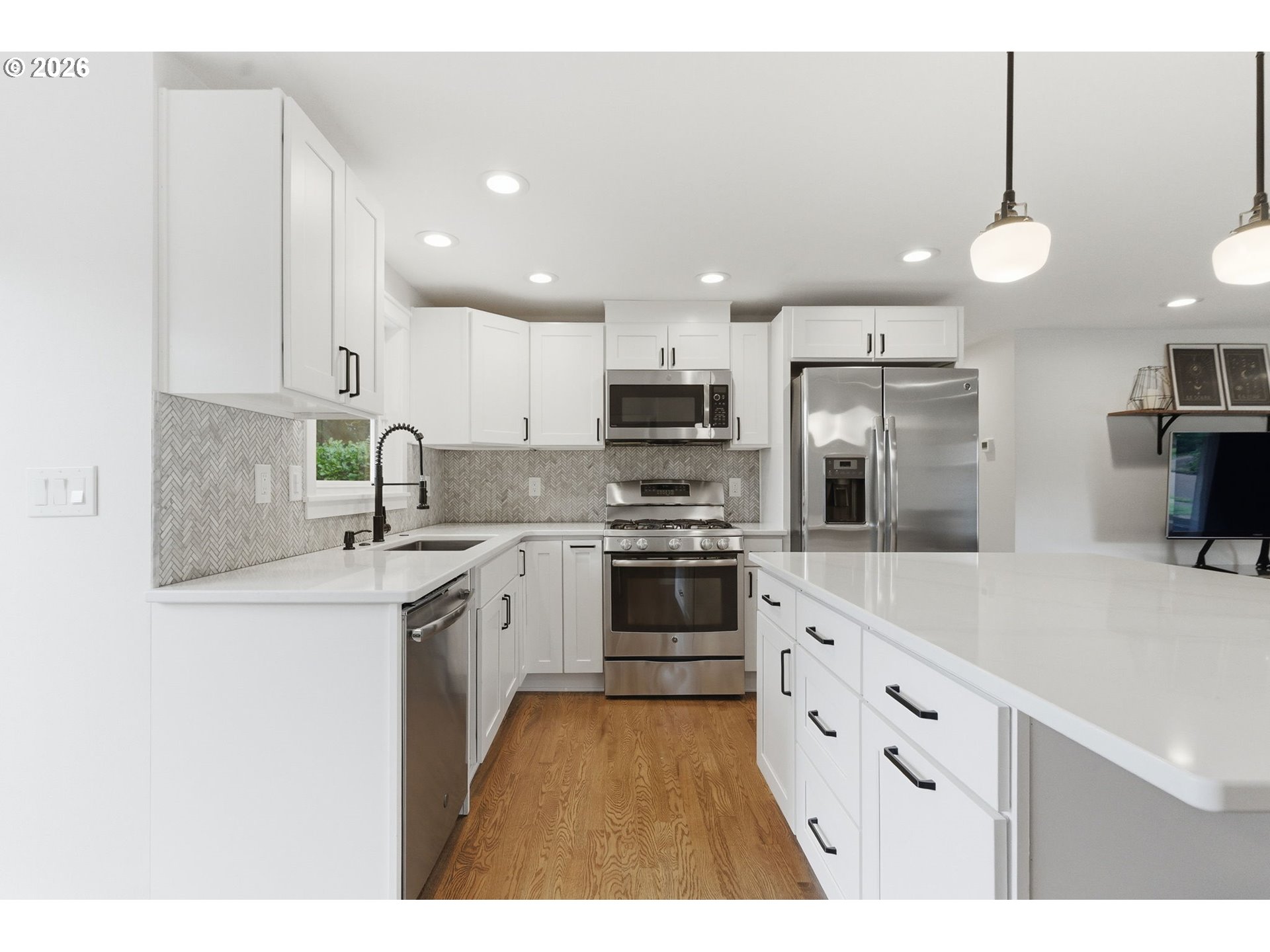- Open House Sunday 3/8 from 11am-1pm! Beautifully remodeled down-to-the-studs single-level home on a quiet cul de sac with generous sized flat lot near Cedar Hills amenities. Fantastic turn-key home for low maintenance downsizing or investment opportunities! Major 2018–2021 system upgrades include new HVAC and ducting, electrical panel and rewiring, water main, PEX plumbing, lighting, insulation, Milgard vinyl windows, new roof and new siding. Completely remodeled kitchen and open concept living features a large island with seating and storage, stainless steel GE appliances, quartz countertops, marble herringbone backsplash, and shaker cabinets. Refinished original oak hardwoods, fresh interior paint, oil-rubbed bronze finishes, and an open layout create a bright, welcoming feel. Full bath offers new tile, soaking tub, custom double vanity, barnwood accents, and built-in Bluetooth speaker. Flexible third bedroom with custom Murphy desk. Laundry/mudroom plus a half bath for guests are directly off the single car attached garage. This 0.22 acre lot boasts a large & fully fenced backyard featuring a new TREX deck (2024), patio and fire pit for endless entertainment. Plenty of room to park additional vehicles. Close to Cedar Hills shopping and dining, with easy access to freeways and the nearby employment hub including Nike, Intel, Columbia Sportswear, and St. Vincent’s. Blocks from downtown restaurants, Beaverton Farmer's Market and city parks. Walk score of 72. Move-in ready with modern systems and thoughtful updates throughout!