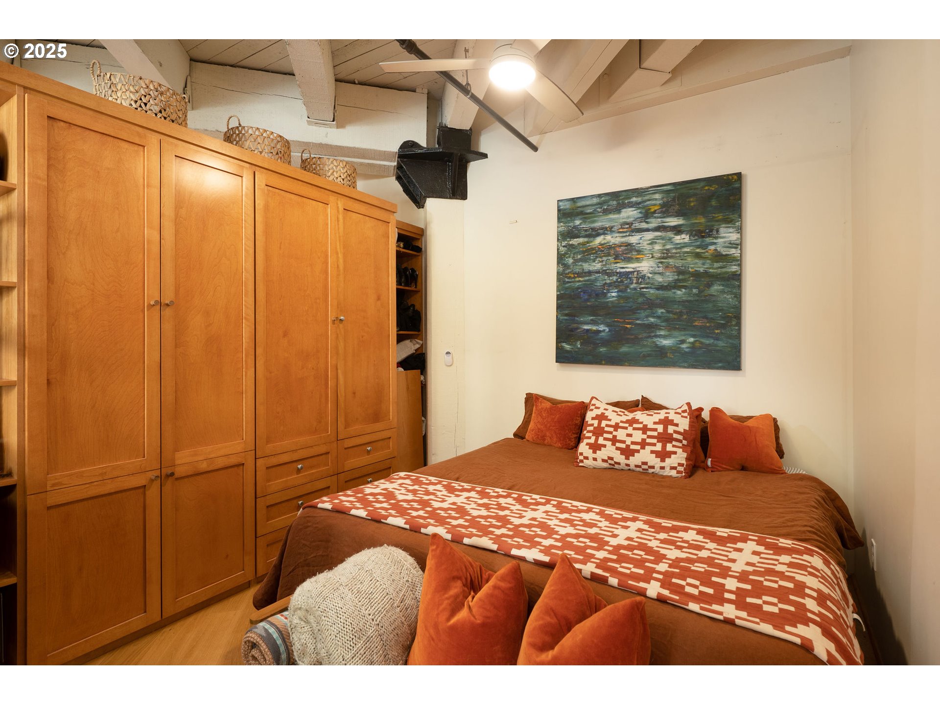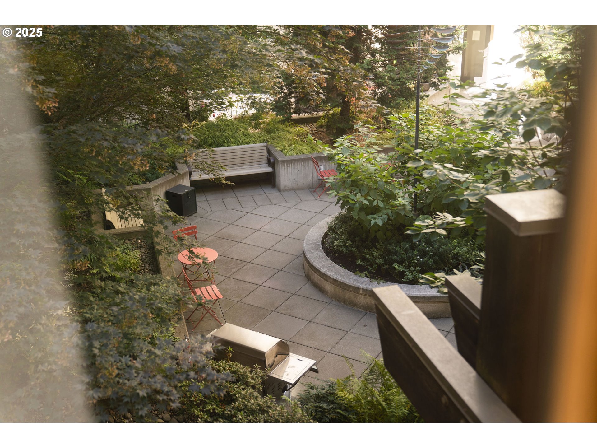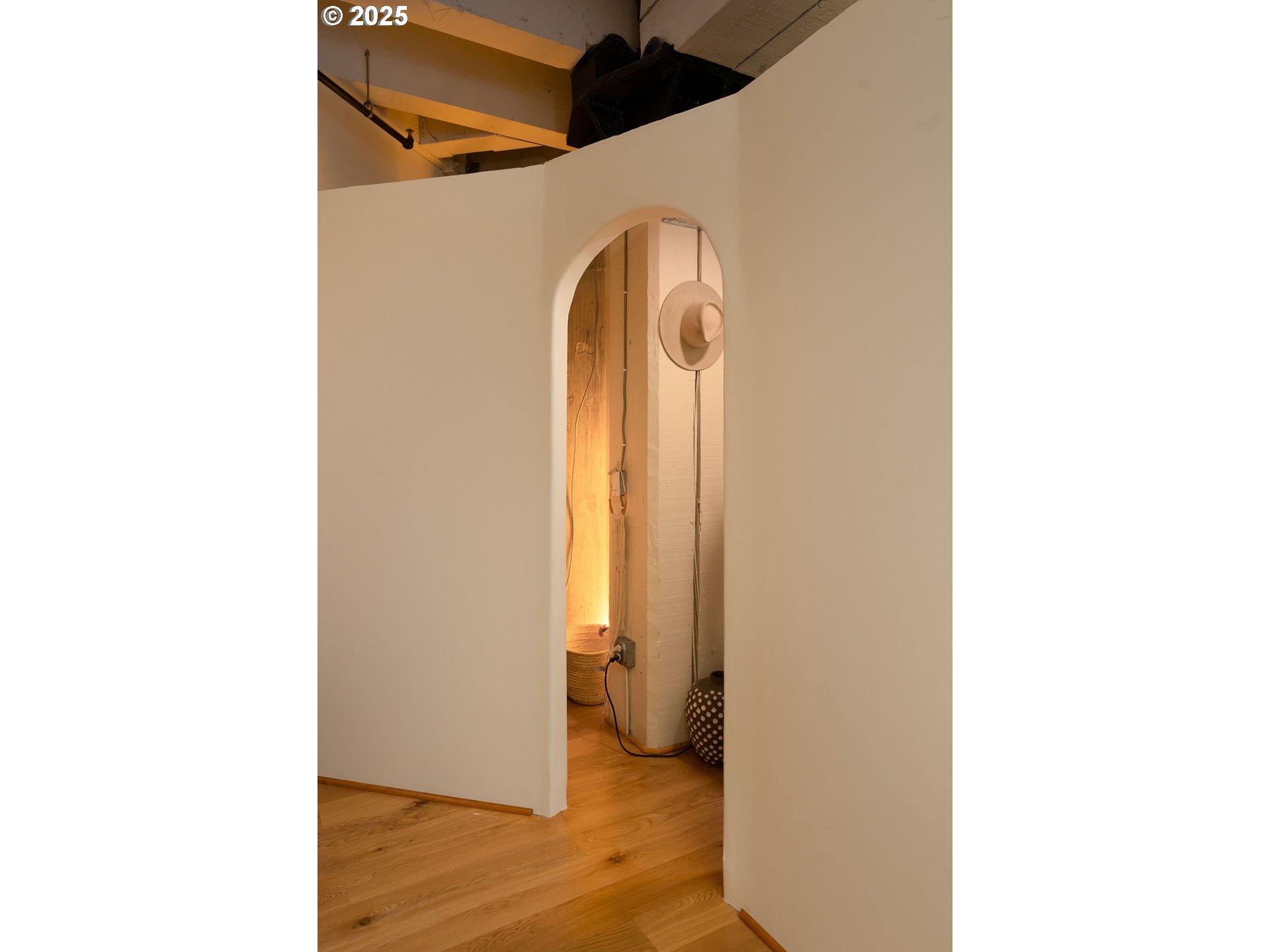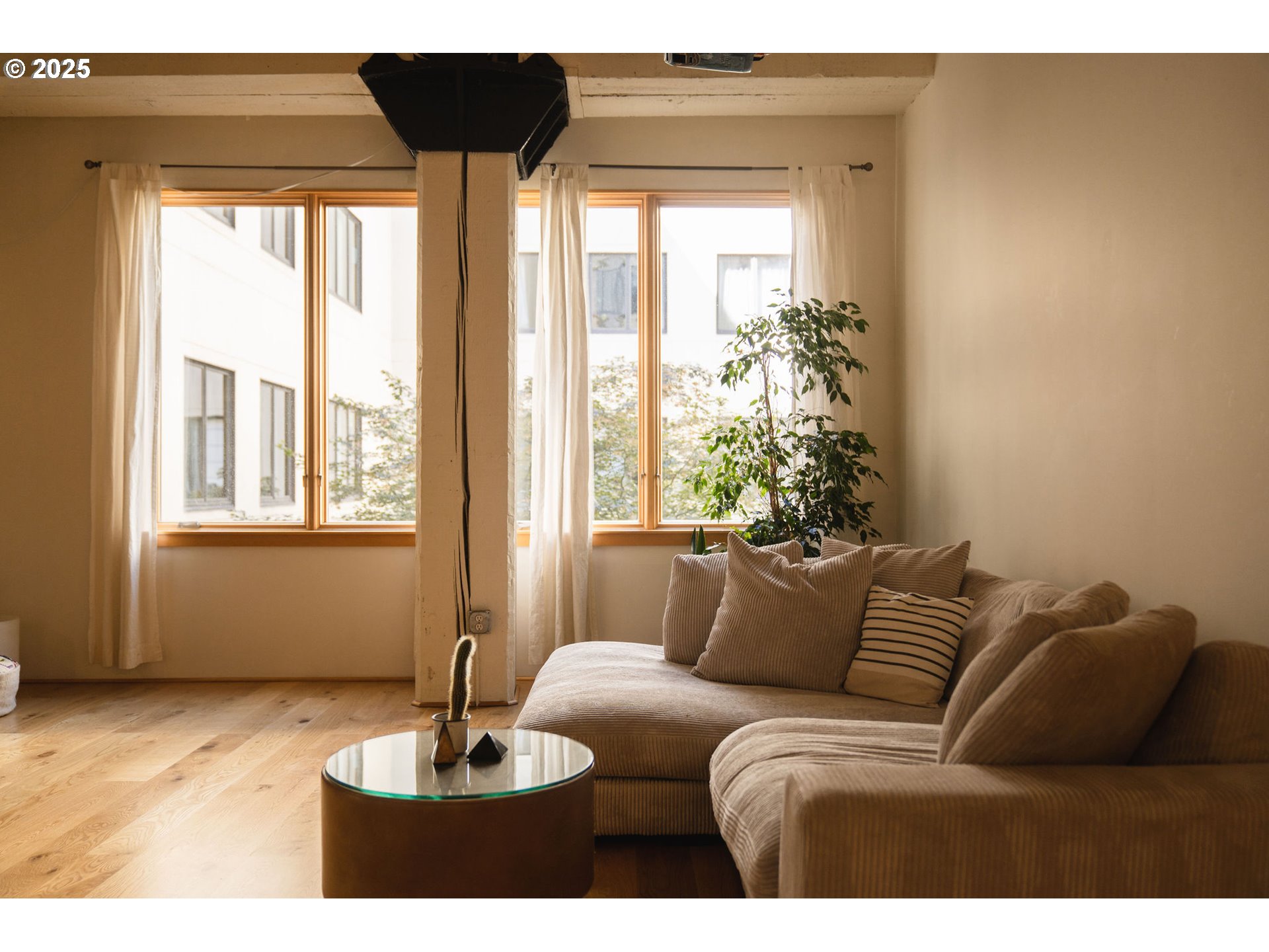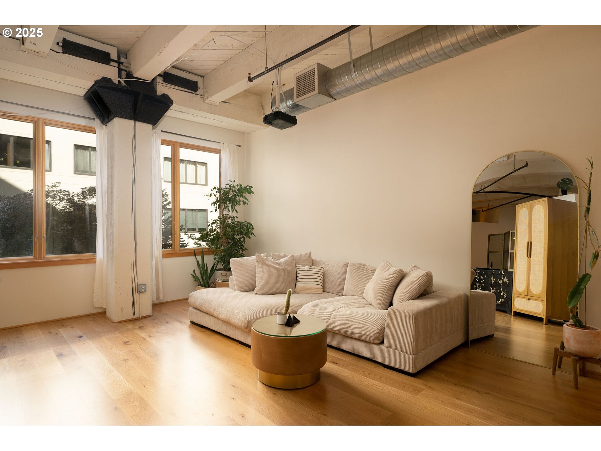 - Embrace the charm of Portland's Pearl District with this stunning condo in the renowned Marshall Wells Lofts. Originally built in 1910 as a hardware warehouse designed by Daniel Burnham, this building has been transformed into a modern residential gem while preserving its industrial character. Now listed on the National Register of Historic Places, the lofts boast high ceilings, exposed timber beams, and a beautifully designed central atrium. This particular unit shines with gleaming hardwood floors and an abundance of natural light, offering delightful views of the community courtyard. The open layout is perfect for relaxation and entertaining, featuring custom built-ins and a unique archway leading to a thoughtfully designed closet. The modern kitchen is a chef's dream, equipped with new tile countertops, a stylish backsplash, a new dishwasher, and stainless steel appliances. The spacious living room features tall windows that enhance the inviting atmosphere. The well-appointed bathroom includes a tiled vanity, fresh paint, and a convenient laundry area with a washer and dryer. Experience the urban lifestyle just minutes from your front door, with easy access to public transportation via MAX, and the option to walk or bike to explore the city’s many attractions. This unit also comes with deeded parking for added convenience. The building is equipped with two elevators for easy access and features a gorgeous lobby that welcomes you and your guests. Don’t miss the opportunity to own a piece of history blended with modern comforts. Schedule your viewing today and step into your new urban oasis in the heart of Portland!