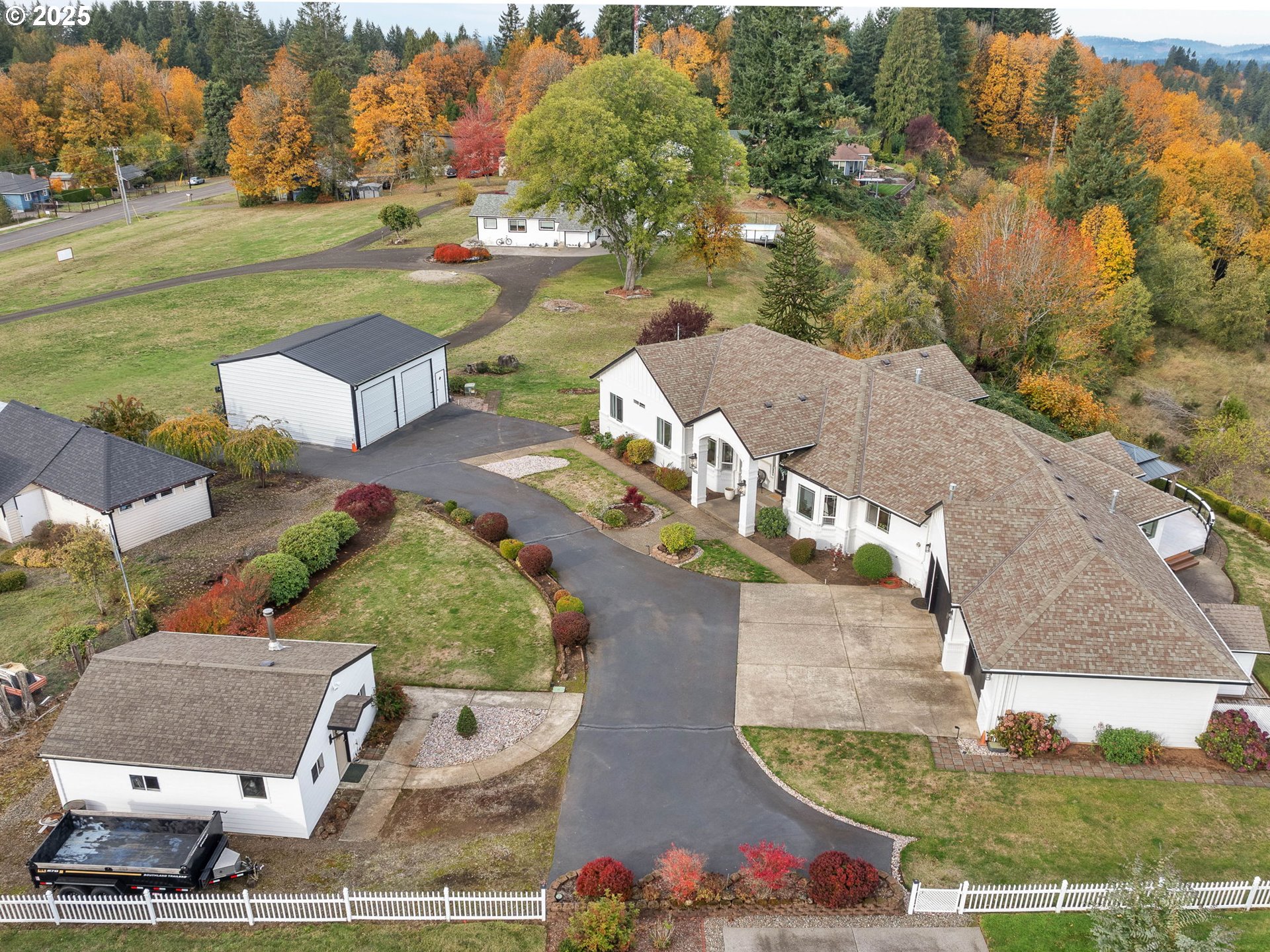 - Beautiful custom built one level home with 2,957 sq. ft. Views of Mt. Hood, Mt. Saint Helens, and valley to the north. This amazing home offers three bedrooms plus a den/4th bedroom, 2.1 bathrooms on 2.96 acres. Updated gourmet kitchen with large island, double ovens, cook top, pantry, stainless steel appliances plus an eating nook. The living room offers a two-sided fireplace, high tray ceilings and a wall of windows with spectacular views. Family room has a two-sided fireplace and French doors leading to the large deck with amazing views, hot tub, and gazebo. Great for entertaining. Formal dining room for your family get togethers. The primary bedroom has vaulted ceiling, French door that leads to the deck and hot tub. The ensuite has a walk-in closet, large walk-in shower, and a freestanding bathtub. Newer luxury vinyl plank flooring throughout the home. There are two outbuildings, one is 20x24 and the other is 30x30 with two 12ft doors and a man door. Both have power and concrete floors. Great for all of your toys. This is a must-see home.