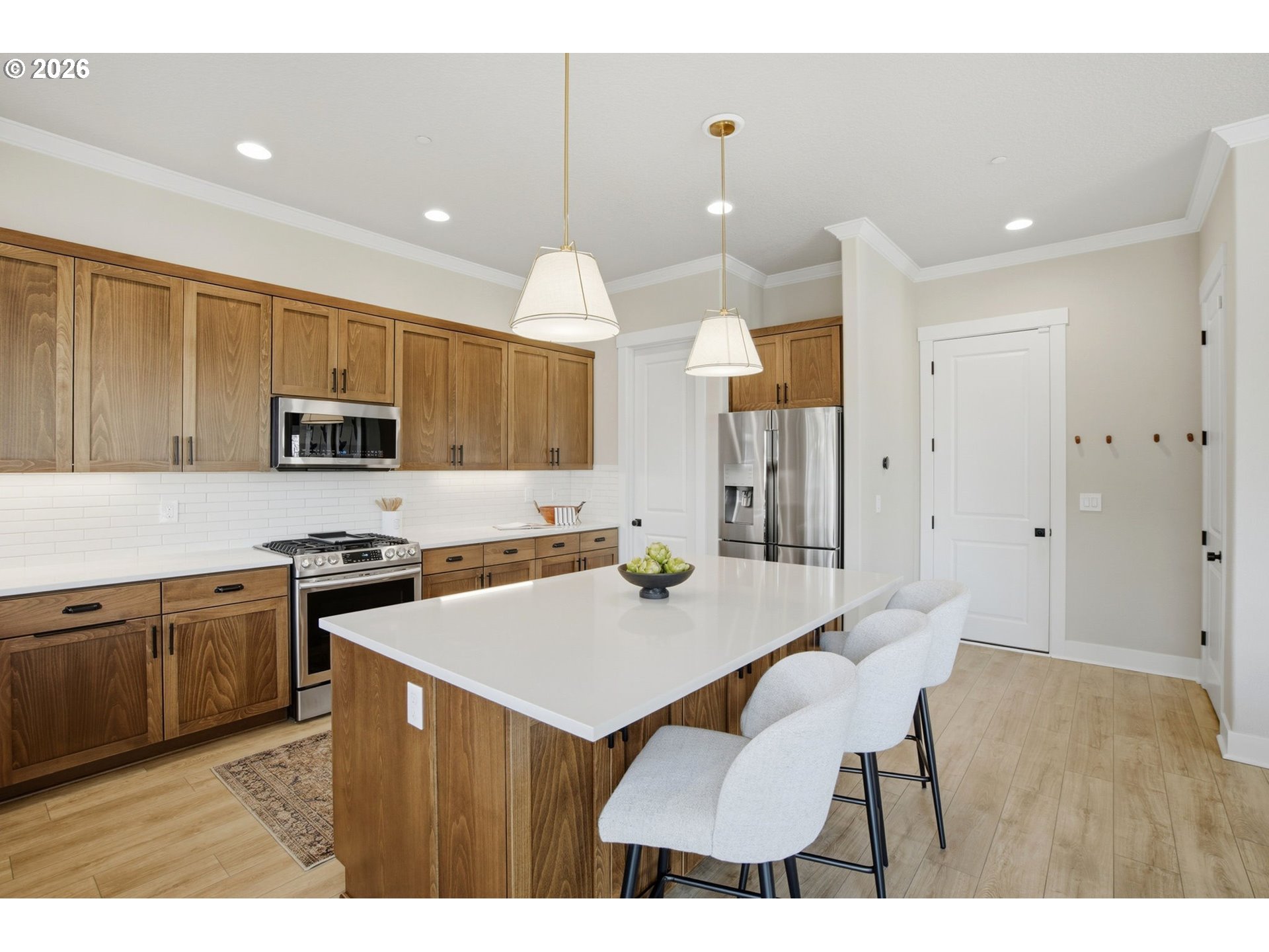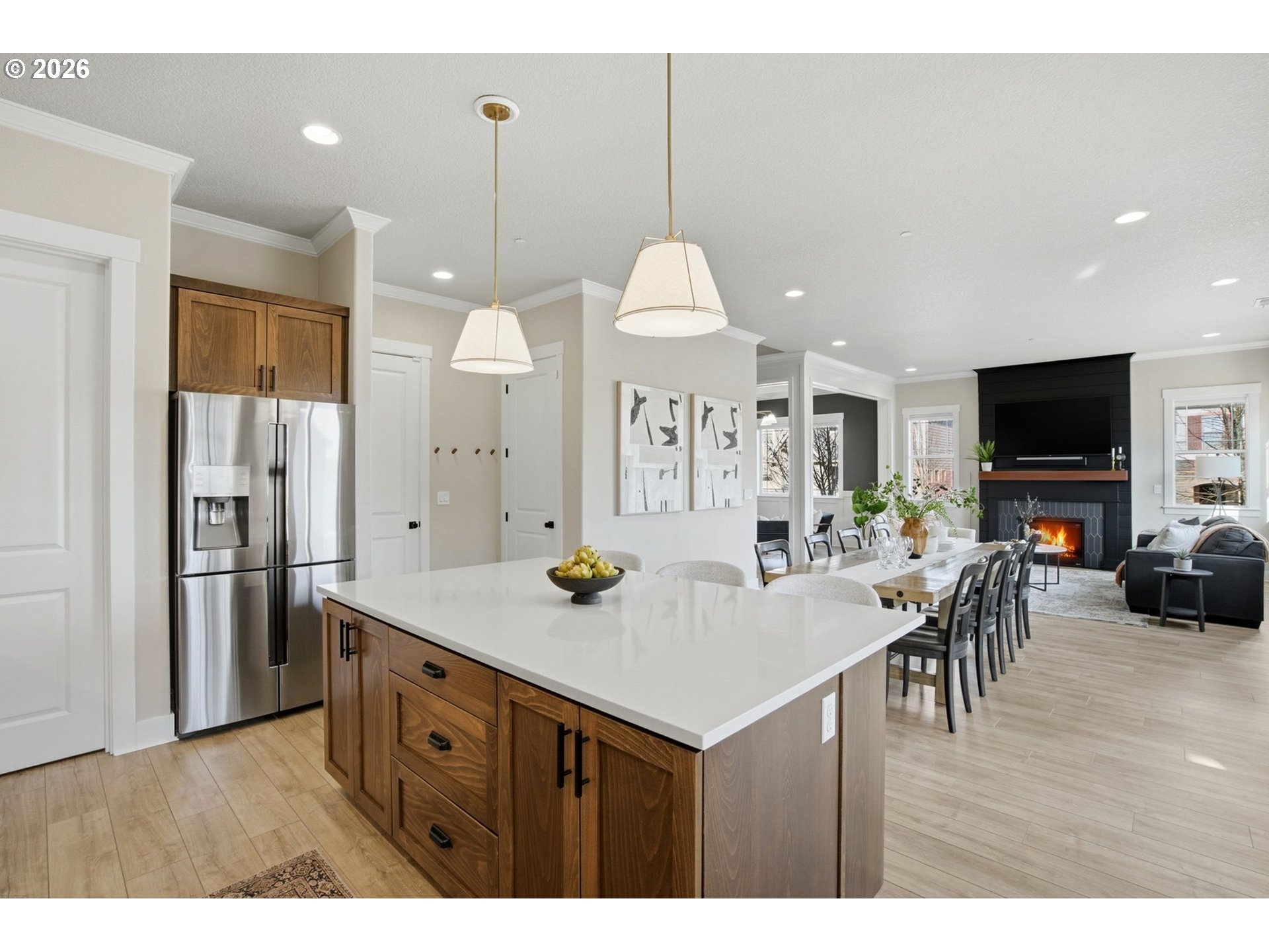 - Located on a premier corner lot in Wilsonville’s highly desirable Villebois community, this exceptional residence has been extensively re-imagined with more than $170,000 in luxury upgrades, offering a refined, design-forward lifestyle for the most discerning buyer.The thoughtfully designed floor plan delivers both elegance and flexibility, featuring four bedrooms, a dedicated office, and a spacious bonus room—ideal for modern living, remote work, and effortless entertaining. The layout flows beautifully between gathering areas and well-defined private spaces, creating a sense of comfort and sophistication throughout.The primary suite is a true retreat, highlighted by a spa-inspired bathroom with soaking tub and dual walk-in closets, each finished with custom closet systems to elevate everyday living.Luxury finishes define the home, including wide-plank LVP flooring, curated designer paint, window shades, and a striking fireplace enhanced by new tile and a statement mantle. A custom wine cellar—professionally built from a former closet—adds a distinctive architectural feature and an elevated entertaining experience. The heart of the home is complemented by a beautifully remodeled laundry room featuring natural stone backsplash, quartz countertops, and an upgraded sink—where everyday functionality meets thoughtful design.Outdoor living is equally refined with expansive decking, turf, professionally designed landscaping and hardscaping, and a private hot tub with cover and custom awning, creating a resort-inspired setting that is both polished and low-maintenance.Perfectly positioned within Villebois, residents enjoy nearby parks, trails, community amenities, and convenient access to shopping, dining, and commuter routes. This is a rare opportunity to own a meticulously curated luxury home where exceptional design, an ideal layout, and a premier location come together seamlessly.