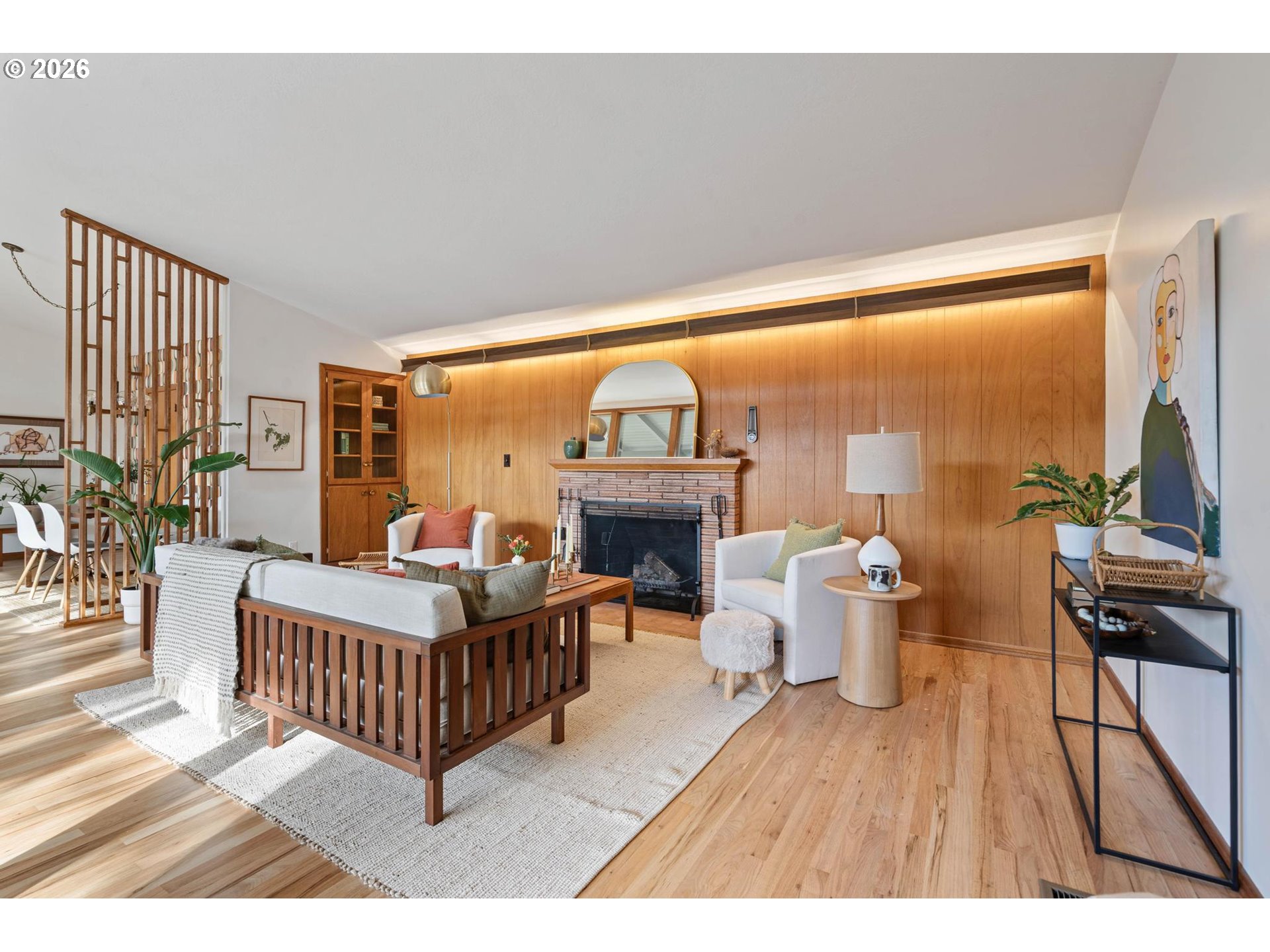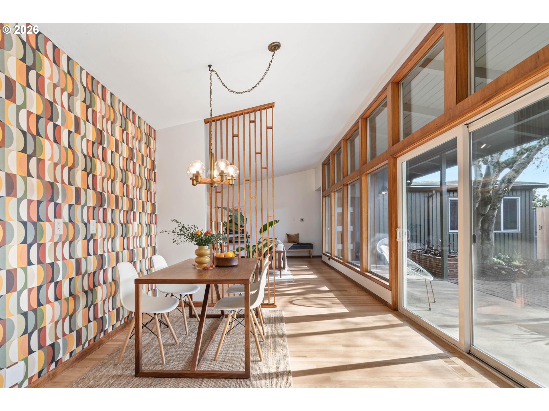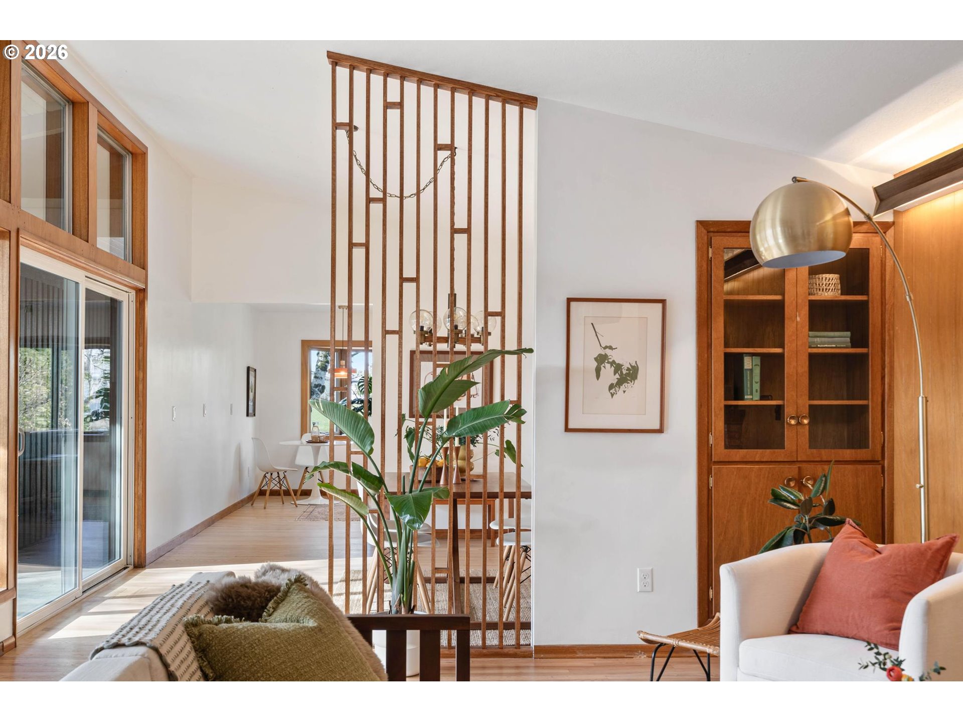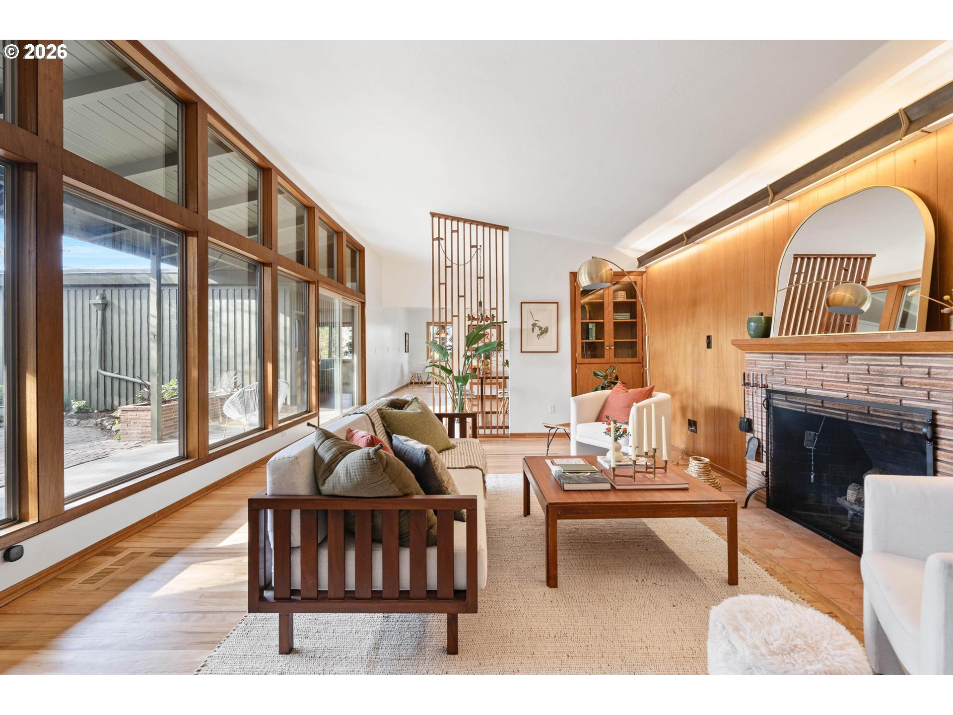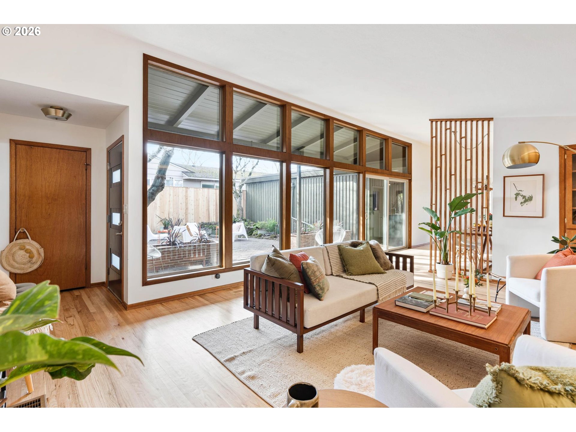 - Stepping into this Mid-Century modern sanctuary, the outside world simply falls away. The heart of the home is a dramatic, wood-paneled living room featuring soaring vaulted ceilings and floor-to-ceiling glass that frames a private, soothing oasis. Whether you are an introvert seeking a quiet retreat by the courtyard fountain or an extrovert who lives for seamless indoor-outdoor entertaining, the social layout and fresh landscaping create a perfect harmony. It is a home that feels both expansive and deeply intimate—a rare world of your own in the heart of Concordia.Thoughtfully remodeled to honor its original character, this residence shines with a mix of new and meticulously refinished original hardwood floors. The chic designer kitchen gives a hint to mid-century with modern day function, while the rear of the home offers three quiet bedrooms and two updated baths. The lower level adds a surprising layer of versatility with a cozy lounge for movie/game nights, a dedicated workshop, and a spacious laundry/bonus room. Complete with a two-car garage connected by a classic covered breezeway, this home is a stunning example of mid-century livability and style. [Home Energy Score = 3. HES Report at https://rpt.greenbuildingregistry.com/hes/OR10242812]