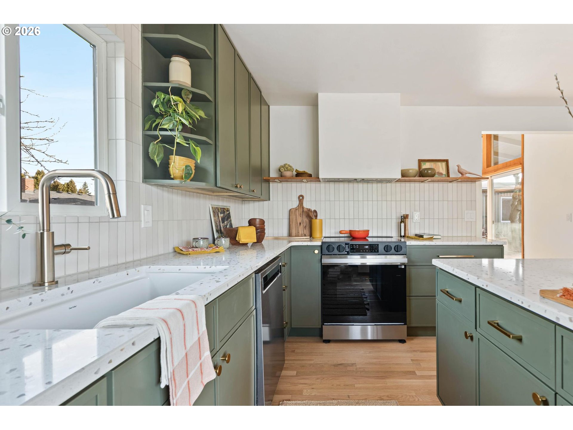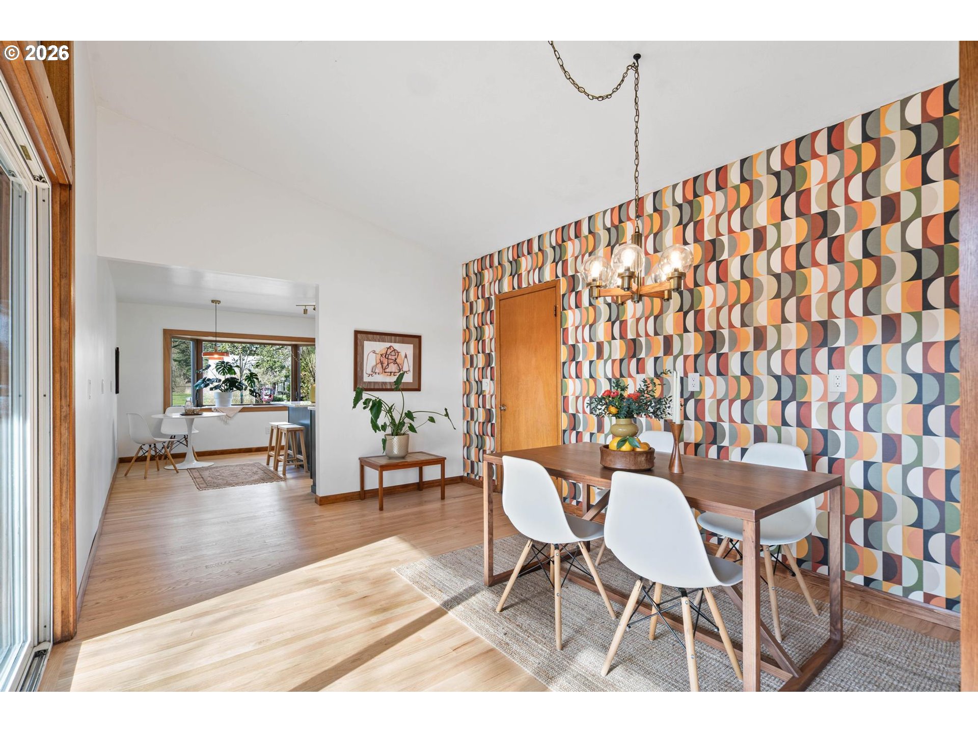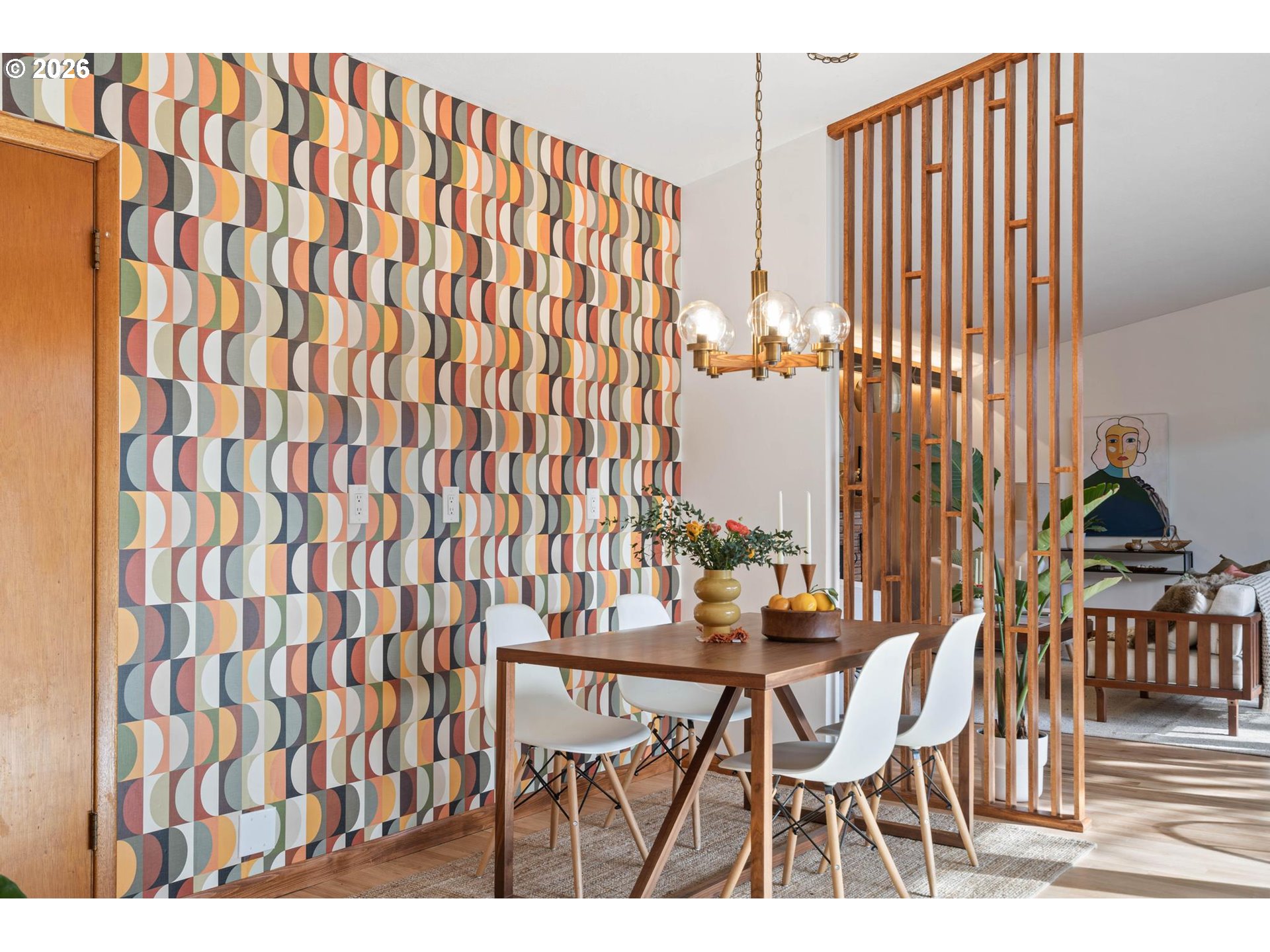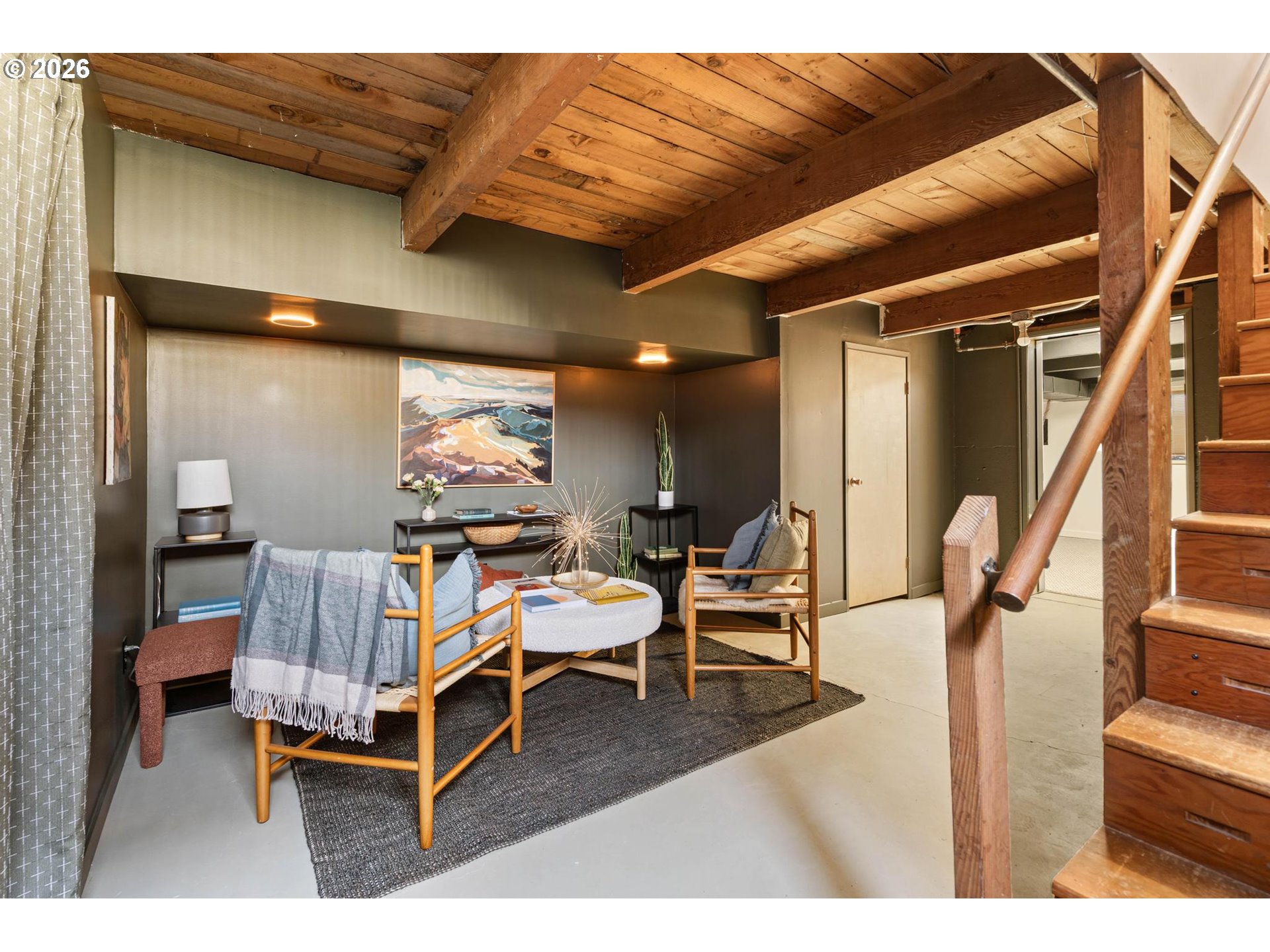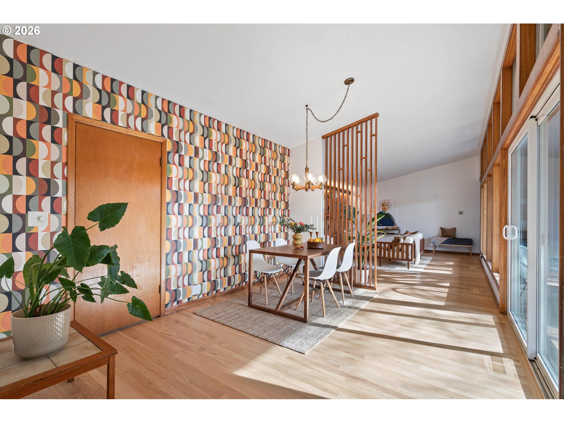 - Stepping into this Mid-Century modern sanctuary, the outside world simply falls away. The heart of the home is a dramatic, wood-paneled living room featuring soaring vaulted ceilings and floor-to-ceiling glass that frames a private, soothing oasis. Whether you are an introvert seeking a quiet retreat by the courtyard fountain or an extrovert who lives for seamless indoor-outdoor entertaining, the social layout and fresh landscaping create a perfect harmony. It is a home that feels both expansive and deeply intimate—a rare world of your own in the heart of Concordia.Thoughtfully remodeled to honor its original character, this residence shines with a mix of new and meticulously refinished original hardwood floors. The chic designer kitchen gives a hint to mid-century with modern day function, while the rear of the home offers three quiet bedrooms and two updated baths. The lower level adds a surprising layer of versatility with a cozy lounge for movie/game nights, a dedicated workshop, and a spacious laundry/bonus room. Complete with a two-car garage connected by a classic covered breezeway, this home is a stunning example of mid-century livability and style. [Home Energy Score = 3. HES Report at https://rpt.greenbuildingregistry.com/hes/OR10242812]