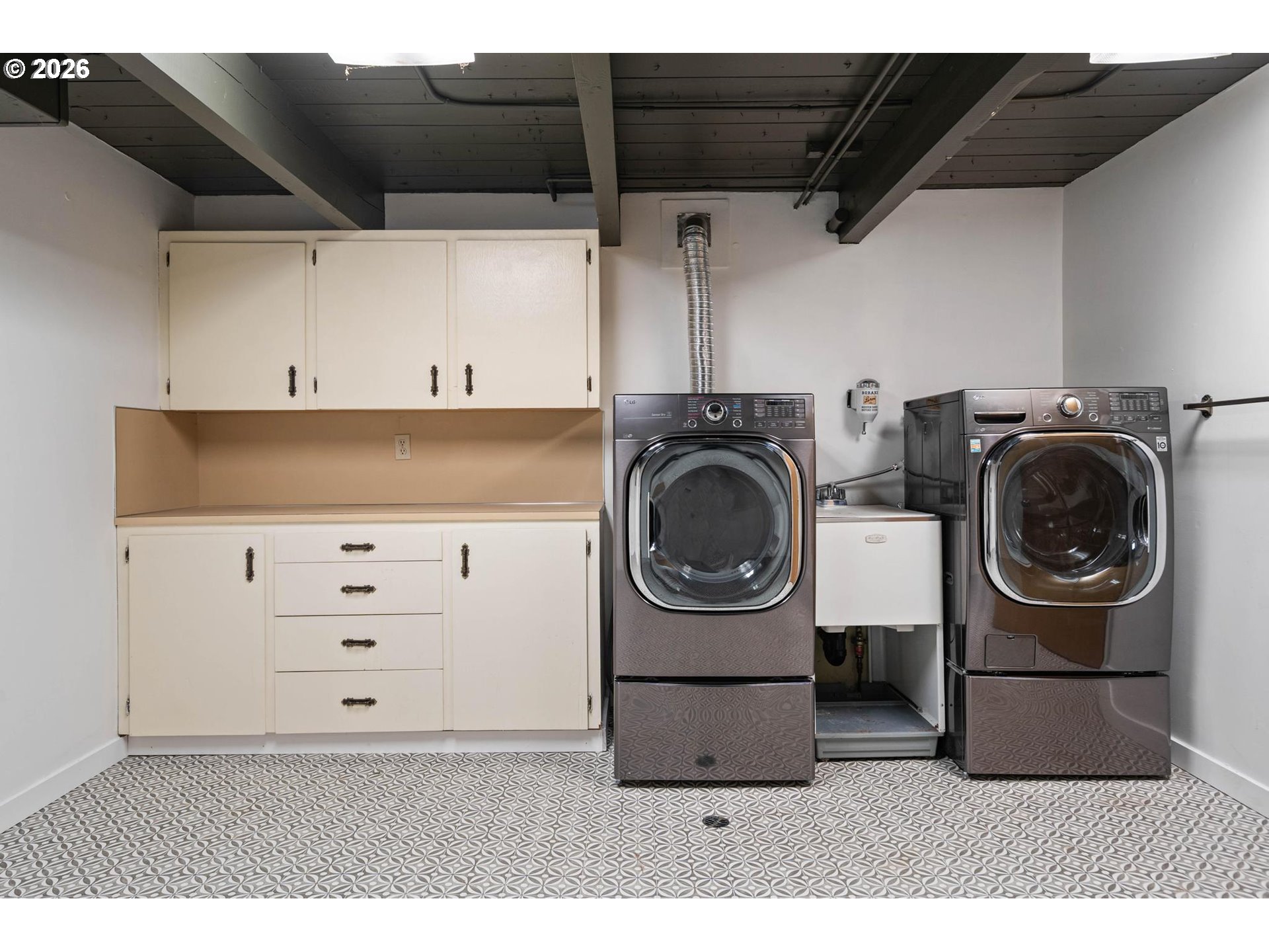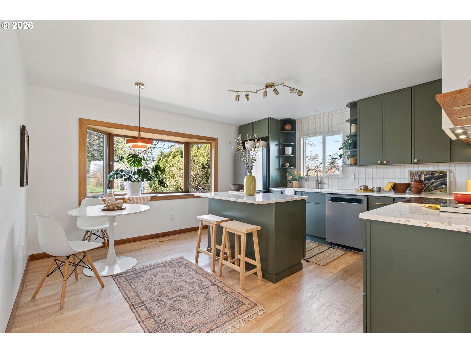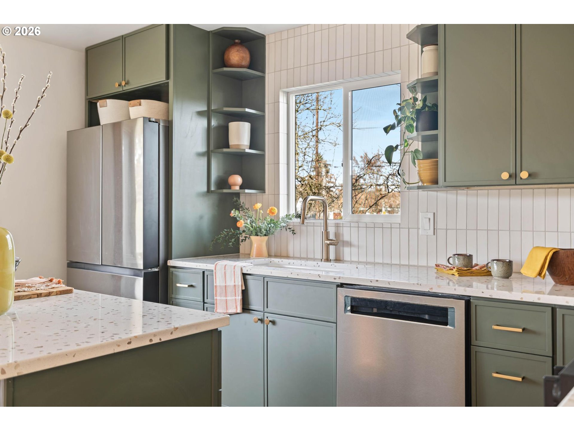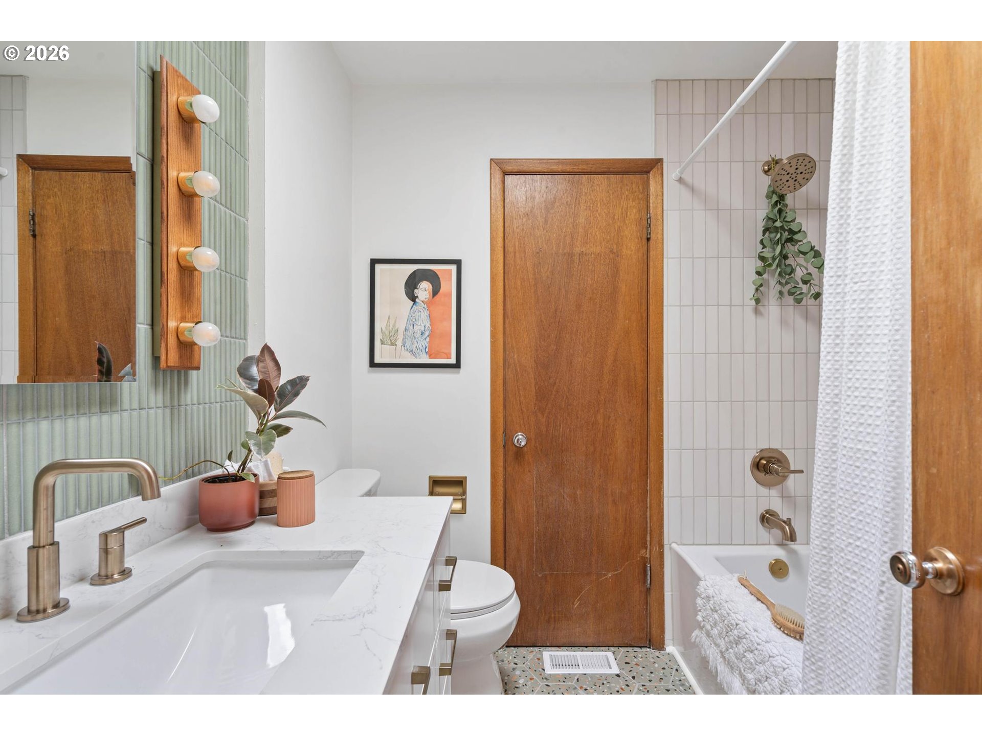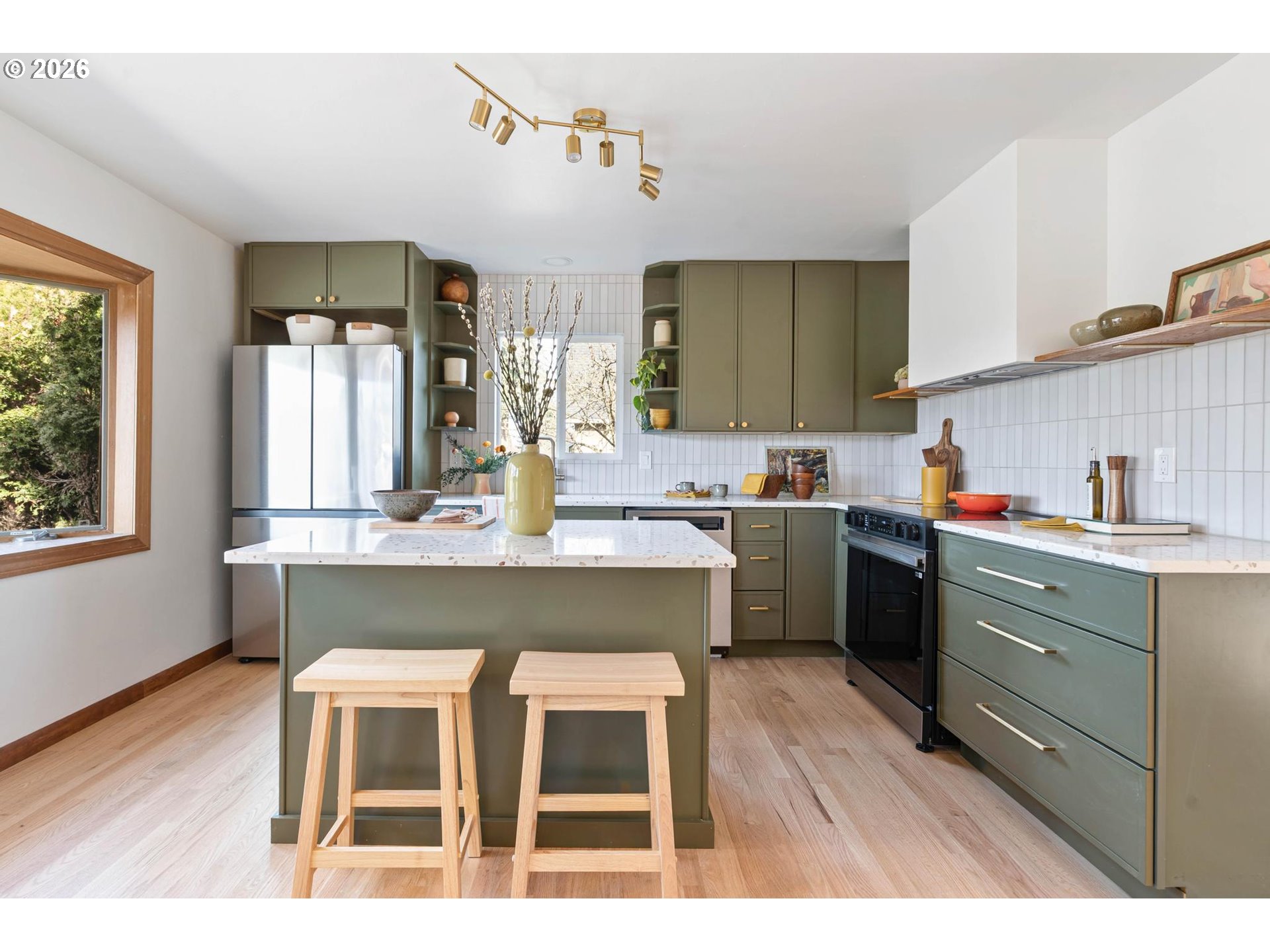 - Stepping into this Mid-Century modern sanctuary, the outside world simply falls away. The heart of the home is a dramatic, wood-paneled living room featuring soaring vaulted ceilings and floor-to-ceiling glass that frames a private, soothing oasis. Whether you are an introvert seeking a quiet retreat by the courtyard fountain or an extrovert who lives for seamless indoor-outdoor entertaining, the social layout and fresh landscaping create a perfect harmony. It is a home that feels both expansive and deeply intimate—a rare world of your own in the heart of Concordia.Thoughtfully remodeled to honor its original character, this residence shines with a mix of new and meticulously refinished original hardwood floors. The chic designer kitchen gives a hint to mid-century with modern day function, while the rear of the home offers three quiet bedrooms and two updated baths. The lower level adds a surprising layer of versatility with a cozy lounge for movie/game nights, a dedicated workshop, and a spacious laundry/bonus room. Complete with a two-car garage connected by a classic covered breezeway, this home is a stunning example of mid-century livability and style. [Home Energy Score = 3. HES Report at https://rpt.greenbuildingregistry.com/hes/OR10242812]