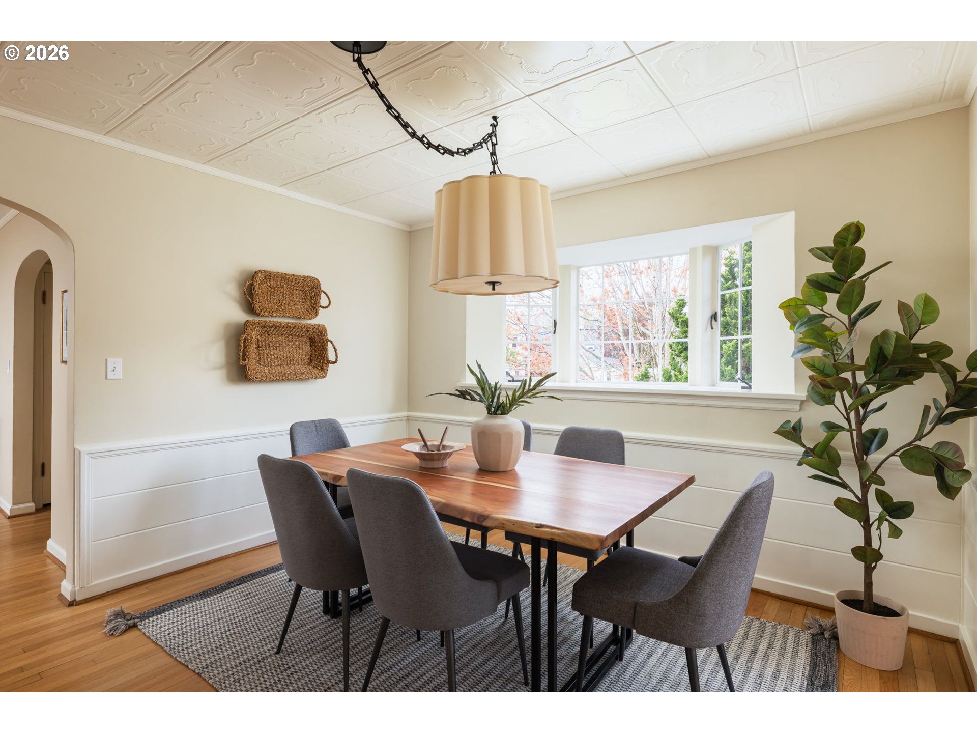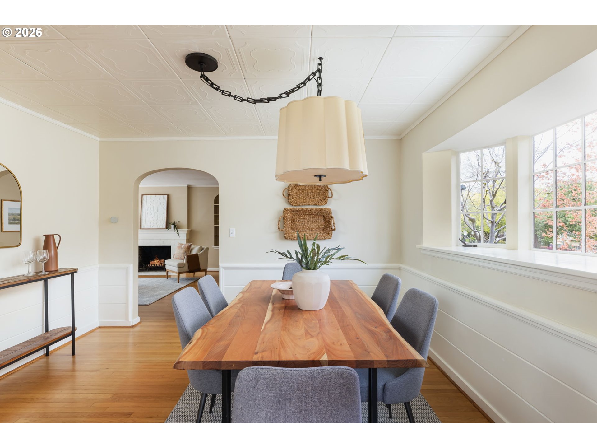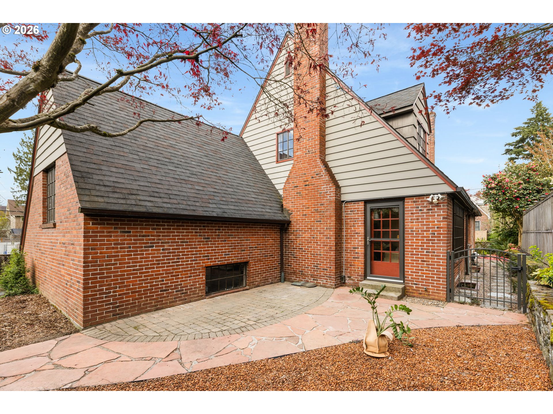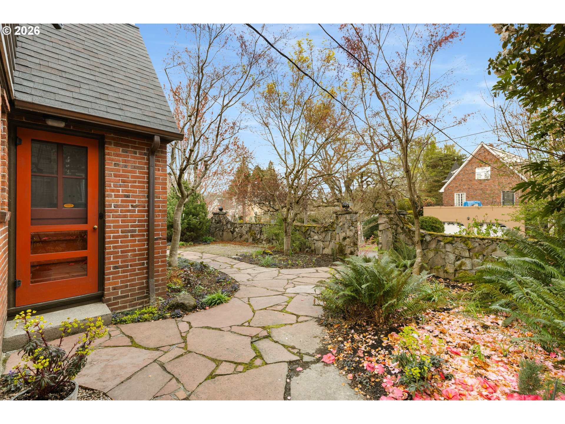 - Perched up off the street on one of Irvington’s beloved tree-lined streets, this 1940 English Tudor Revival blends timeless architecture with a deep connection to nature. Built by renowned botanist and former Director of U.S. Soil Conservation, John Henry Christ, the home reflects a thoughtful reverence for the natural world that still defines the property today. A tiered rock garden creates a magical approach, with more than fifty varieties of plants and trees offering year-round beauty. Inside, natural light fills the home, illuminating original hardwood floors and a large, welcoming living room anchored by a fireplace—perfect for gathering. The flexible floor plan includes a main floor bedroom or office, 3 spacious bedrooms upstairs with generous storage and California Closets, and a lower level family room with 2nd fireplace, ideal for relaxing, gathering, or play. The restored kitchen pairs classic design with modern function, featuring honed granite counters, a farmhouse sink, and quality appliances. Updated bathrooms showcase beautiful tilework and custom finishes, while central air, a high-efficiency furnace, and updated plumbing provide everyday comfort and ease. Outdoor living is equally inviting, with two private patios surrounded by lush landscaping—perfect for morning coffee or evening entertaining. All just moments from Irving Park, Grant High School, neighborhood coffee, restaurants, shopping, and easy access to downtown. A home rich in history, character, and natural beauty—truly a special offering in the heart of Irvington.