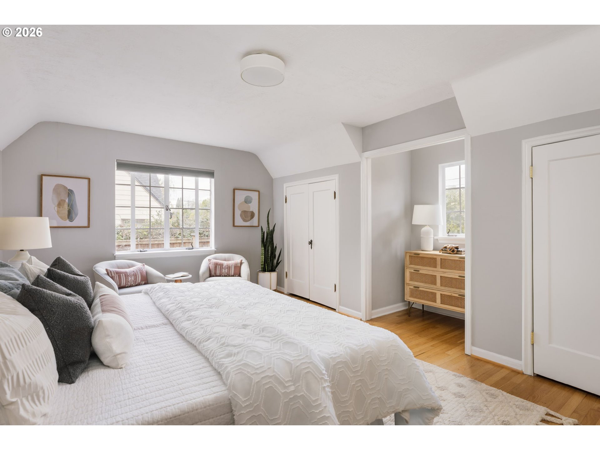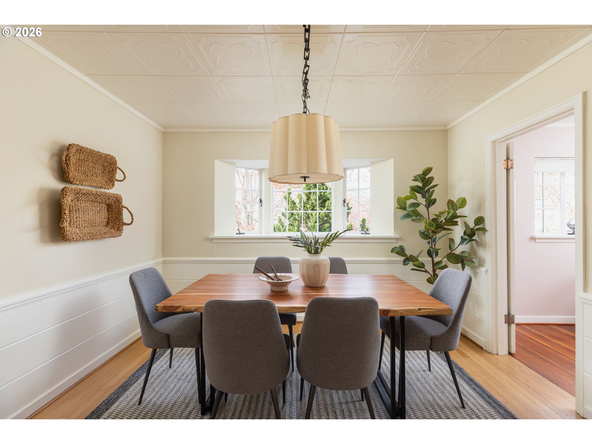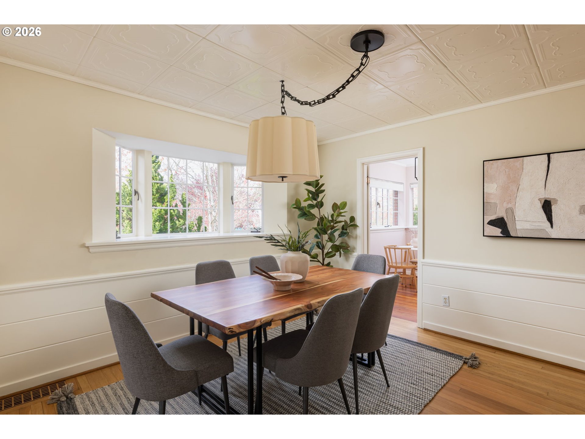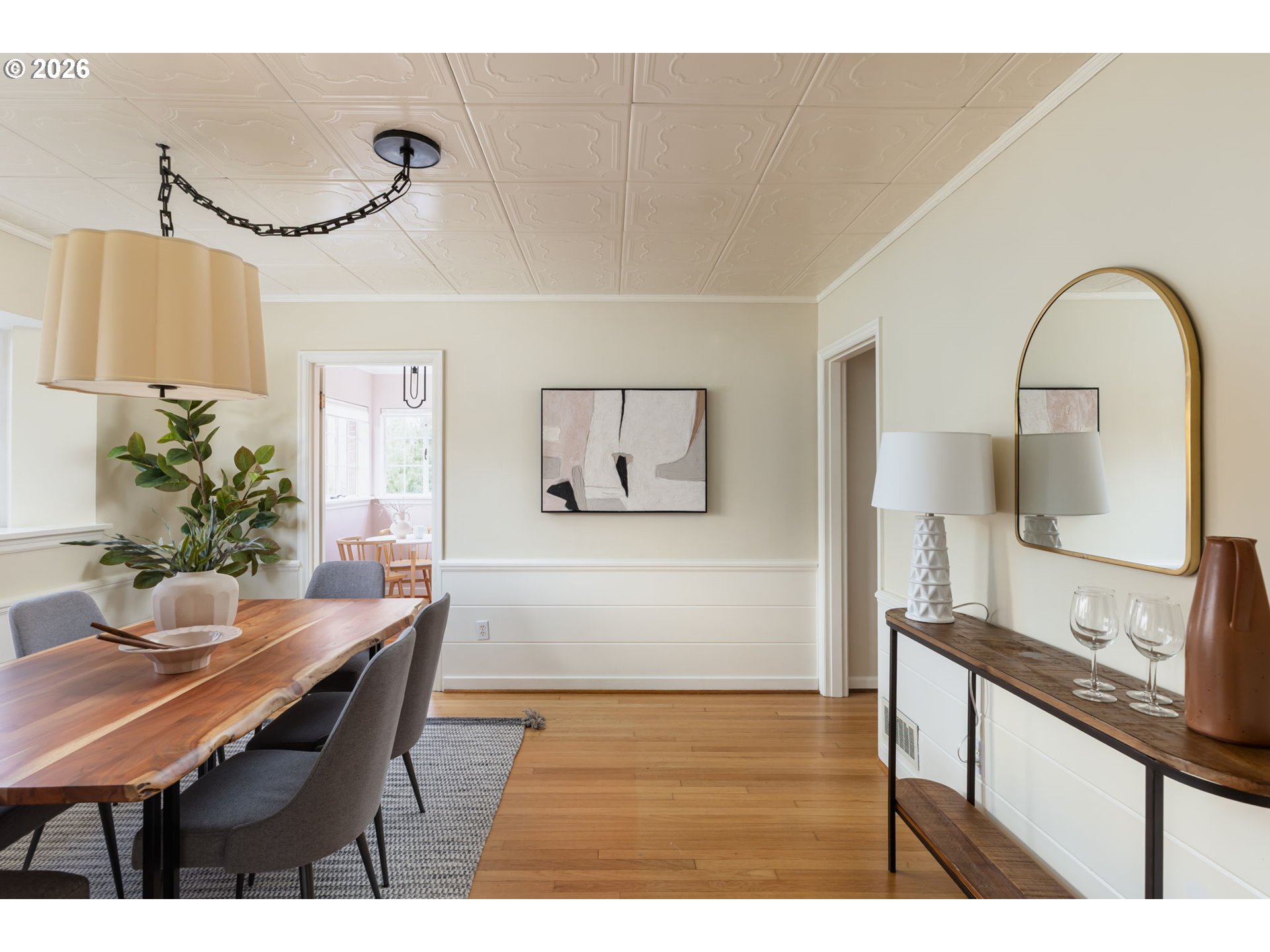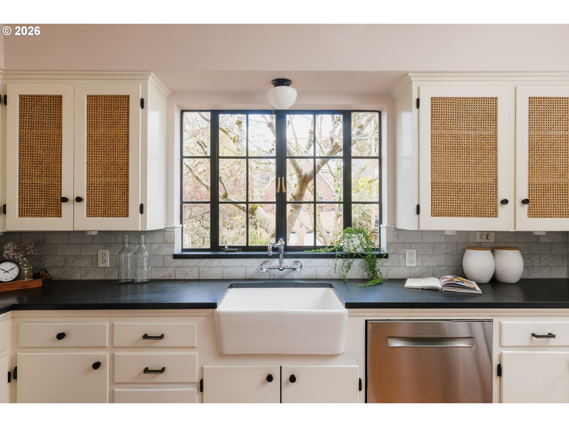 - Perched up off the street on one of Irvington’s beloved tree-lined streets, this 1940 English Tudor Revival blends timeless architecture with a deep connection to nature. Built by renowned botanist and former Director of U.S. Soil Conservation, John Henry Christ, the home reflects a thoughtful reverence for the natural world that still defines the property today. A tiered rock garden creates a magical approach, with more than fifty varieties of plants and trees offering year-round beauty. Inside, natural light fills the home, illuminating original hardwood floors and a large, welcoming living room anchored by a fireplace—perfect for gathering. The flexible floor plan includes a main floor bedroom or office, 3 spacious bedrooms upstairs with generous storage and California Closets, and a lower level family room with 2nd fireplace, ideal for relaxing, gathering, or play. The restored kitchen pairs classic design with modern function, featuring honed granite counters, a farmhouse sink, and quality appliances. Updated bathrooms showcase beautiful tilework and custom finishes, while central air, a high-efficiency furnace, and updated plumbing provide everyday comfort and ease. Outdoor living is equally inviting, with two private patios surrounded by lush landscaping—perfect for morning coffee or evening entertaining. All just moments from Irving Park, Grant High School, neighborhood coffee, restaurants, shopping, and easy access to downtown. A home rich in history, character, and natural beauty—truly a special offering in the heart of Irvington.