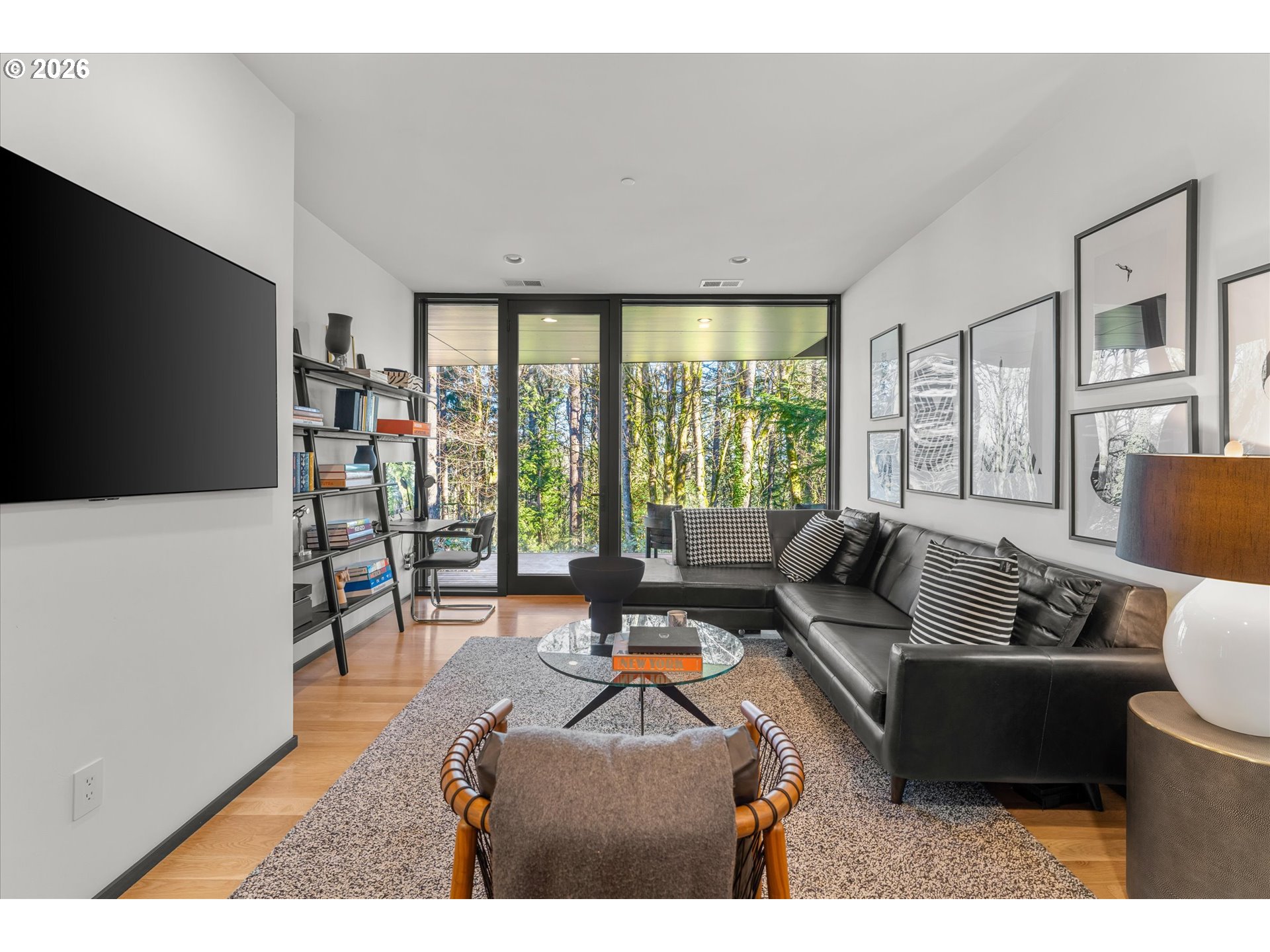 - The Royal House by award-winning studio William / Kaven Architecture. Set within the trees at the edge of Forest Park, this intelligently designed modern residence spans a rare 1.25 acres across two protected parcels—securing enduring privacy and uninterrupted forest views for generations. Designed for the Forestand immersed in the beauty of Forest Park, the designer home occupies a singular threshold between city and wilderness—where architecture is shaped as much by light, topography, and canopy as by walls and windows. Spanning two floors, white oak floors and custom, handcrafted oak cabinetry are animated by southern light pouring through floor-to-ceiling glass and wall-to-wall sliding doors, elements that are central to the home’s design language.Widely published and celebrated by The Wall Street Journal, Wallpaper Magazine*, HYPEBEAST, and other leading design platforms, the residence has been recognized for its clarity of vision and seamless integration with the forested landscape.Spanning two legal parcels and directly abutting protected forestland, the residence occupies a condition that would be exceptionally difficult to replicate within today’s regulatory and urban context. The undeveloped parcel may offer potential for future uses such as a sports court, wellness studio, or guest annex.Equally compelling is its access: a place of rare privacy and solitude, yet only minutes from downtown Portland. Few homes achieve this balance—architectural distinction, deep immersion in nature, and immediate access to the cultural life of the city—making The Royal House a truly once-in-a-lifetime offering.