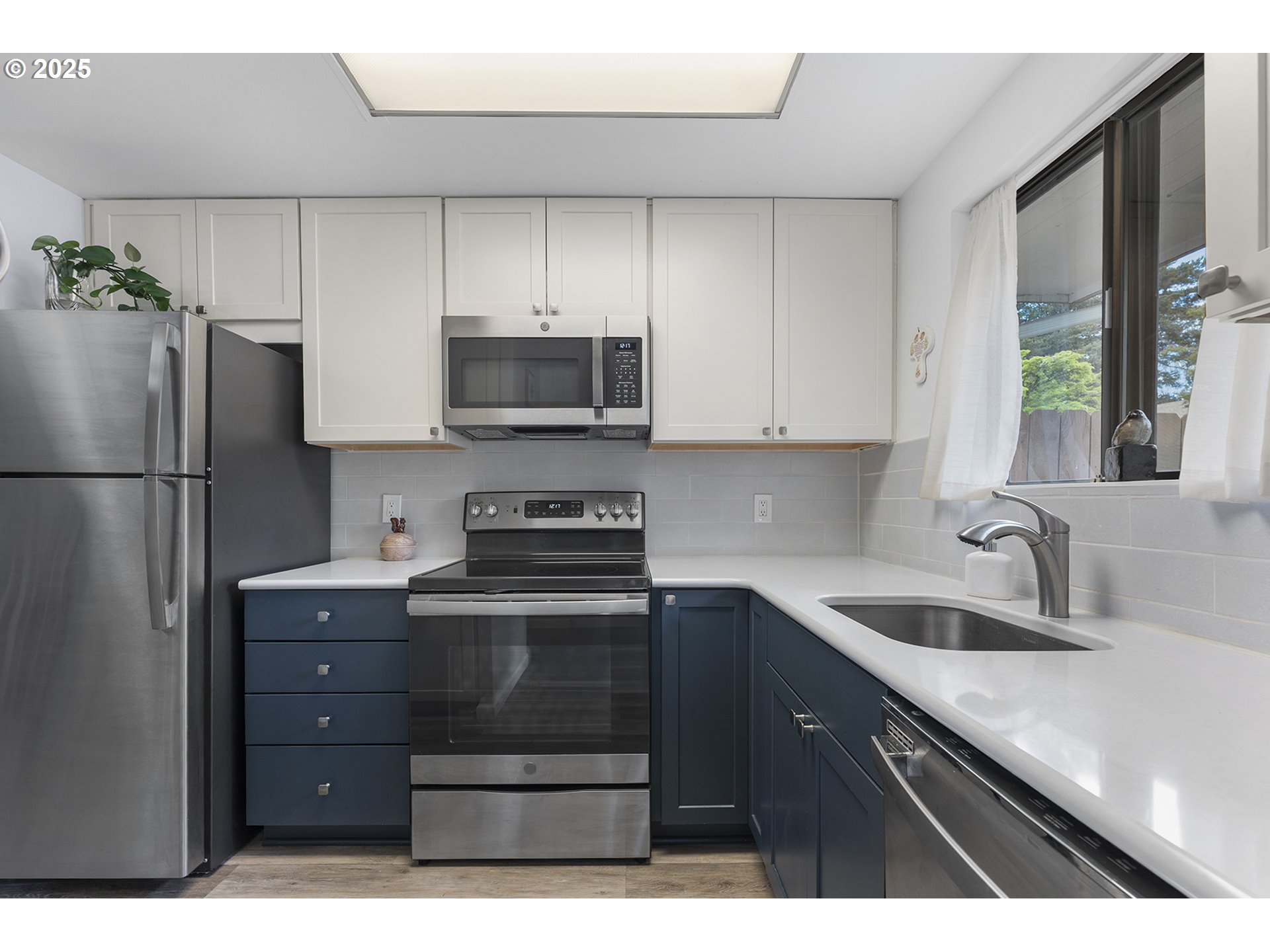 - Tucked into the heart of King City’s beloved 55+ Civic Association, this charming one-level condo at 11530 SW Majestic Ln #2 offers the perfect blend of comfort, convenience, and community—plus fun! With no stairs, no one above or below, and nearly 1,000 sq ft of beautifully updated space, this 2-bed, 1-bath gem is the ideal retreat for anyone ready to embrace the next exciting chapter of life. Discover gorgeous LVP flooring and a fully remodeled kitchen featuring soft-close cabinetry, Quartz countertops, a stylish tile backsplash, stainless steel appliances, and a generous pantry. A ductless mini-split in the living room and primary bedroom keeps things cool in summer and cozy in winter. The open floor plan flows easily to an oversized private patio and lush garden space—perfect for morning coffee, evening wine, or just soaking in the peaceful green space and gentle sounds of a nearby water feature. The lifestyle here....Unmatched. You’re just a Par 3 distance from the clubhouse, where you'll find the outdoor pool, library, pro shop, and more. There's always something happening, whether it’s golf, cards, crafts, fitness classes, or social gatherings. And when you're not busy enjoying it all, you can relax knowing the HOA has it covered—sewer, water, cable, internet, exterior maintenance, landscaping, and full access to all amenities are all included. Just minutes to shopping, restaurants, and highway access, this condo combines serene living with unbeatable accessibility. Whether you’re downsizing, simplifying, or just ready to play more than mow, this is the perfect place to call home. Welcome to easy, active, joyful living in King City—your new adventure begins here!