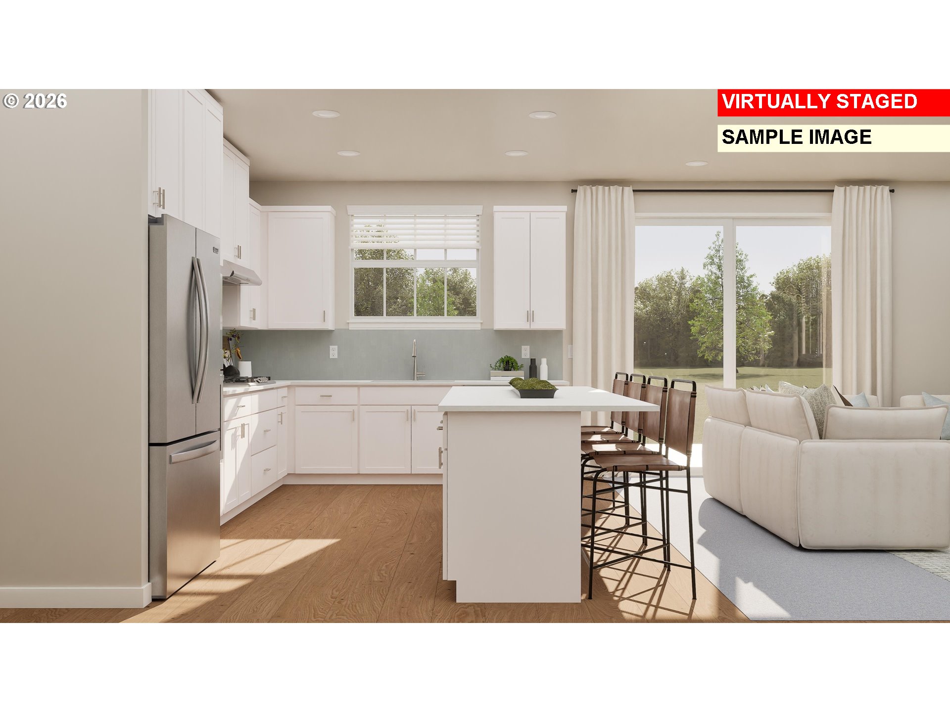 - The single-story Alpine plan offers a spacious, low-maintenance layout designed for modern living. Upon entry, two bedrooms and a full bathroom lead to an inviting open-concept design that combines the kitchen, living, and dining areas. At the back of the home, the luxurious primary suite provides a private retreat with a full bathroom featuring a double vanity and a walk-in closet. Interior highlights include quartz countertops, shaker-style cabinets, a vertical tile backsplash in the kitchen, LVP (luxury vinyl plank) flooring in the kitchen and entryway, LVT (luxury vinyl tile) flooring in the bathrooms, and wooden shelving in closets and the pantry. Beyond the home, it's a short distance to the pavilion, playground & trails! You’ll love being just minutes from downtown Ridgefield, where sweeping views of the Ridgefield National Wildlife Refuge create a stunning natural backdrop. Downtown’s charming, tree-lined streets invite you to explore unique boutiques, cozy restaurants, local wineries, nearby golf courses, and the area’s outdoor recreation complex—offering something for everyone to enjoy. Experience modern comfort, smart design, and flexible living in a community that truly has it all. Photos, interior & exterior, are an artists conception, features & finishes will vary. Homesite #122.