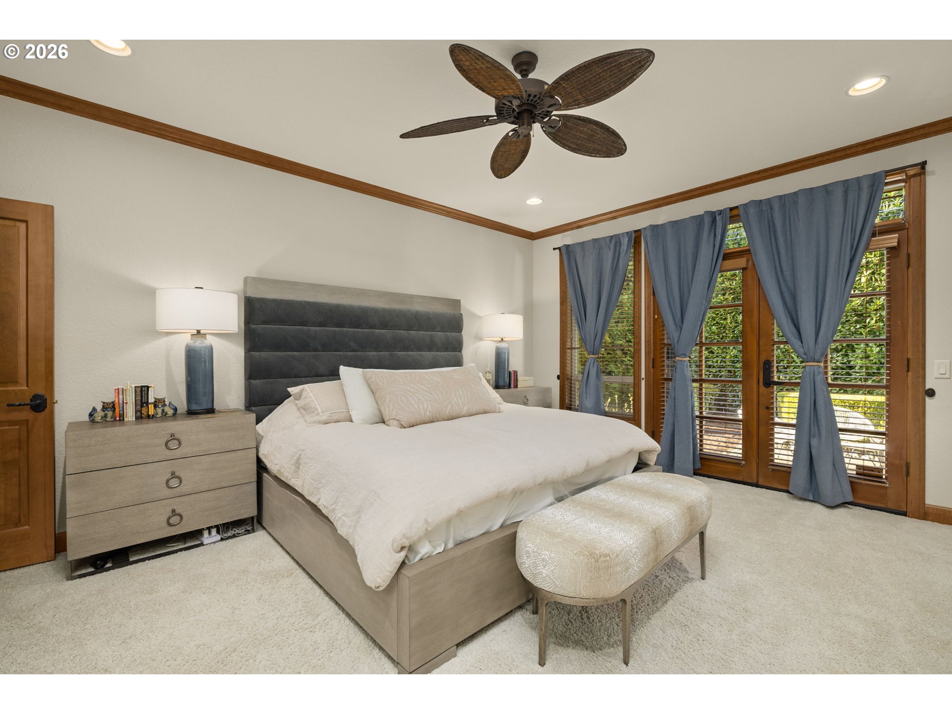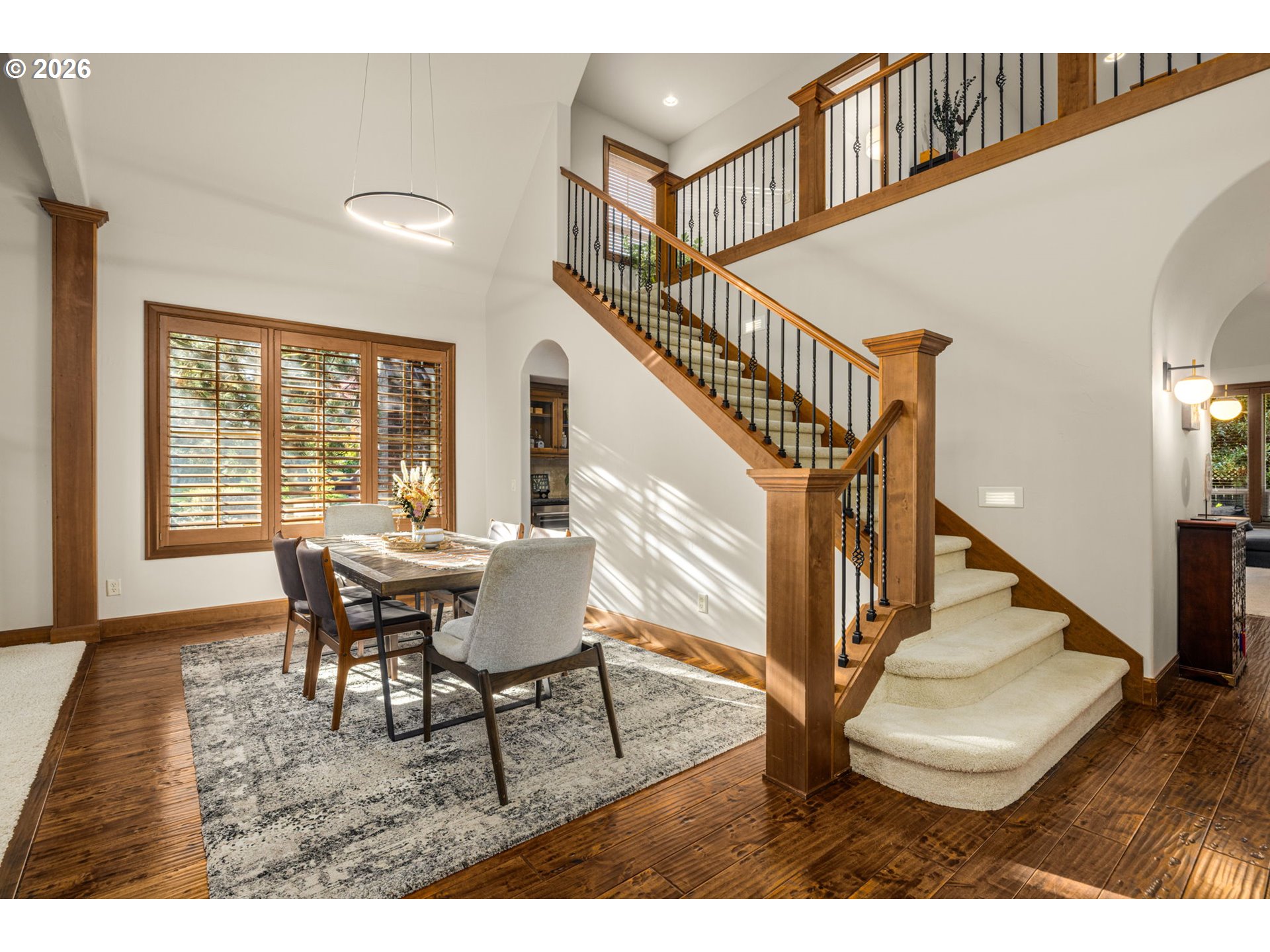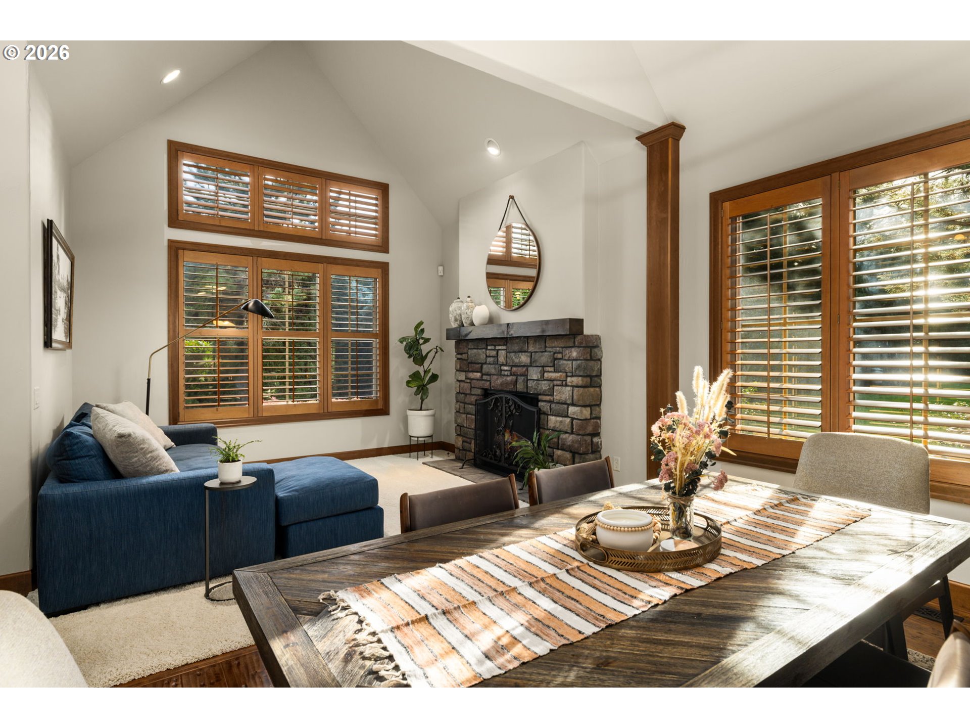 - Custom Tudor home on a spacious parcel at the edge of Wilsonville offering the perfect balance of secluded and convenience. A gated entry, classic brick architecture, and mature landscaping create a private estate feel just minutes from town and the amenities of nearby Villebois including parks, trails, and community gathering spaces. Inside, vaulted ceilings and large windows bring natural light into the main living areas. The formal living room features a stone fireplace and sits beside a dedicated dining room. The kitchen includes raw-edge granite counters, a large island, tile backsplash, and a sink overlooking the backyard. Cooking is centered around a 36-inch six-burner gas cooktop with JennAir double ovens, warming drawer, and built-in Wolf microwave, along with a new refrigerator, wine refrigerator, and pantry. The kitchen connects to the casual dining area and family room with built-in cabinetry and gas fireplace. Main-level primary suite with French door entry, patio access just steps from the hot tub, and a double-sided fireplace shared with the renovated bathroom featuring a freestanding tub, tiled shower, and custom walk-in closet. Upstairs includes three additional bedrooms, a hall bath with skylight, and a bonus room set up as a home theater with projector, screen, surround sound, popcorn machine, and theater seating with seat shakers. Two insulated attic areas provide additional storage. Outdoor living truly sets this property apart. A covered patio with vaulted tongue-and-groove ceilings and stamped concrete creates a striking gathering space and connects to a fully equipped outdoor kitchen with granite counters, EVO flattop grill, Hestan gas range, double burners, ice chest storage, and a Fontana pizza oven imported from Italy. West-facing electric sun shades and an outdoor sound system enhance the space. The backyard is anchored by an expansive water feature with cascading waterfalls and a koi pond that creates a fantastic ambiance, surrounded