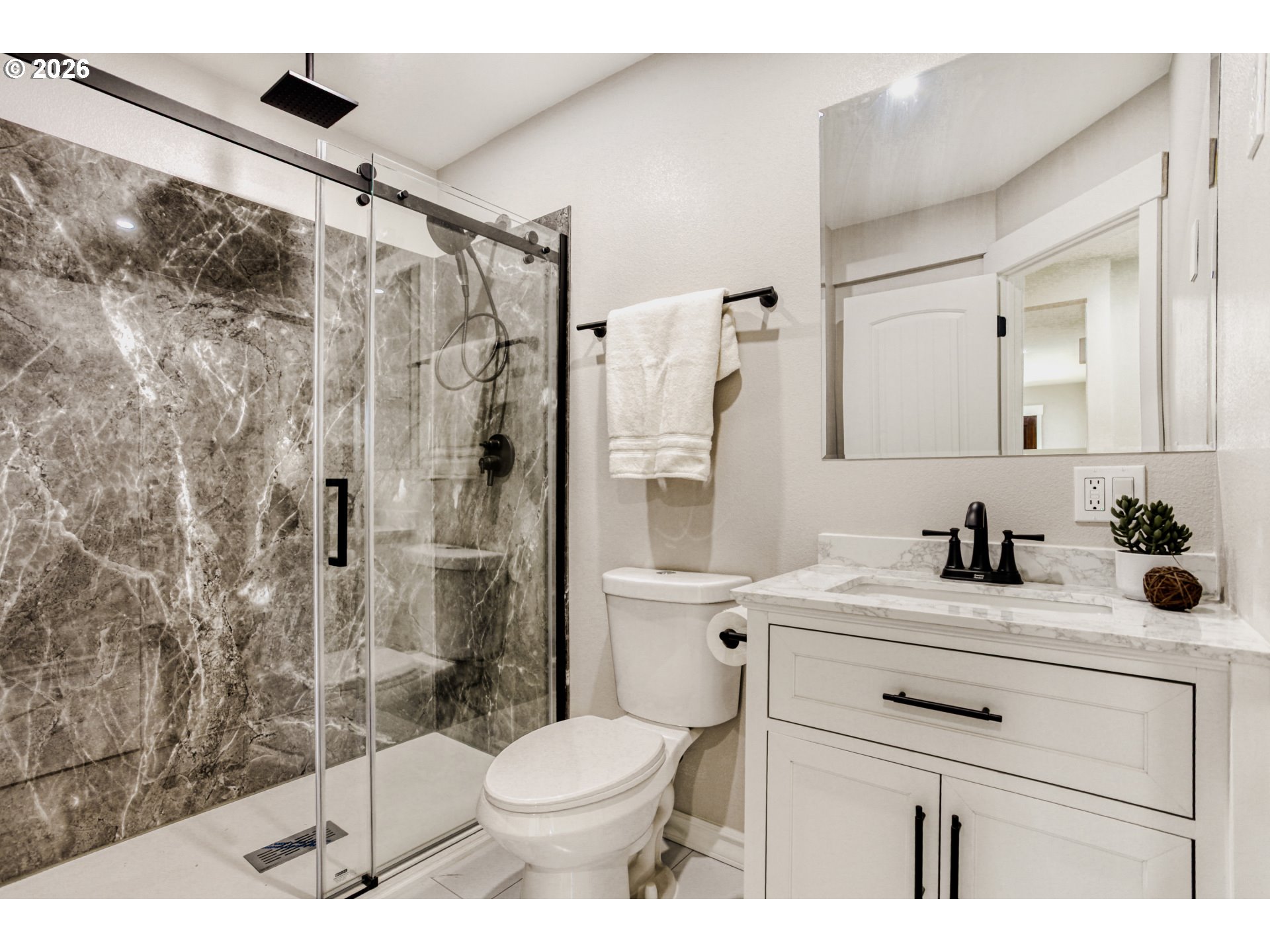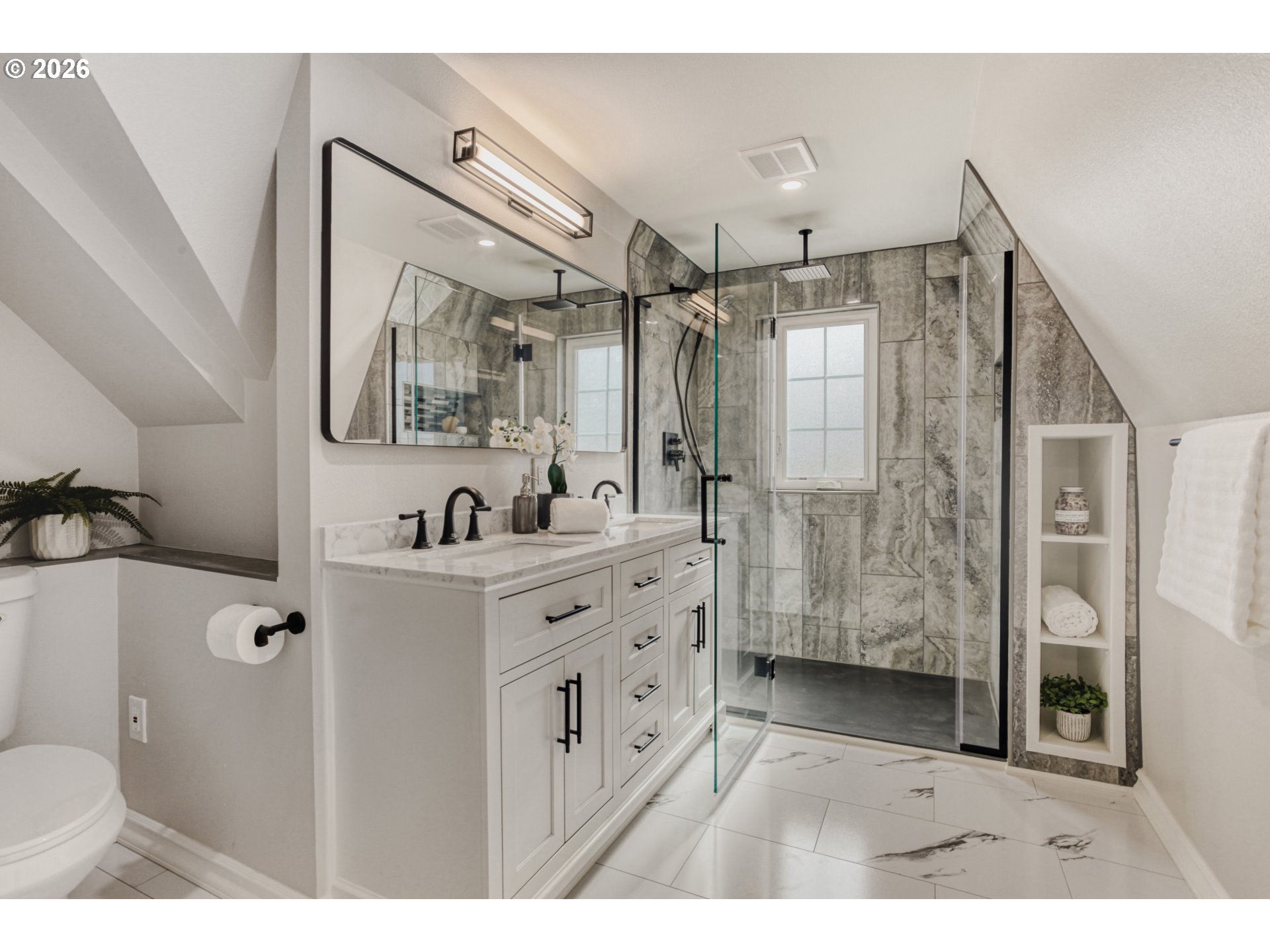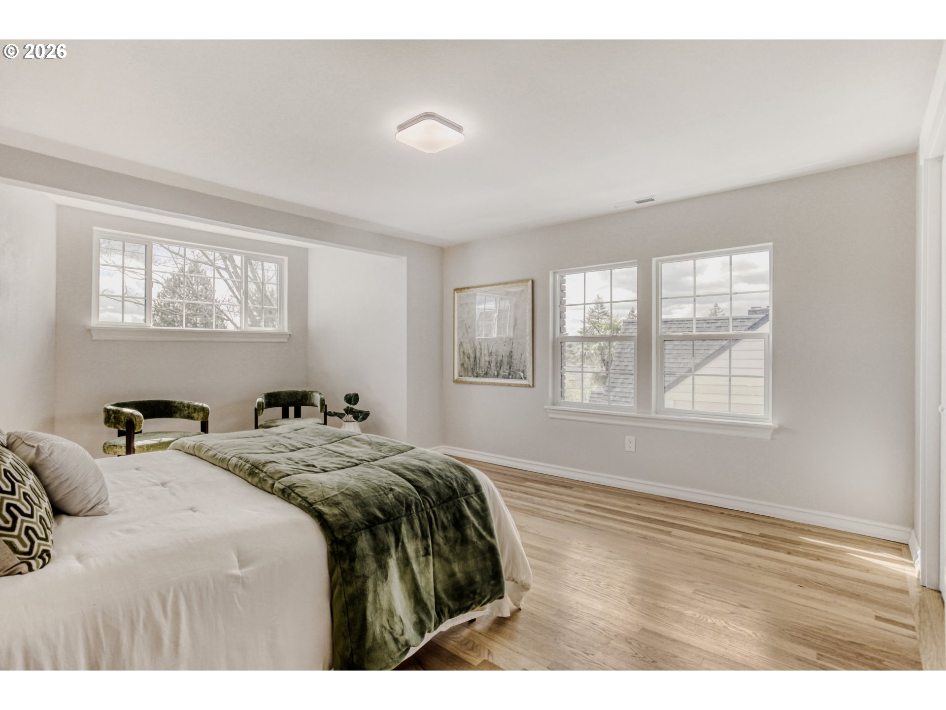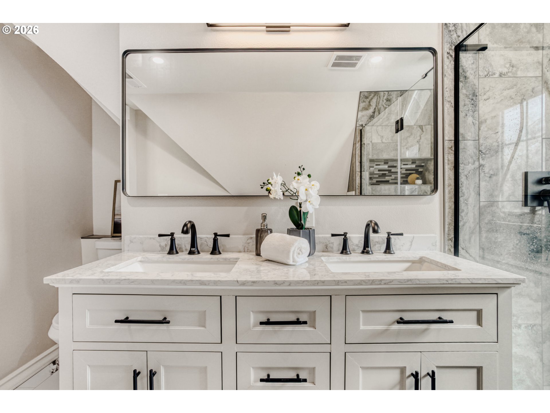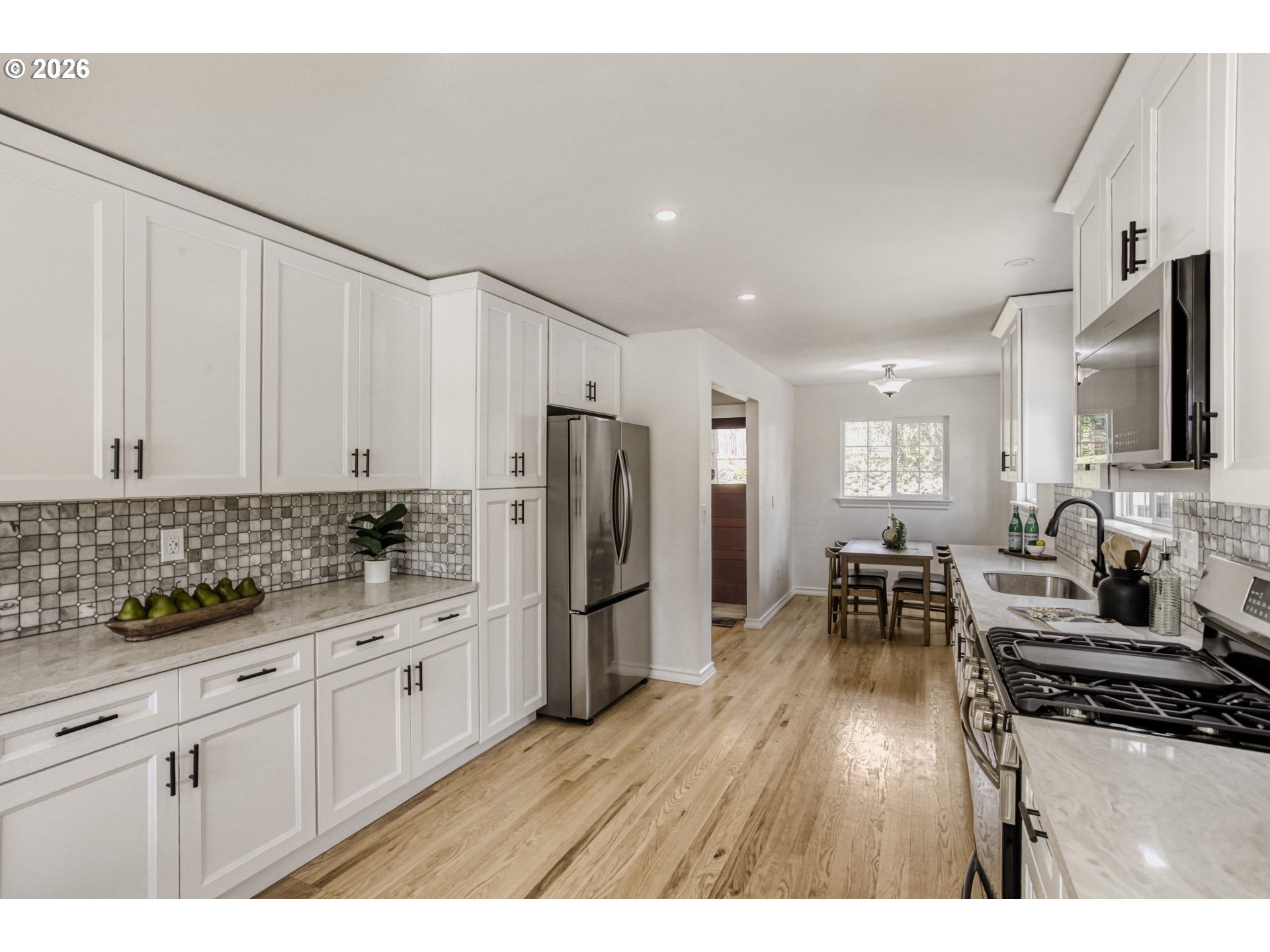 - Completely reimagined from the studs up, this home blends the character of a classic build with the comfort of modern construction. Thoughtfully expanded and fully renovated, it now offers 4 bedrooms and 4 full bathrooms, including a beautifully finished, permitted basement with its own bedroom, egress window, and full bath. Set on a bright corner lot, the home is filled with natural light and even offers glimpses of the city skyline from the main and second floors. Original details such as refinished hardwood floors, the mahogany entry door with leaded glass, and the forged steel handrails (custom-designed for the home) have been carefully preserved, creating warmth and character throughout. Behind the walls, everything is new: plumbing, electrical, HVAC, ductwork, insulation, and more, delivering true peace of mind. The fully remodeled kitchen features quartz countertops, soft-close cabinetry, marble mosaic backsplash, and all-new appliances. Each of the four full bathrooms has been thoughtfully designed, including a spacious primary suite with dual sinks and a rain shower. Outdoor living is just as inviting, with a newly landscaped oversized backyard, a large paver patio with sitting wall, and a deep driveway leading to a refreshed garage. A rare opportunity to own a turnkey home where timeless charm meets modern living without compromise. Located within minutes of highly rated schools, neighborhood parks, cafes, and shops. [Home Energy Score = 4. HES Report at https://rpt.greenbuildingregistry.com/hes/OR10202661]