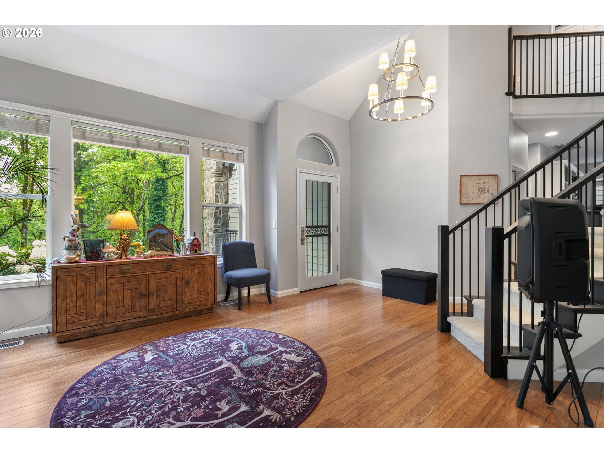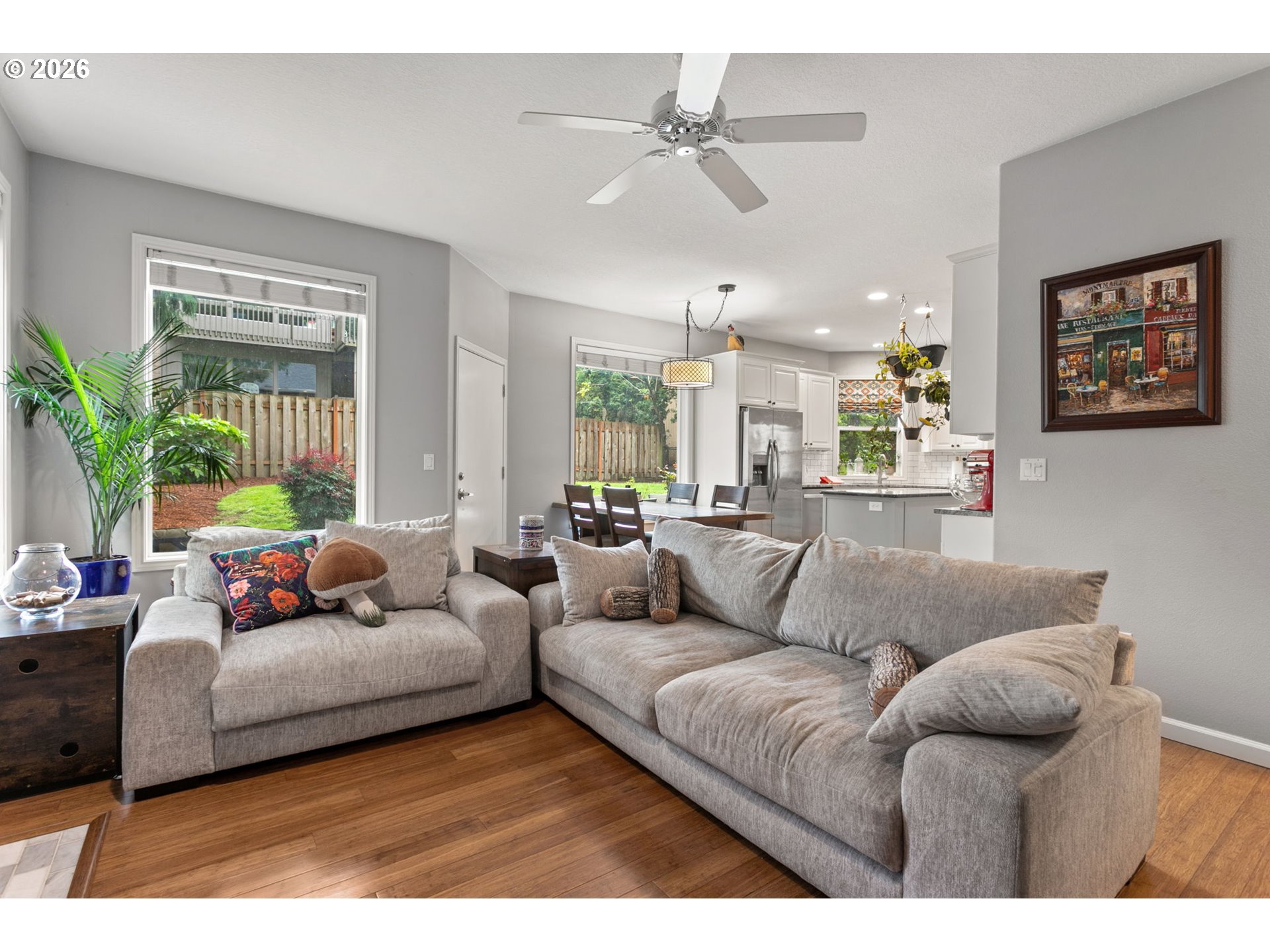 - Tucked at the end of a quiet, wooded cul de sac, this 3 bed, 2.5 bath, 2,145 sq ft South Burlingame home blends a forest retreat setting with the convenience of city living. Surrounded by evergreens and filled with natural light, it offers a relaxed, modern atmosphere that feels instantly grounding. With a Home Energy Score of 8, it’s also a smart, efficient choice for anyone who values comfort, sustainability, and thoughtful updates.As you enter, you’re greeted by high ceilings, an updated staircase, and bamboo floors that anchor the living room. The bright kitchen and cozy dining and family rooms-with a gas fireplace-create an easy flow for entertaining, while the main level powder room and laundry room with a utility sink add everyday convenience.Upstairs, the primary suite sits above the treetops with French doors, vaulted ceilings, a ceiling fan, a generous walk in closet, and an ensuite bath featuring dual sinks, a soaking tub, and a walk in shower. Two additional bedrooms share a full bath.Step onto the front deck and you’re met with a wall of evergreens and a sense of calm-perfect for morning coffee or weekend lounging. The landscaped yard is intentionally low maintenance, ideal for anyone who wants outdoor space without giving up their free time, and the two car garage offers plenty of room for storage, gear, or projects.Major updates include a new furnace, AC, and gas water heater installed in 2026; new upper level carpet in 2025; and a composite roof from 2020. Fresh yard cleanup and bark mulch in April 2026 make the property feel crisp and move in ready.All of this sits minutes from Lewis & Clark College, OHSU, Tryon Creek State Park, John’s Landing, Sellwood, and Hillsdale-with downtown Portland just a quick ten minute drive away. Zoned for Portland Public Schools: Capitol Hill Elementary, Jackson Middle, and Ida B. Wells High School. Washer/dryer, kitchen appliances, and window coverings are included. [Home Energy Score = 4. HES Report at https://rpt.greenbuildingregistry.com/hes/OR10246114]