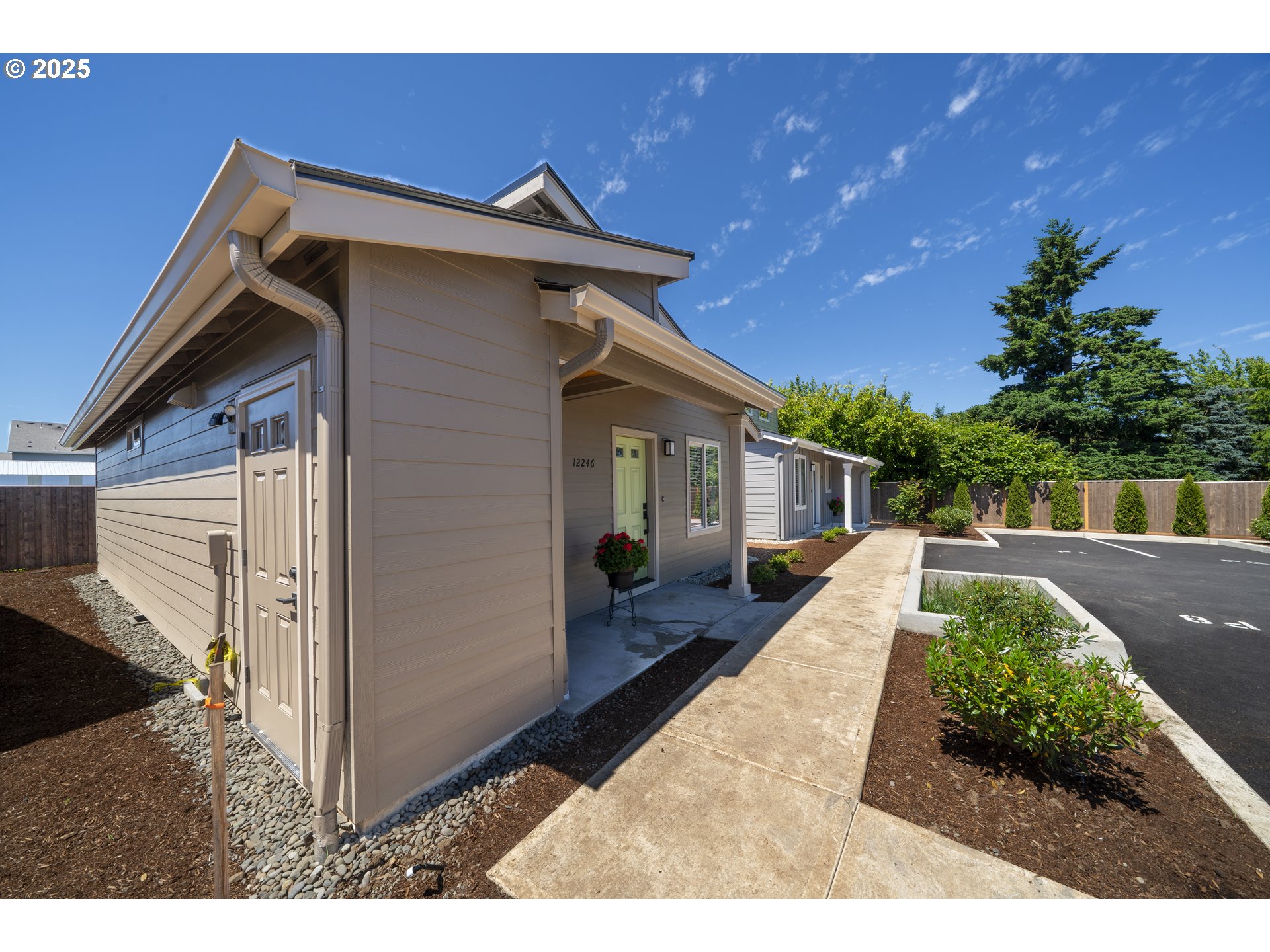 - Brand new one level luxury cottage home thoughtfully designed for comfort and easy living. From the moment you enter, you’ll be welcomed by stunning luxury vinyl plank flooring, soaring vaulted ceilings, and an abundance of natural light that fills the open-concept living space.The heart of the home features a beautifully crafted kitchen complete with quartz countertops, soft-close cabinets, a spacious island, and premium stainless steel appliances—including the refrigerator. Cozy up in the inviting living room, highlighted by a floor-to-ceiling shiplap accent wall, floating built in shelve, and a sleek electric fireplace. This 2-bedroom, 2-bathroom gem includes a spacious primary suite with a luxurious attached bath, featuring a walk-in shower. Each home comes with a dedicated parking spot, and the $223/month HOA covers nearly everything except electricity and cable ensuring low-maintenance living. Nestled in a peaceful neighborhood, you’re just a short walk to Wesley Linn Park and minutes from local shopping and amenities. Looking for more privacy? Buyers have the option to upgrade to a fenced private backyard—perfect for pets, gardening, or outdoor entertaining. Don’t miss this opportunity to own a beautifully designed home built by a trusted local custom home builder: Gerritz Custom Homes who has been building quality homes since: 1979. This custom cottage offers Luxury, convenience, and charm—all in one perfect package!