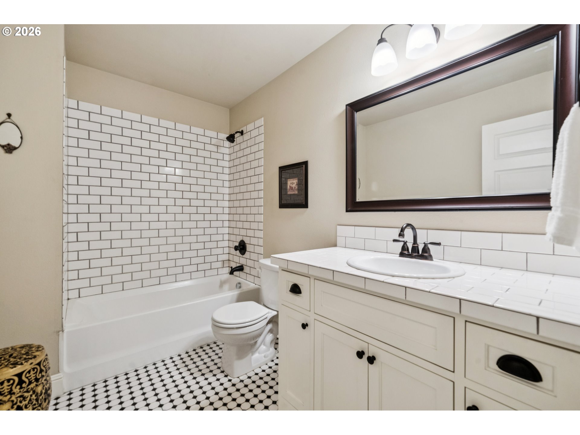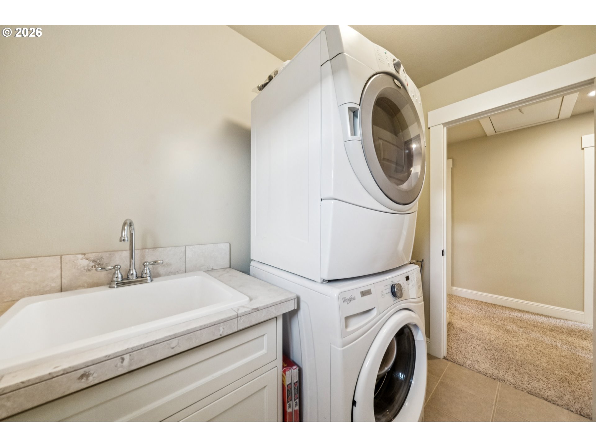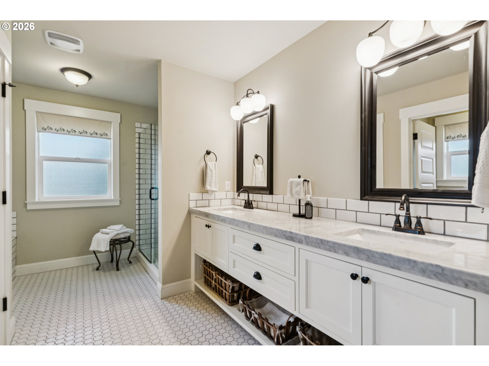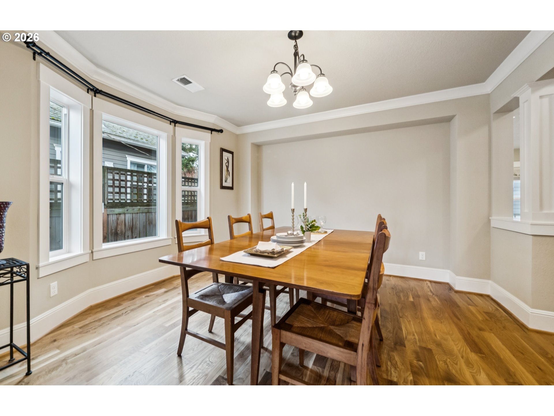 - Located in the vibrant Alberta Arts District, this 2013 Craftsman home with 3-bedrooms, main floor office, and 2.5-baths, blends classic charm with modern comfort and fantastic location. Step up to the large, covered front porch and into the spacious living room with hardwood floors and coffered ceilings. Pocket doors open to the formal dining room with bay window while French doors frame the main floor office providing flexible work-from-home or dedicated creative space. At the back of the home, the open kitchen and family room flood with natural light. Centered around a beautiful marble island, the kitchen features a built-in eating nook, generous kitchen pantry, and cozy family room anchored by a gas fireplace with blower. The main floor guest bath includes a utility room while under-the-stairs closet space offers additional room for storage. Upstairs, the spacious primary suite features recessed ceiling lighting, a generous walk-in closet and an ensuite bath with marble counters, tile surrounds, a soaking tub, and walk-in shower. Daily life is a breeze with two additional upper-level bedrooms, upper-level laundry, an additional full bath, plus a central vacuum system and AC throughout the home. Back downstairs, step easily from the family room onto the back porch and out to the low-maintenance and beautifully hardscaped Pennsylvania Bluestone patio. Outdoor living shines with this courtyard style space perfect for entertaining. Espalier pear trees, vines, and shrubs line the private yard and are just beginning to wake up from their winter sleep. With a long driveway and detached garage, the home offers plenty of parking and additional storage. Ideally situated in one of the most pedestrian and bicycle-friendly neighborhoods in Portland with easy access to Alberta shops & restaurants, the North Williams Avenue bike corridor, convenient access to I-5 and downtown Portland, this home offers excellent connectivity for commuting, recreation, and everyday amenities. [Home Energy Score = 6. HES Report at https://rpt.greenbuildingregistry.com/hes/OR10243760]