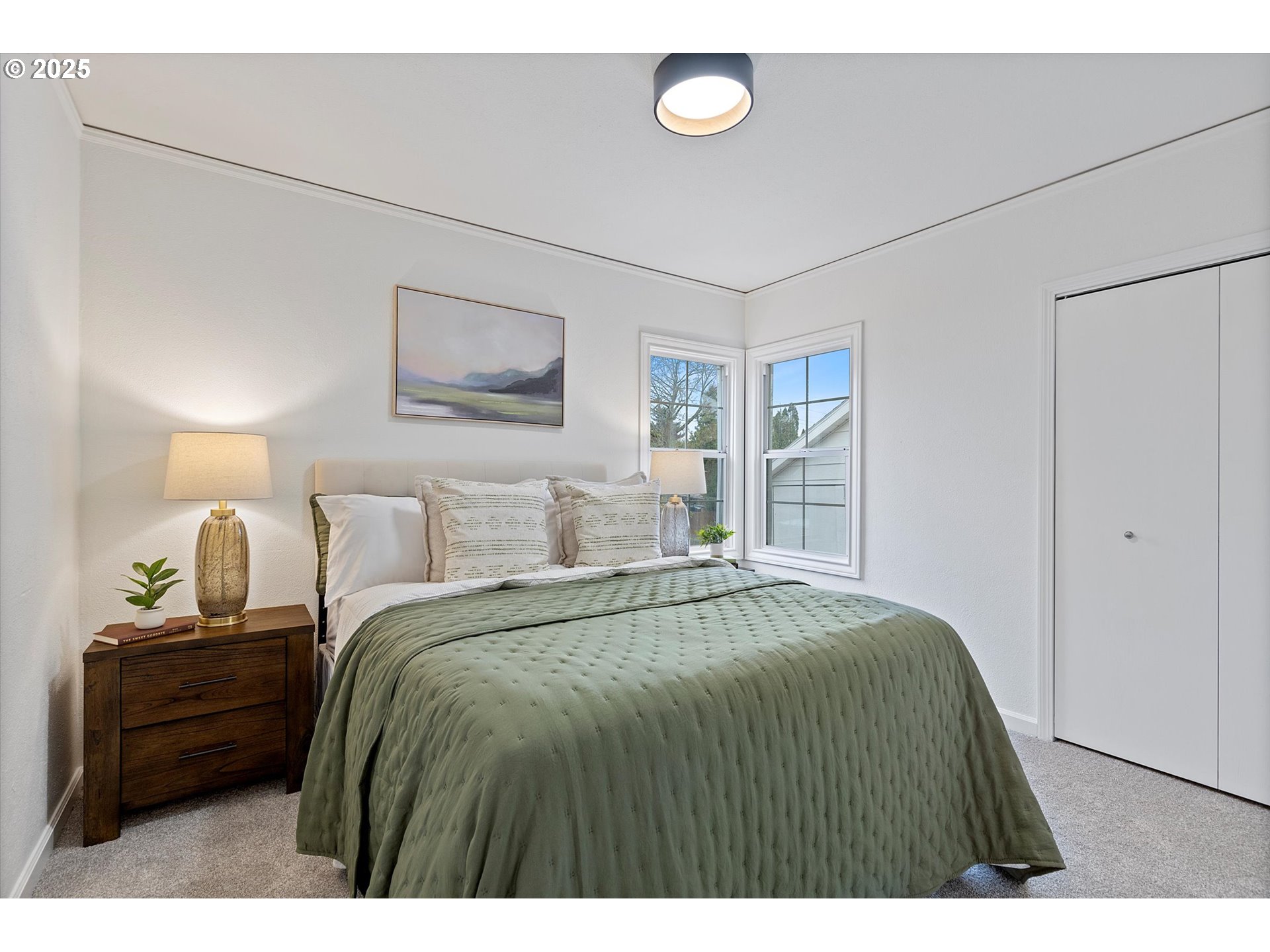 - This classic Cape Cod Cottage blends timeless character with practical updates in a peaceful, tree-lined setting. The main level features a bright, functional layout with refinished hardwood floors, two comfortable bedrooms with new carpet, and an updated full bath. The refreshed kitchen and dining nook, drenched in natural light, shines with new quartz counters, updated flooring, and new appliances. Upstairs, a spacious en-suite primary with large walk-in closet offers flexibility for sleeping and/or office. The spacious basement with generous ceiling height provides excellent storage and potential for expanded living space. Outside, mature landscaping, off-street parking, and a private fenced yard complete this inviting home. Ideally located in close proximity to parks, schools, and neighborhood amenities. Recent improvements include a newer roof and A/C, new furnace, and fresh exterior paint. [Home Energy Score = 1. HES Report at https://rpt.greenbuildingregistry.com/hes/OR10238912]