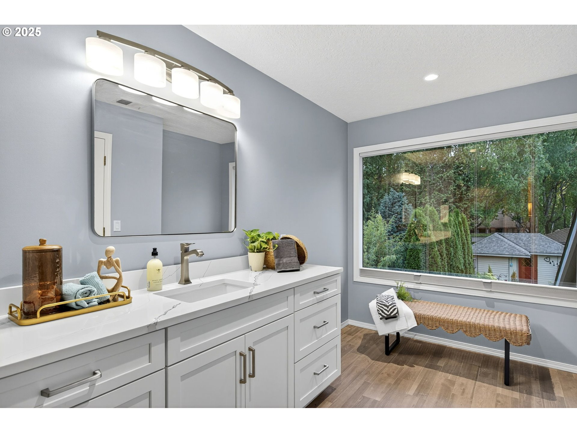 - Welcome to this stunning home in the sought-after NE Sandstone neighborhood, where all the beautiful updates come together perfectly. The home features a fabulous addition that serves as a luxurious owner's suite, light-filled w/gorgeous windows and french doors, a custom bathroom w/heated tile floors & tiled shower. Attached is a fully enclosed sunroom-perfect as a serene retreat or an additional living space with mini-split and a separate entrance.-Updates include Andersen windows and doors, carpet, bathrooms, roof, exterior paint, systems, remote fireplace insert, remote skylight blinds, lovely new laundry room w/sink and built-in features. Meticulously maintained! The vaulted living room offers a warm and inviting space to gather around the beautiful fireplace, flowing perfectly into the dining area and fully equipped kitchen w/eating nook. Upstairs you will find a 2nd large primary suite behind double doors featuring a new custom bathroom, walk-in closet and a beautifully tiled shower. There's also a dedicated space pre-plumbed for a soaking tub! 2 additional bedrooms and a 3rd new full bath.-The exterior is equally impressive, offering a redesigned & sprawling, picture-perfect backyard! Gorgeous trees, seasonal shrubs and flowers to enjoy year round. Outdoor living on the spacious paver patio is perfect for relaxing and enjoying the peaceful surroundings.-This home truly stands out for it's combination of quality updates, custom design, and great location. Tucked nicely in a culd-e-sac and surrounded by lovely homes, your new SANDSTONE home awaits you.