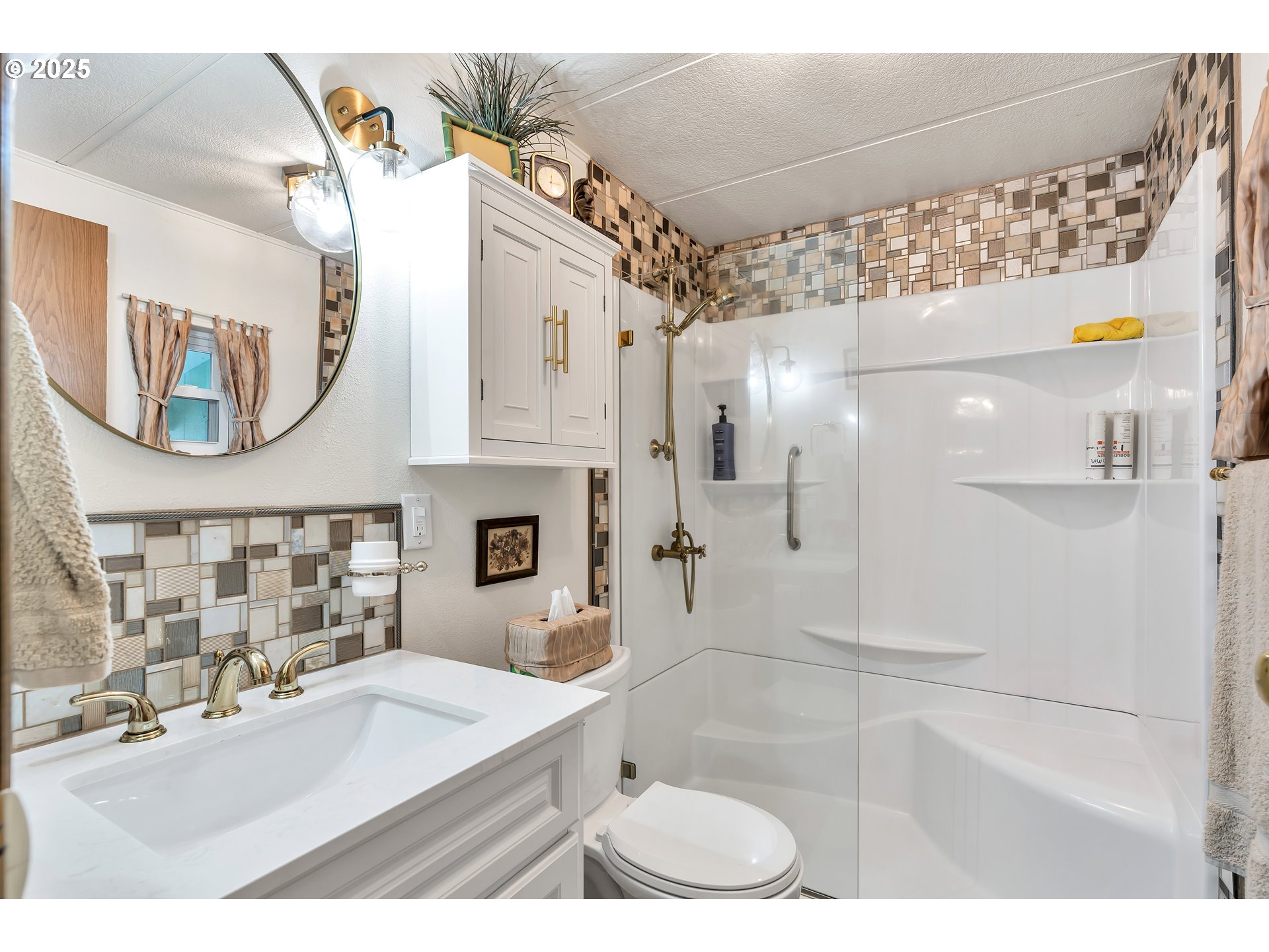 - Enjoy spacious, low-maintenance living in this bright double-wide home located in one of Tualatin’s desirable 55+ communities. The open floor plan features high ceilings that fill the space with natural light, creating an inviting atmosphere throughout. The primary suite includes a jetted soaking tub, ensuite bath, and a converted walk-in closet for added versatility. Relax on the covered deck or enjoy community amenities such as a clubhouse, library, and gathering spaces. A spacious enclosed shop offers abundant workspace and storage for projects and tool organization, a haven for DIYers.