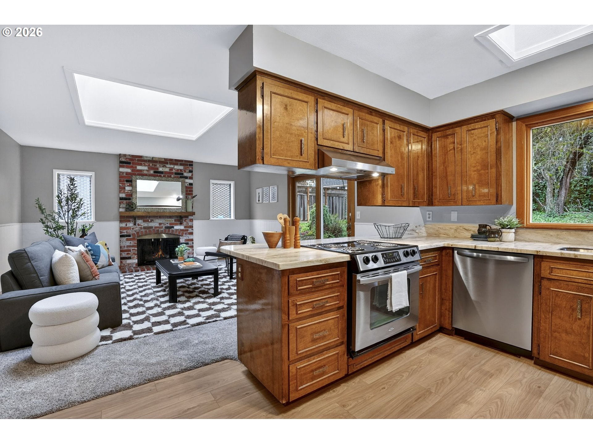 - Fresh beginnings in Highland Park...Surrounded by mature trees&lush landscaping, the property sits on a beautifully maintained 10,000+ square foot corner lot near Fir Grove Park. The setting feels quiet&tucked away while still offering convenient access to nearby parks, trails, and everyday amenities. Inside, the 1,707 SQFT layout flows comfortably between a welcoming living room, a spacious family room, and a dedicated dining area—offering flexibility for both everyday living and gatherings with friends and family. The home features 3beds+2baths, including a primary suite with bath, while the additional bedrooms are generously sized and well suited for guests, a home office, or creative space. Increasingly sought-after single-level living makes the home both practical and easy to enjoy for years to come. Since purchasing the home in August 2025, the current owners have made several thoughtful improvements to the property, including a brand-new roof and gutters, new flooring throughout, fresh flat ceilings (popcorn removed), updated ceiling lighting, remote-controlled skylight blinds, and the addition of Ziply Fiber Internet for high-speed connectivity. The kitchen remains ready for its next vision, offering a wonderful opportunity for a future owner to bring their own style and updates while already benefiting from the significant foundational improvements that have been completed. Sliding doors lead to a peaceful outdoor patio, while the generous corner lot shaded by mature trees, creates a natural canopy and a sense of privacy that makes the yard feel like a quiet retreat, perfect for outdoor dining, gardening, or simply enjoying the calm surroundings. When the sellers purchased the home, they envisioned completing a full remodel and thoughtfully began improving the property right away. As life sometimes unfolds in unexpected ways, their plans shifted sooner than anticipated, and the home is now ready for its next chapter.