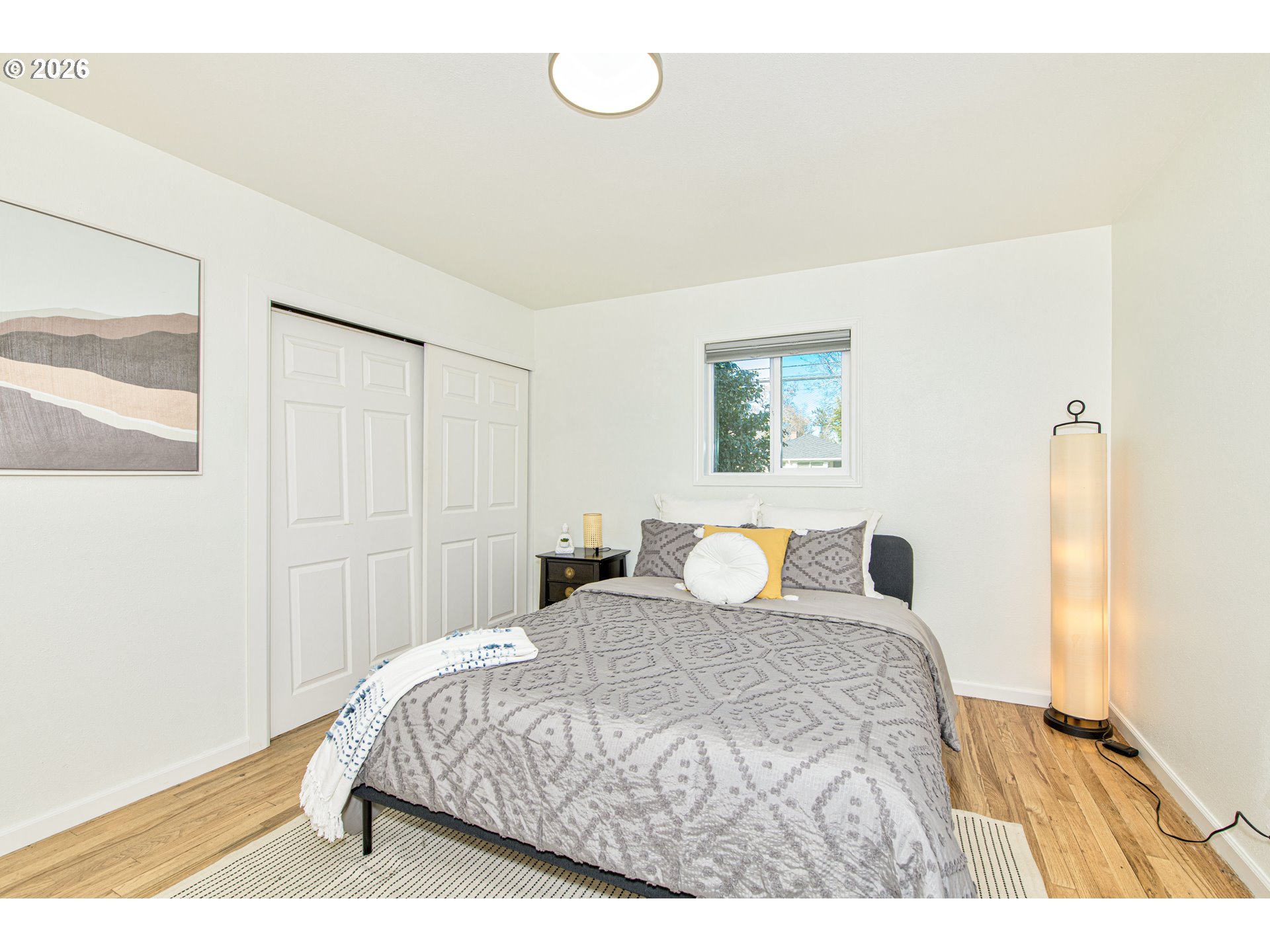- This charming 4-bedroom, 1-bath home is full of character, featuring original hardwood floors, a kitchen with solid wood cabinets and an updated backsplash, and a beautifully remodeled bathroom. Each bedroom includes a functioning closet, offering flexibility for guests or additional living space. The fourth bedroom provides versatility and could also serve as an office. The generous lot includes a fenced-in yard, perfect for pets, gardening, entertaining, or simply enjoying outdoor life. The backyard shines with cherry and apple trees, irrigated vegetable beds with a custom-built trellis, and a welcoming fire pit gathering area. Irrigation serves the front, side, and back beds, making it easy to maintain lush landscaping year-round. Located in inner SE Portland, the home is within short distance to parks, the Springwater Corridor, libraries, grocery stores, food carts, and shopping, with easy access to dining, entertainment, and commuter routes. A functional one-car garage, washer/dryer, newer AC unit, and ample street parking complete this well-maintained home in a prime SE location. [Home Energy Score = 1. HES Report at https://rpt.greenbuildingregistry.com/hes/OR10244428]
