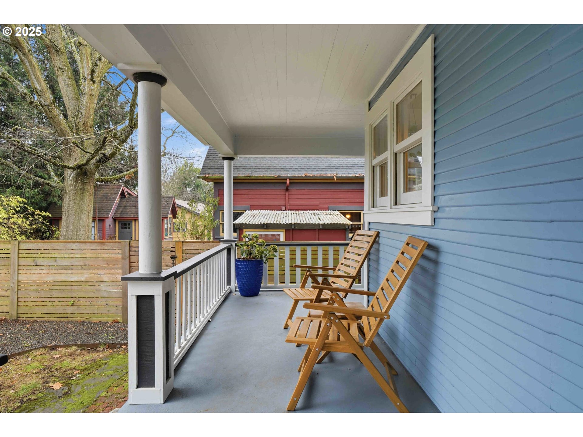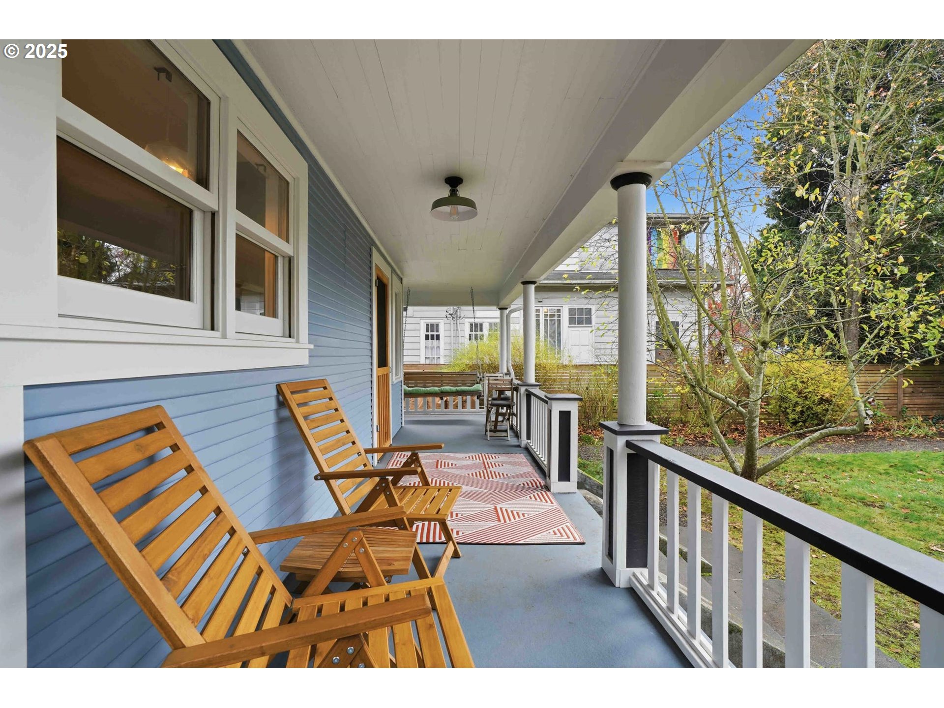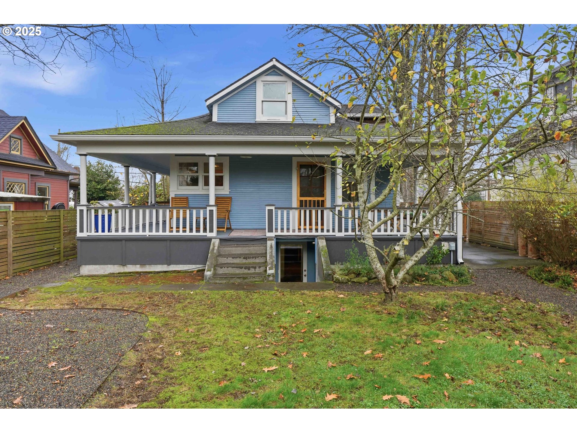 - Classic 1902 North Portland bungalow with modern updates — a light, bright home in the historic Humboldt neighborhood, known for its tree-lined streets, historic architecture, and strong community character. Inside, a beautifully renovated kitchen features a striking tile backsplash that catches the morning light and opens directly to the south-facing wrap-around covered porch, creating an easy indoor–outdoor flow. Both bathrooms have been updated with clean, modern tile surrounds, and the upper-level primary suite includes built-ins and a versatile bonus room suitable for a variety of uses. Large windows throughout give the home an open, airy feel. Radiant floor heating with a tankless boiler and double-pane windows provide efficient year-round comfort. An exterior entry leads to a spacious basement offering abundant storage, workshop potential, or project space. The fully fenced yard includes garden boxes and mature plantings that will burst with color in the spring. Established blueberry and raspberry bushes and apple and plum trees round out this urban oasis. Fresh exterior paint and the classic bungalow façade highlight the home’s long-standing charm and thoughtful upkeep. Humboldt offers convenient access to nearby shops, dining, transit, parks, and neighborhood amenities. Known for its historic roots and creative energy, the area continues to be one of North Portland’s most engaging and well-loved communities. A rare blend of early-century architecture, contemporary updates, bright interiors, generous outdoor space, and a location with everyday conveniences close at hand. Ready for its next chapter.
