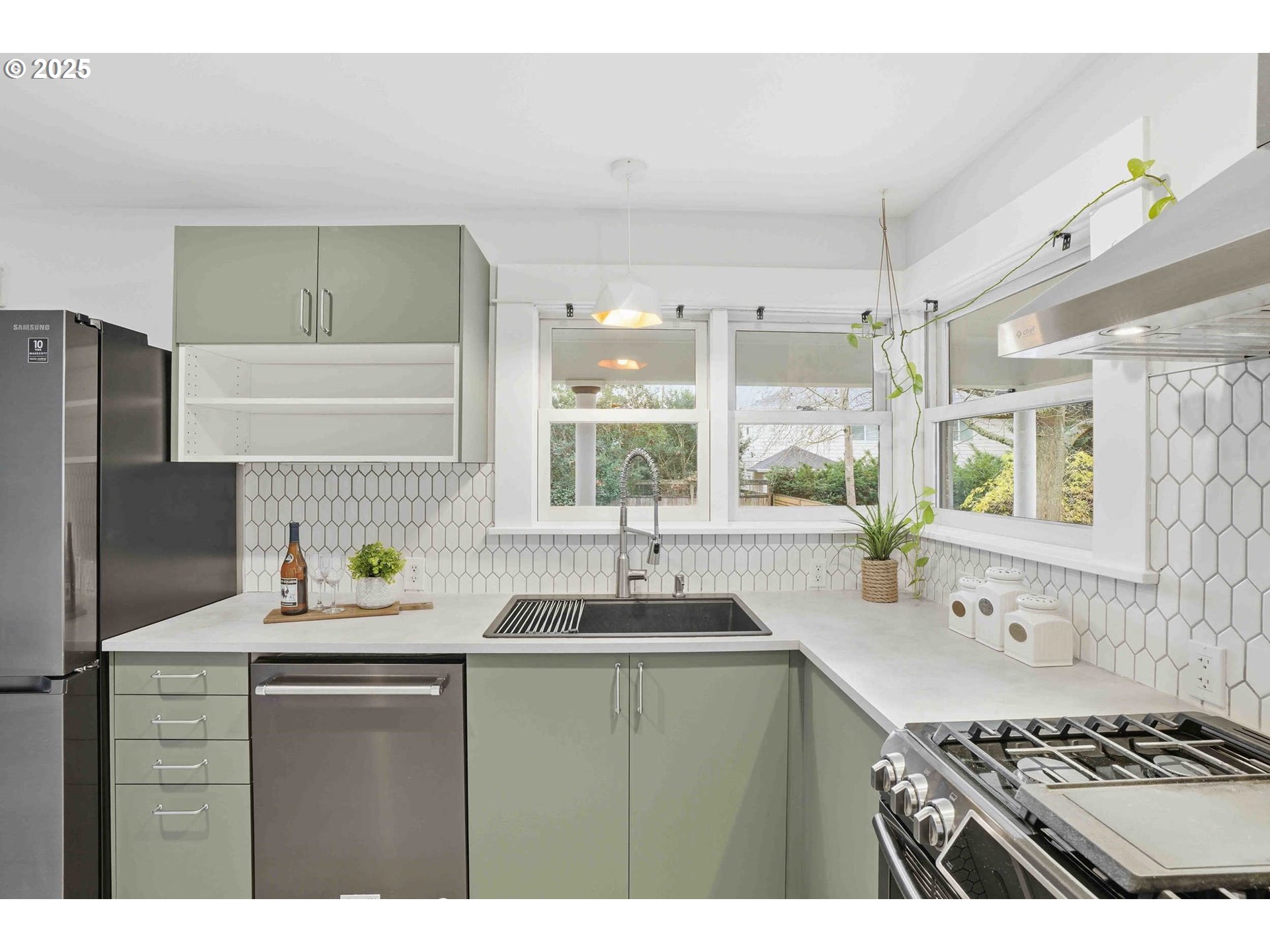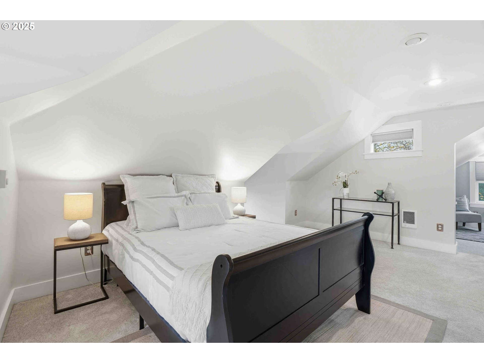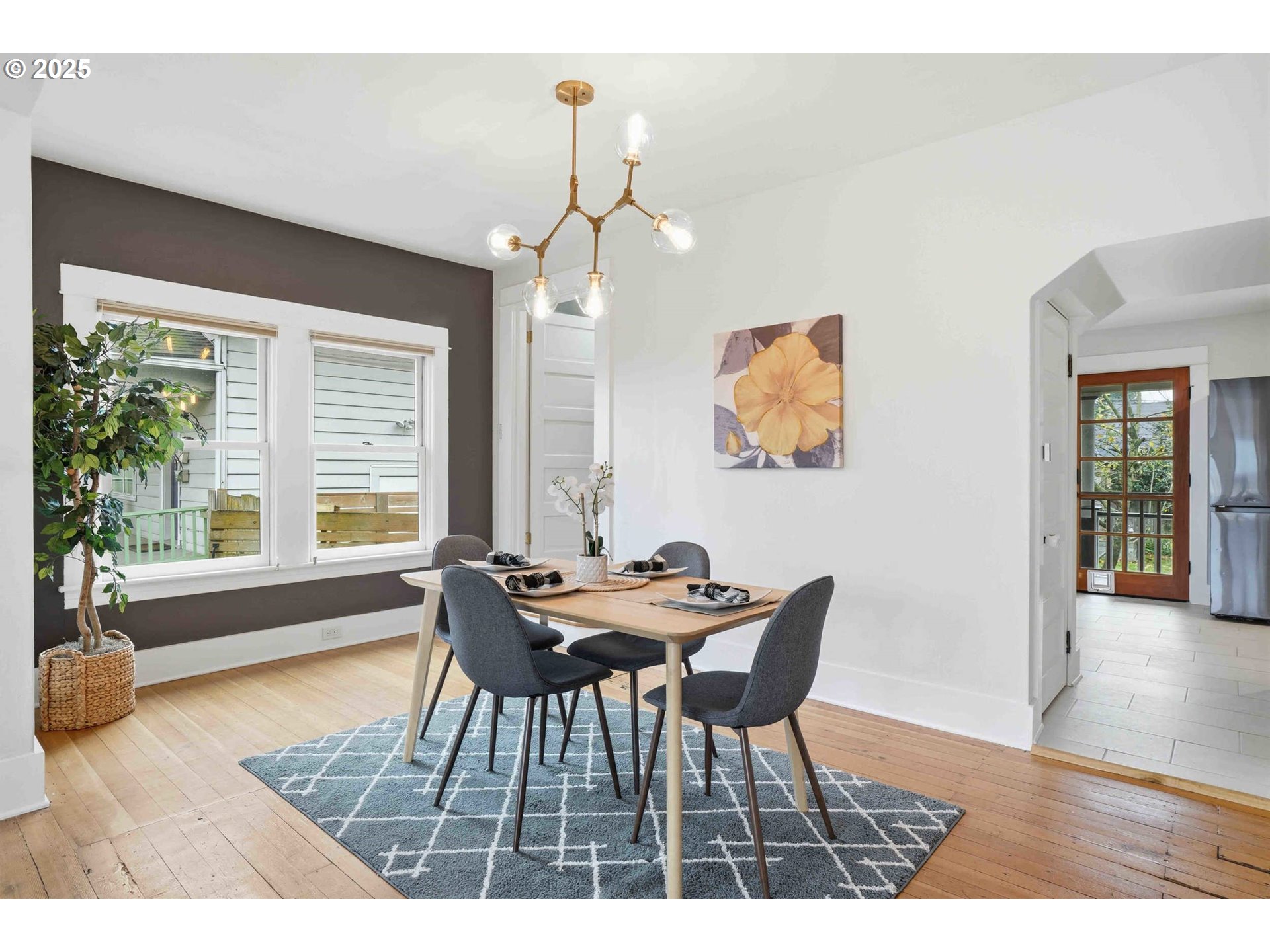 - Classic 1902 North Portland bungalow with modern updates — a light, bright home in the historic Humboldt neighborhood, known for its tree-lined streets, historic architecture, and strong community character. Inside, a beautifully renovated kitchen features a striking tile backsplash that catches the morning light and opens directly to the south-facing wrap-around covered porch, creating an easy indoor–outdoor flow. Both bathrooms have been updated with clean, modern tile surrounds, and the upper-level primary suite includes built-ins and a versatile bonus room suitable for a variety of uses. Large windows throughout give the home an open, airy feel. Radiant floor heating with a tankless boiler and double-pane windows provide efficient year-round comfort. An exterior entry leads to a spacious basement offering abundant storage, workshop potential, or project space. The fully fenced yard includes garden boxes and mature plantings that will burst with color in the spring. Established blueberry and raspberry bushes and apple and plum trees round out this urban oasis. Fresh exterior paint and the classic bungalow façade highlight the home’s long-standing charm and thoughtful upkeep. Humboldt offers convenient access to nearby shops, dining, transit, parks, and neighborhood amenities. Known for its historic roots and creative energy, the area continues to be one of North Portland’s most engaging and well-loved communities. A rare blend of early-century architecture, contemporary updates, bright interiors, generous outdoor space, and a location with everyday conveniences close at hand. Ready for its next chapter.