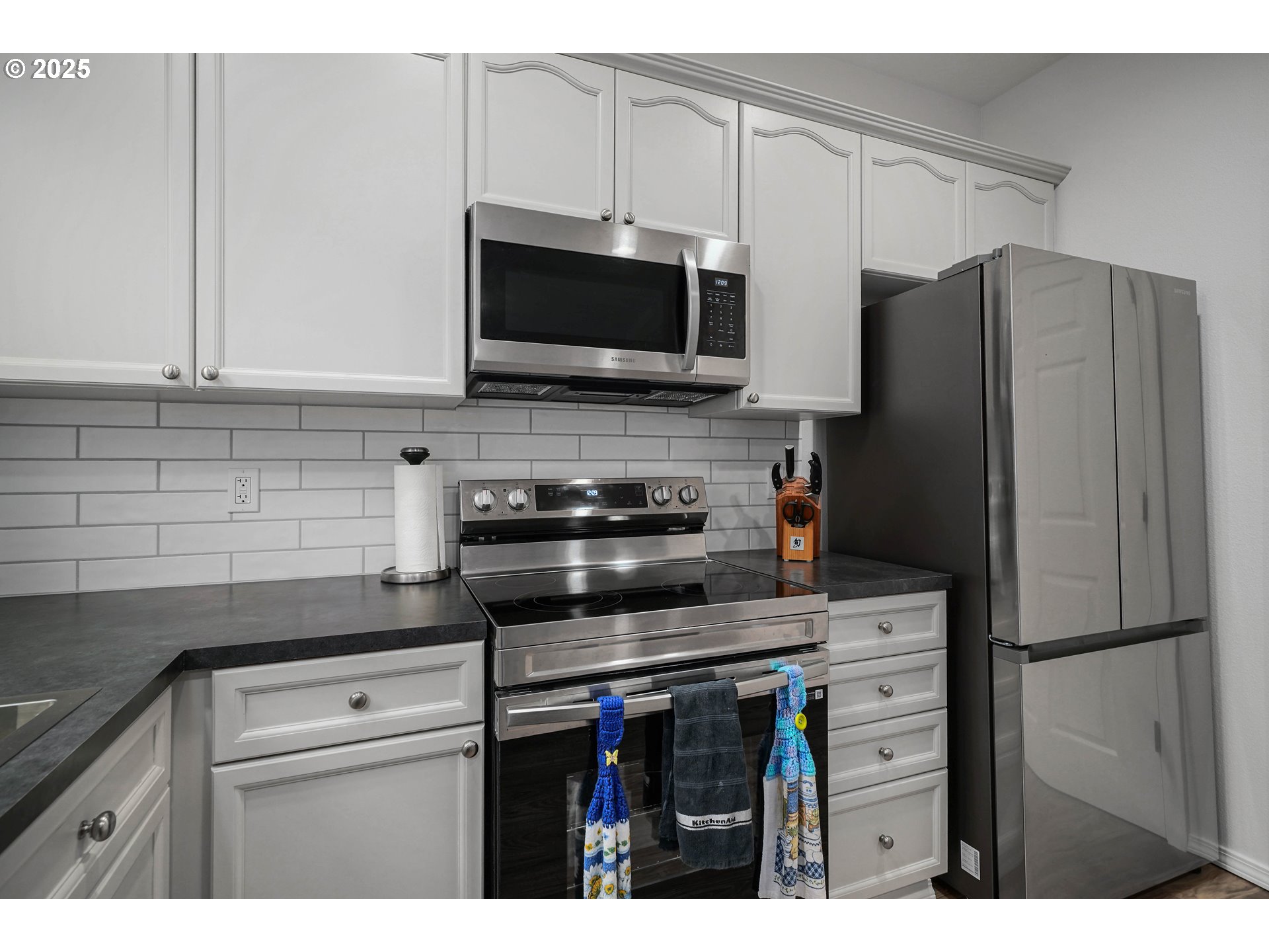 - Thoughtfully updated home in desirable Kelly Creek Meadows with great curb appeal. All you have to do is move in. New in 2025: roof, interior paint, decks, Stainless Steel kitchen appliances, kitchen countertops, backsplash, flooring on the main level, bath light fixtures, primary fan, and all new landscaping. The hot water heater was replaced in 2023. Drought tolerant land scaping. Private back yard with newer shed. The driveway was widened to create room to potentially park 3 cars. Truly turnkey.
