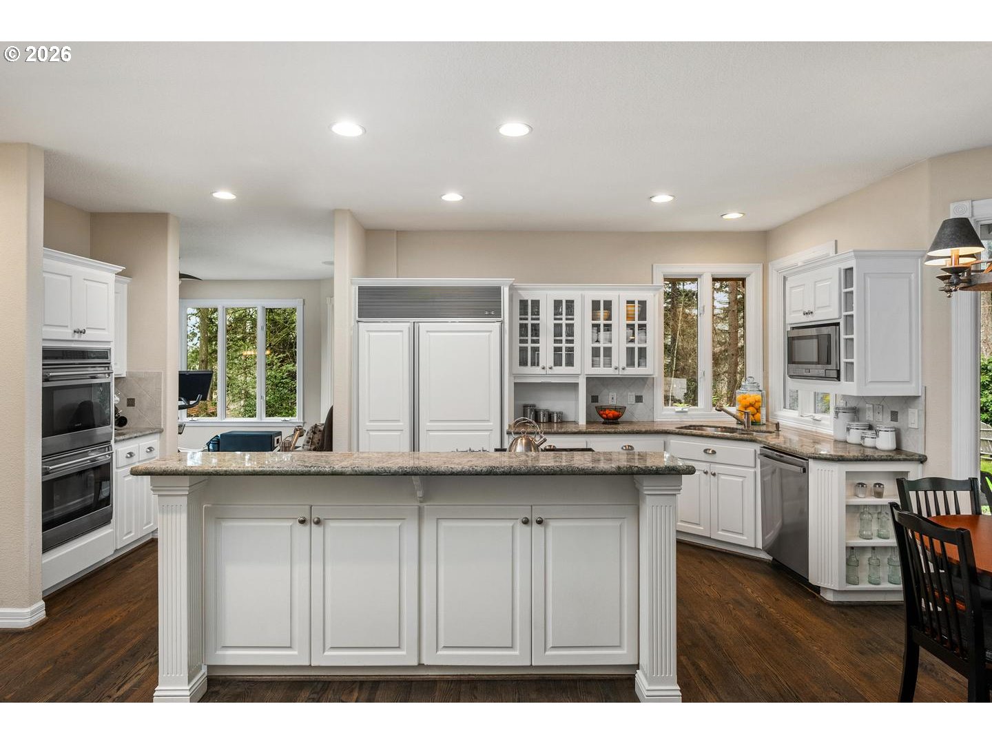 - At the very top of Murrayhill sits one of the community’s most distinctive homes. Set on a rare .62-acre private lot in South Beaverton, this custom residence is surrounded by trees, while offering a beautifully open & level backyard for treasured outdoor entertaining & safe play. A wraparound driveway with generous flat parking area creates a stately arrival worthy of its elevated setting. The soaring vaulted foyer with dark hardwoods opens to an inviting dining room & sundrenched living room with SE view, before revealing the dramatic great room with 20-foot ceilings. You will feel instantly at home upon seeing the elegant built-ins & a wall of windows that frames the serene landscape. The chef’s kitchen anchors the home with a large island, Sub-Zero refrigerator, Wolf double ovens, prep sink, walk-in pantry & charming corner sink. Just off the kitchen, a cheerful sunroom offers year round natural light & flexible use for fitness, office or play. Designed with a main floor bedroom & full bathroom this home offers ideal guest space & the large mud-room + laundry has custom built-ins to keep busy lifestyles organized. The private & luxurious primary suite captures tranquil views for ultimate relaxation & the expansive walk-in closet will thrill any fashion enthusiast. The additional 3 bedrooms, bonus room & theater room on the upper level provides generous living space for all. Located moments from parks, pool, pickleball, tennis, trails & within Mountainside High School + Nancy Ryles Elementary boundaries, this is Murrayhill living at its finest!
