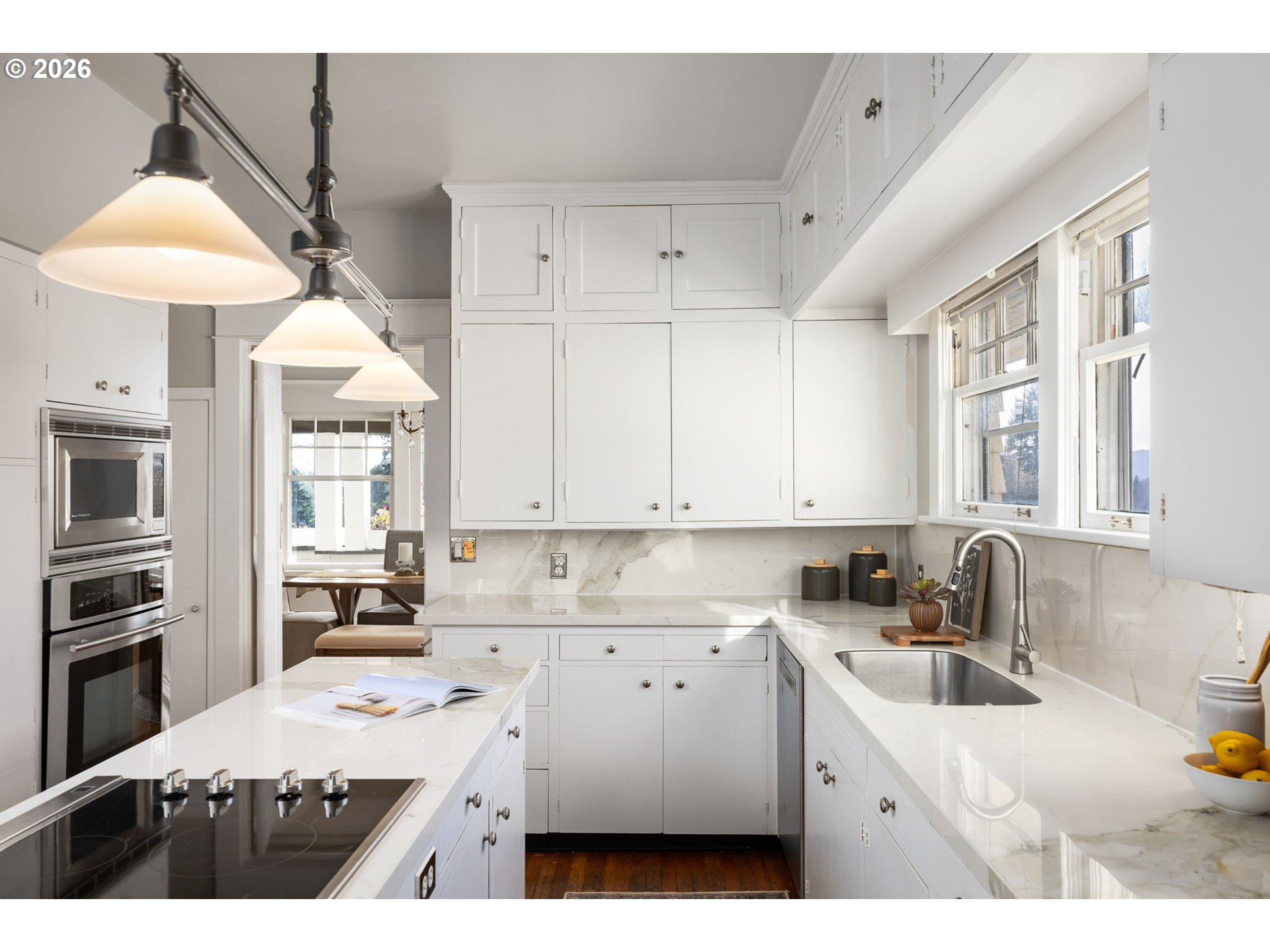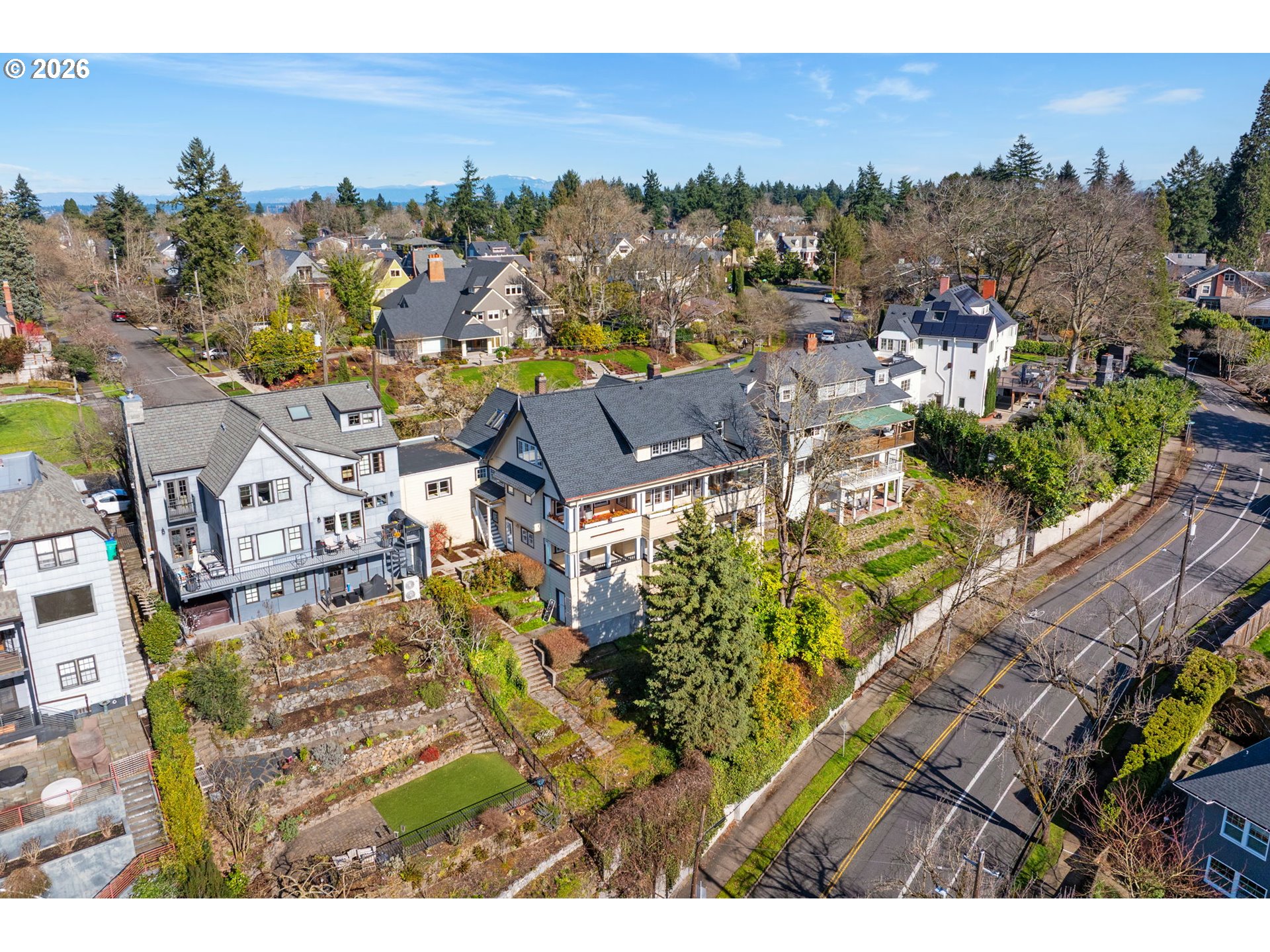 - Originally built in 1911, this timeless Craftsman home is perched on the coveted Alameda Ridge, offering sweeping views of the Irvington neighborhood and Portland’s iconic skyline. This stately vintage gem, designed for Northern Pacific Railway superintendent Mr. Fowler, exudes character and history, with its original oak hardwood floors, handsome woodwork, and grandly proportioned rooms.The main level features a Primary Suite, complete with a private study—perfect for work or relaxation. Upstairs, you’ll discover five spacious bedrooms, one of which boasts its own fireplace for an extra touch of charm. The lower level offers fantastic versatility, with a 2-bedroom apartment/guest suite and additional unfinished space ready for storage or future living area expansion.Outside, two full-length decks invite you to soak in the breathtaking views, stretching across Irvington and the city skyline. Modern updates include a newer furnace, AC, roof, and a decommissioned oil tank—ensuring comfort and peace of mind.A delightful nod to the home’s history, carved pineapple symbols are woven throughout the design, both inside and out. These pineapples, a traditional Craftsman motif, stand as enduring symbols of hospitality, warmth, and friendship—perfectly complementing the inviting character of this extraordinary residence.This is more than just a home—it’s a piece of Portland’s history, waiting to be cherished. [Home Energy Score = 1. HES Report at https://rpt.greenbuildingregistry.com/hes/OR10245267]