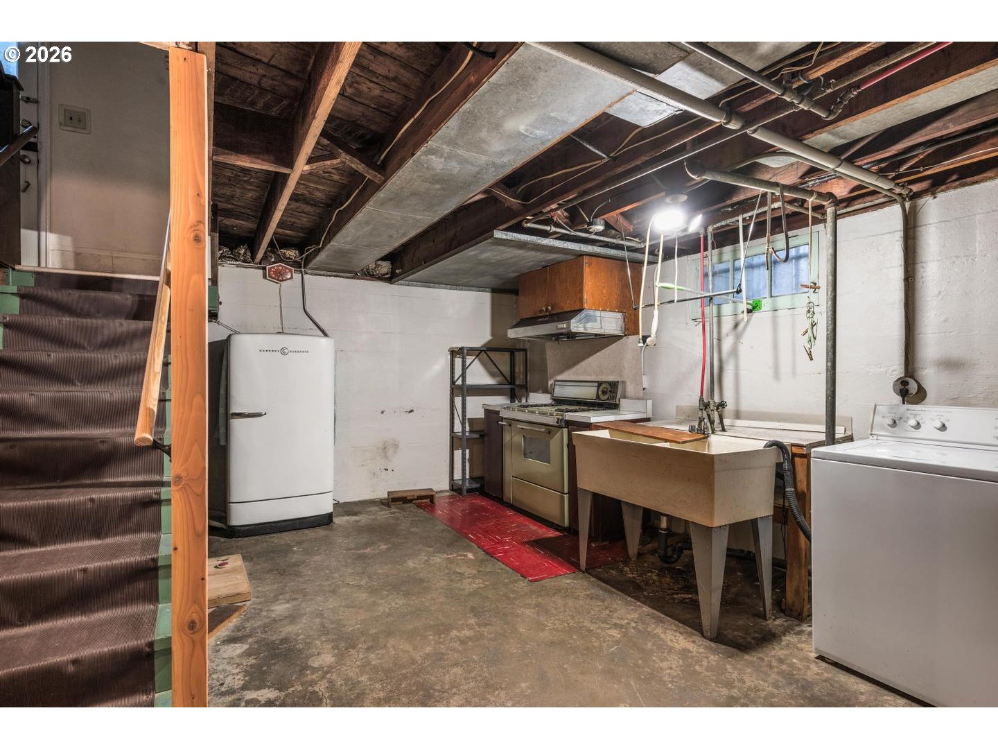 - Offered for the first time in generations, this 1947 Colonial Heights English has had only two owners, with the most recent caretaker calling it home for more than 70 years, and is ideally situated between Division and Hawthorne in one of Portland’s most coveted neighborhoods. From the moment you step inside, it is clear the home remains largely unchanged for decades, presenting a rare opportunity for cosmetic updating, restoration, or a thoughtful reimagining. The living room is anchored by a classic fireplace and generous picture window, while original hardwood floors have been protected beneath carpet for years, ready to be uncovered. A cozy dining room flows into a charming, time capsule kitchen that invites the next owner to either lean fully into its vintage appeal or bring it into a new era. Two bedrooms and a full bath complete the main level, with a third bedroom and small bath upstairs, along with excellent attic kneewall storage. Downstairs, a full basement offers a bonus room, abundant storage, and real flexibility, and tells part of the home’s story, as the prior owner used the space extensively for cooking and sewing, making clothing for herself, family, and neighbors, along with drapes and linens, while keeping daily work and food aromas separate from the main living areas. The attached garage and side entrance provide convenience and low-maintenance aluminum siding adds long-term durability. The large, fully fenced backyard is highlighted by a beautiful Asian Pear tree, and allows ample space for outdoor activities. The front yard features mature landscaping with an amazing Japanese Maple planted more than 60 years ago. Just one block from Sewallcrest Park with a playground and off-leash dog area, and close to Safeway, Fred Meyer, and the vibrant shops and restaurants of Division and Hawthorne, this home offers exceptional potential in a highly desired neighborhood with outstanding amenities.