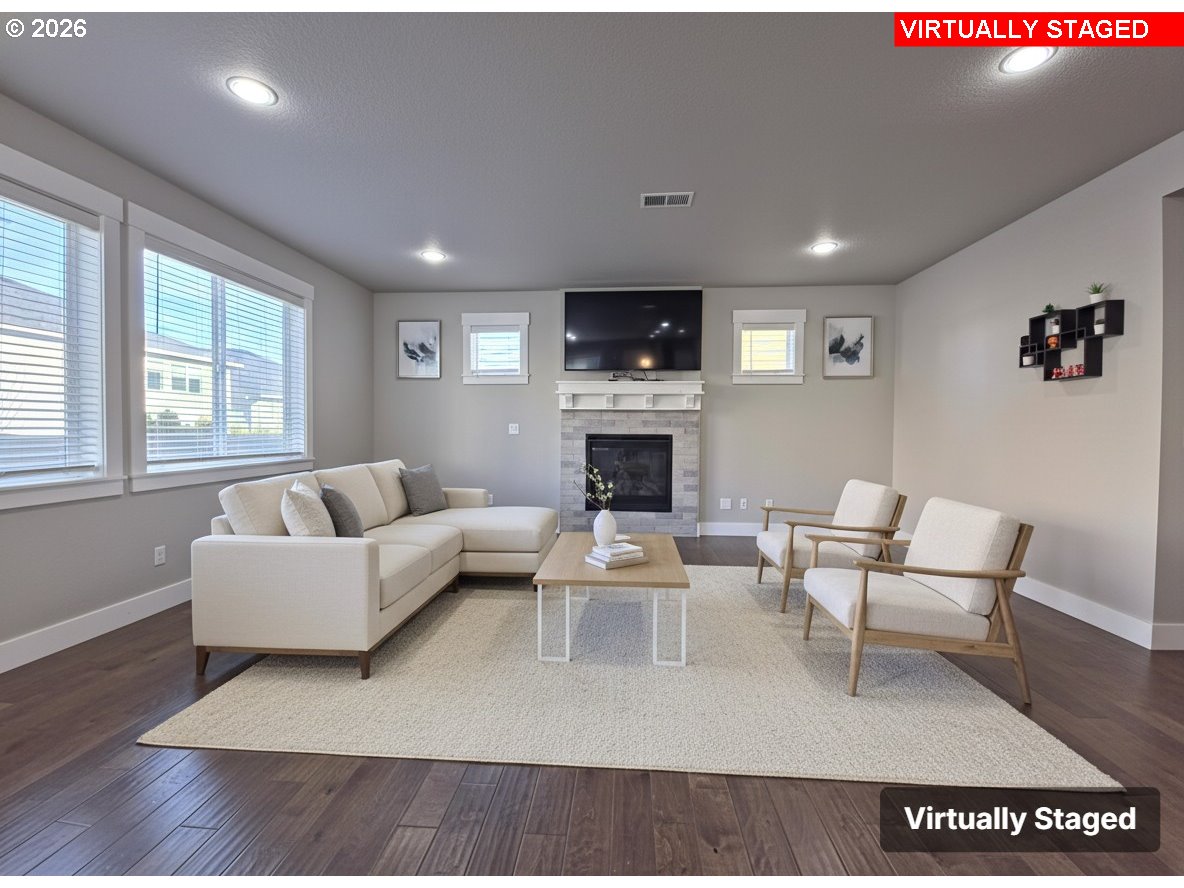 - Discover this meticulously maintained 5-bedroom, 3-bath home with 3,580 sq. ft. of thoughtfully designed living space in the desirable Highland Westmont neighborhood. Spread across two spacious levels, this home offers the perfect blend of comfort, functionality, and modern style. The main floor (1,570 sq. ft.) welcomes you with an entry hallway that leads to a den/office with elegant French doors, ideal for working from home or a quiet retreat. Just beyond, the space opens into the dining area and main living spaces, perfect for both everyday living and entertaining. The modern kitchen is a standout, showcasing quartz countertops, a stylish backsplash, gas cooktop, oversized island, pantry, and a Samsung smart refrigerator with built-in screen. The living room centers around a cozy fireplace, while engineered hardwood floors throughout the main areas add warmth and elegance. A large main-floor bedroom and full bathroom with walk-in shower provide an ideal setup for multigenerational living or a private guest suite. Upstairs (2,010 sq. ft.), you’ll find a generous bonus room, three additional bedrooms, and a spacious primary suite. The primary retreat includes a large walk-in closet and a luxurious ensuite bathroom with soaking tub, dual vanities, and a separate walk-in shower. A well-appointed laundry room with modern appliances and ample storage adds everyday convenience. Wide hallways, recessed lighting, and a neutral color palette create a bright, airy ambiance throughout the home. Enjoy breathtaking street views of Mt. Hood along with easy access to parks, schools, and shopping—making this home as practical as it is inviting. HOA includes front yard grass mowing and watering.