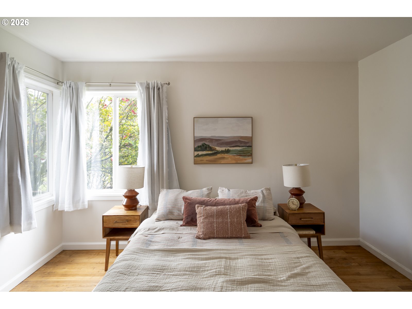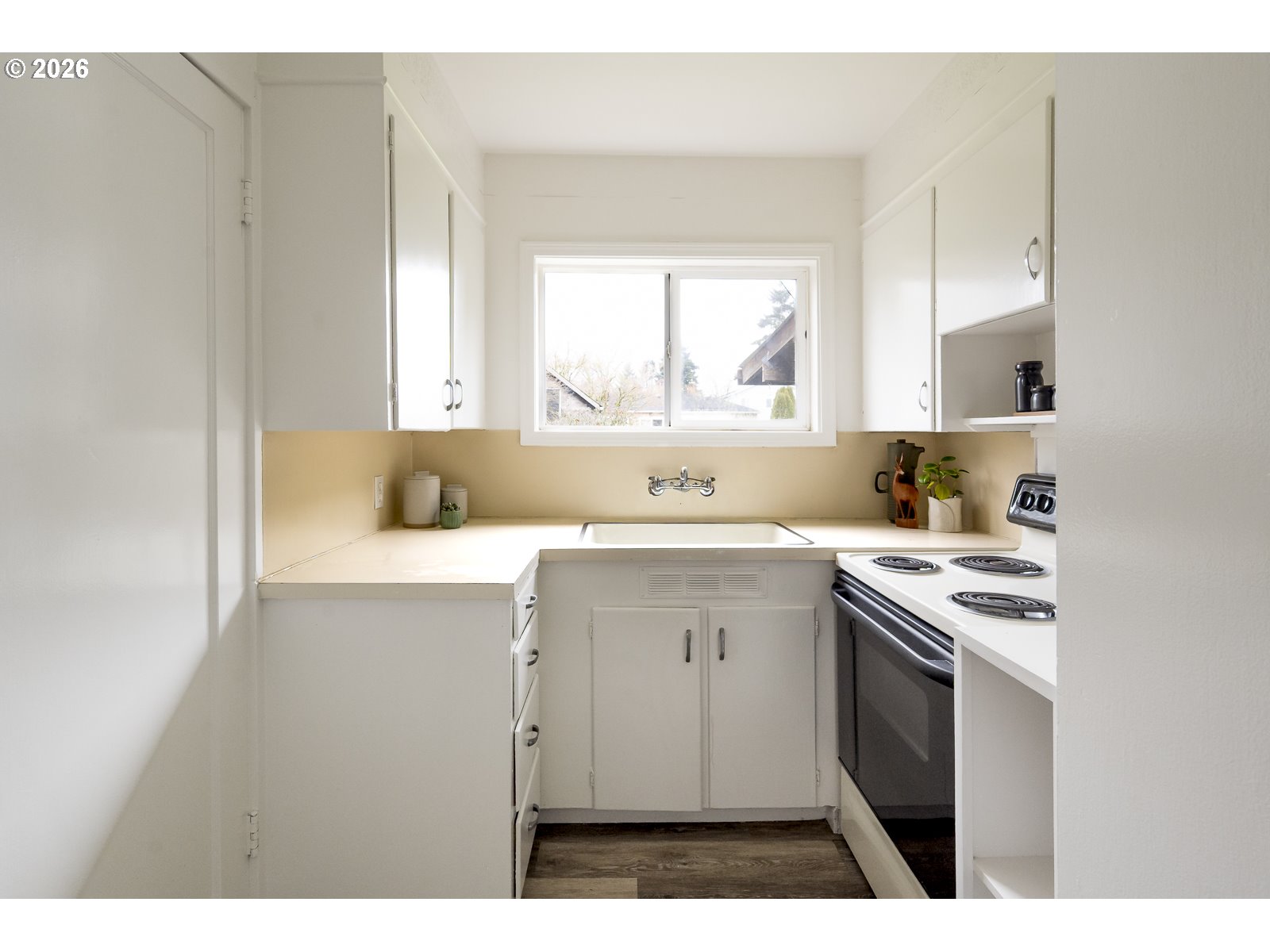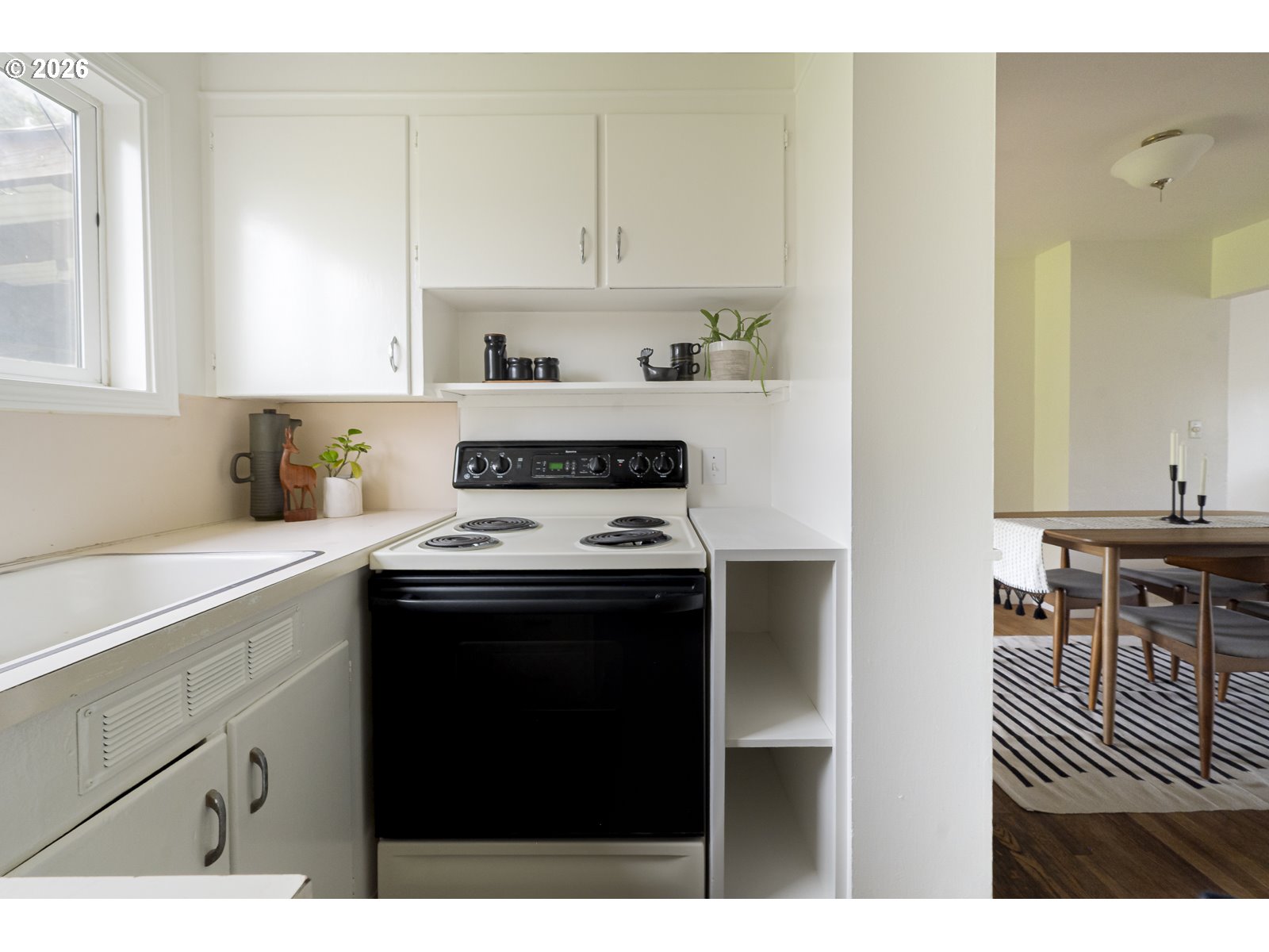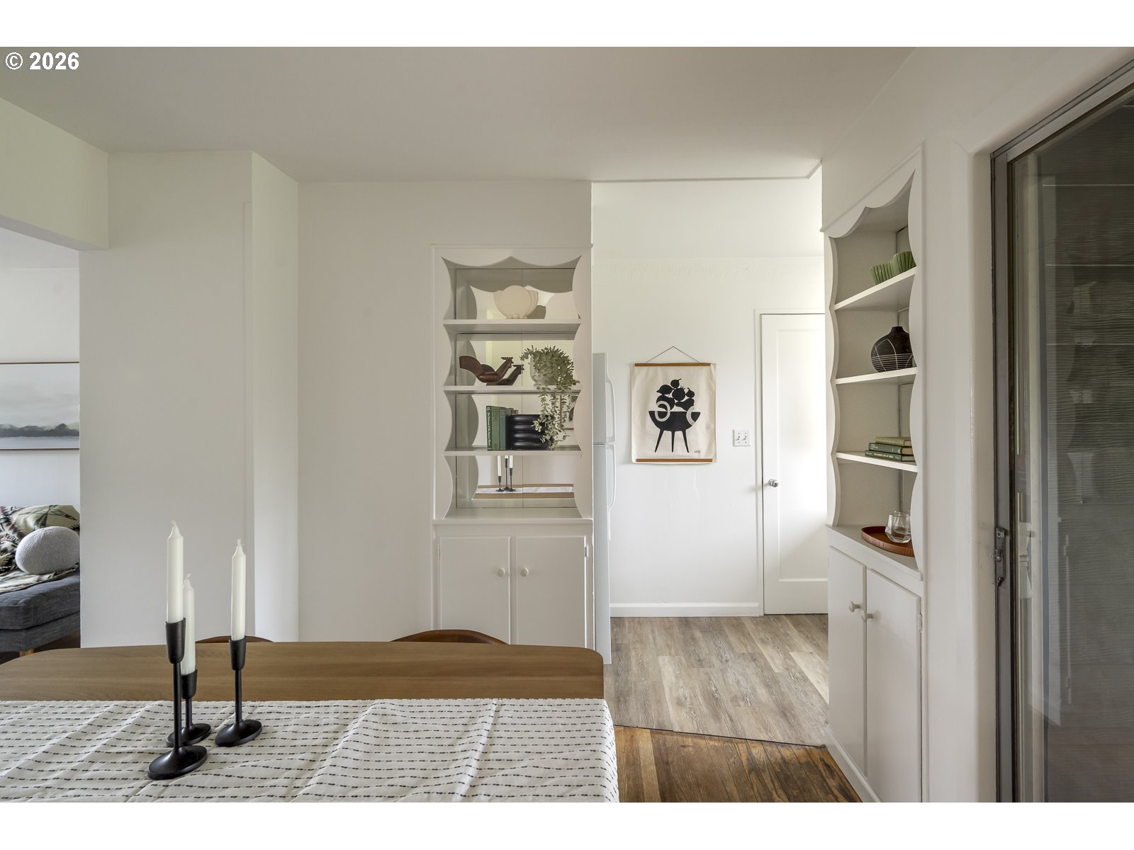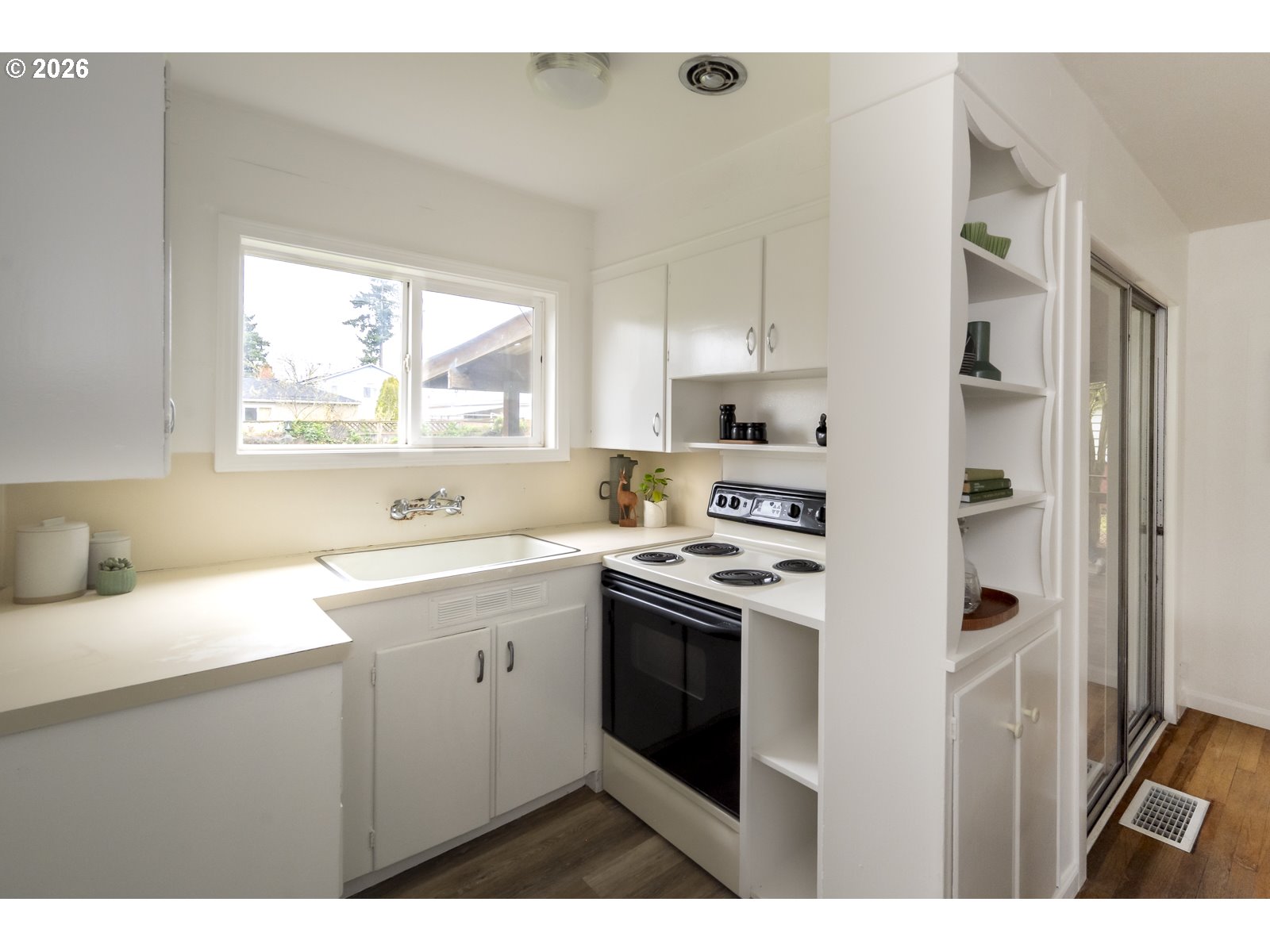 - Super tidy South Tabor ranch is ready for new owners! This mighty mid-century has both vibes and functionality. You get curved-wood, mirrored dining room built-ins, hardwood floors, great natural light, and a flow-tastic floor plan combined with a brand-new furnace, fresh paint in and out, and a 6/10 Home Energy Score for ease and efficiency. There's room to expand the kitchen into the current laundry/pantry, and the massive backyard is ready for your own inspiration: gardens, play space, shed, ADU? Sliding doors lead from the dining room to a large covered deck overlooking the lawn for year-round outdoor entertaining. The primary bedroom offers more of the mid-century magic with an original floor-to-ceiling built-in wooden closet. The attached garage provides parking and storage, and the location is a nice surprise: a quiet, dead-end street with quality neighbors and a communal feel, just one block from the Woodward Greenway, with easy access to Mt. Tabor, FuBonn, and the Jade District on Division. [Home Energy Score = 6. HES Report at https://rpt.greenbuildingregistry.com/hes/OR10245199]