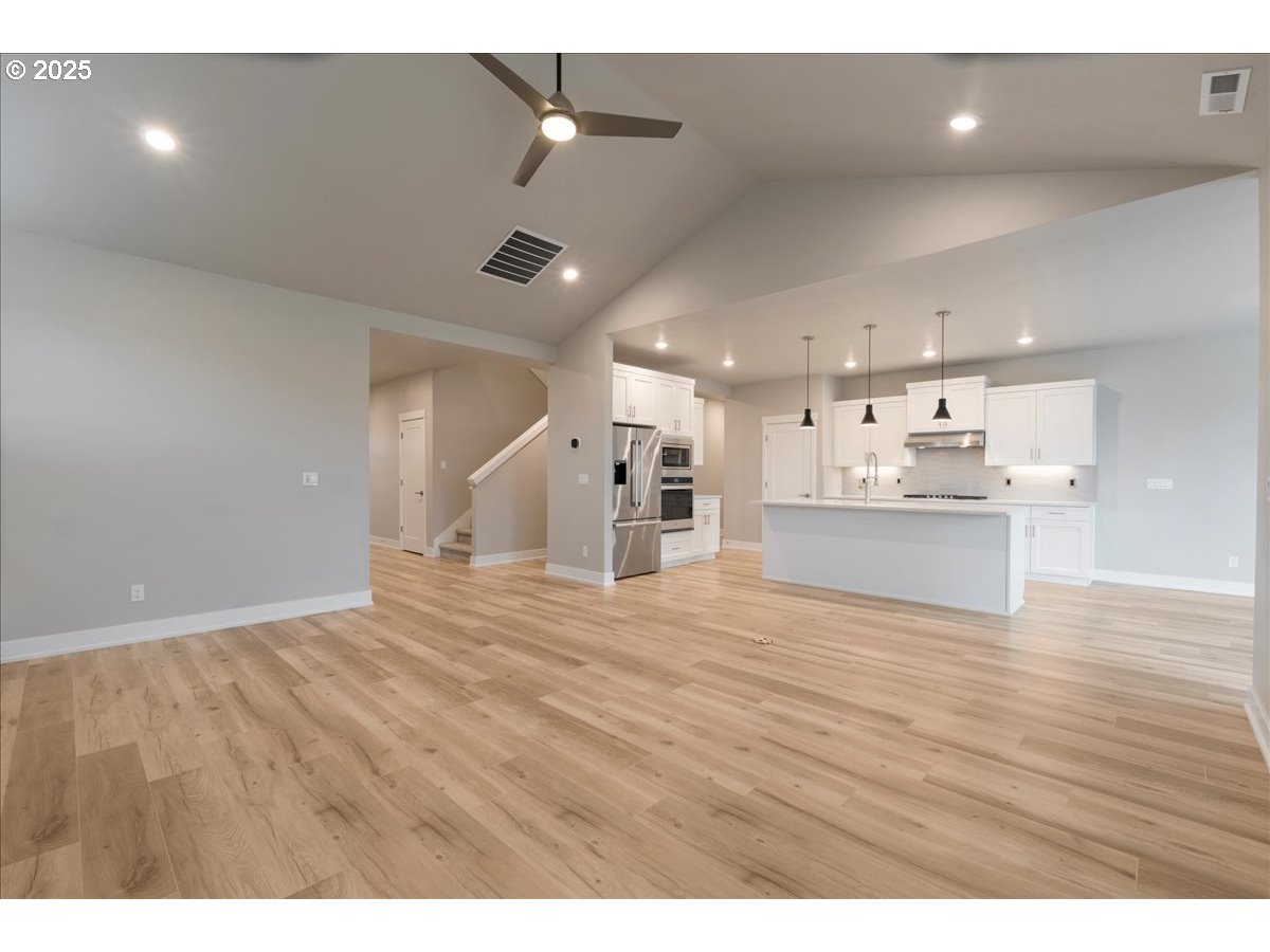 - Street of Dreams Builder Pahlisch Homes. 5bedroom 3 bath Custom built home with Master on the main+2bedrooms,2baths. 2bdrms up1 bath up. Gourmet Kitchen w/gas cooking. Quartz Counters, Fridge stays.Pantry. Great room style with high ceilings.Living rm w.fireplace & built-ins. oversize 3 car garage. Private, nicely landscaped fenced yard with deck. AC