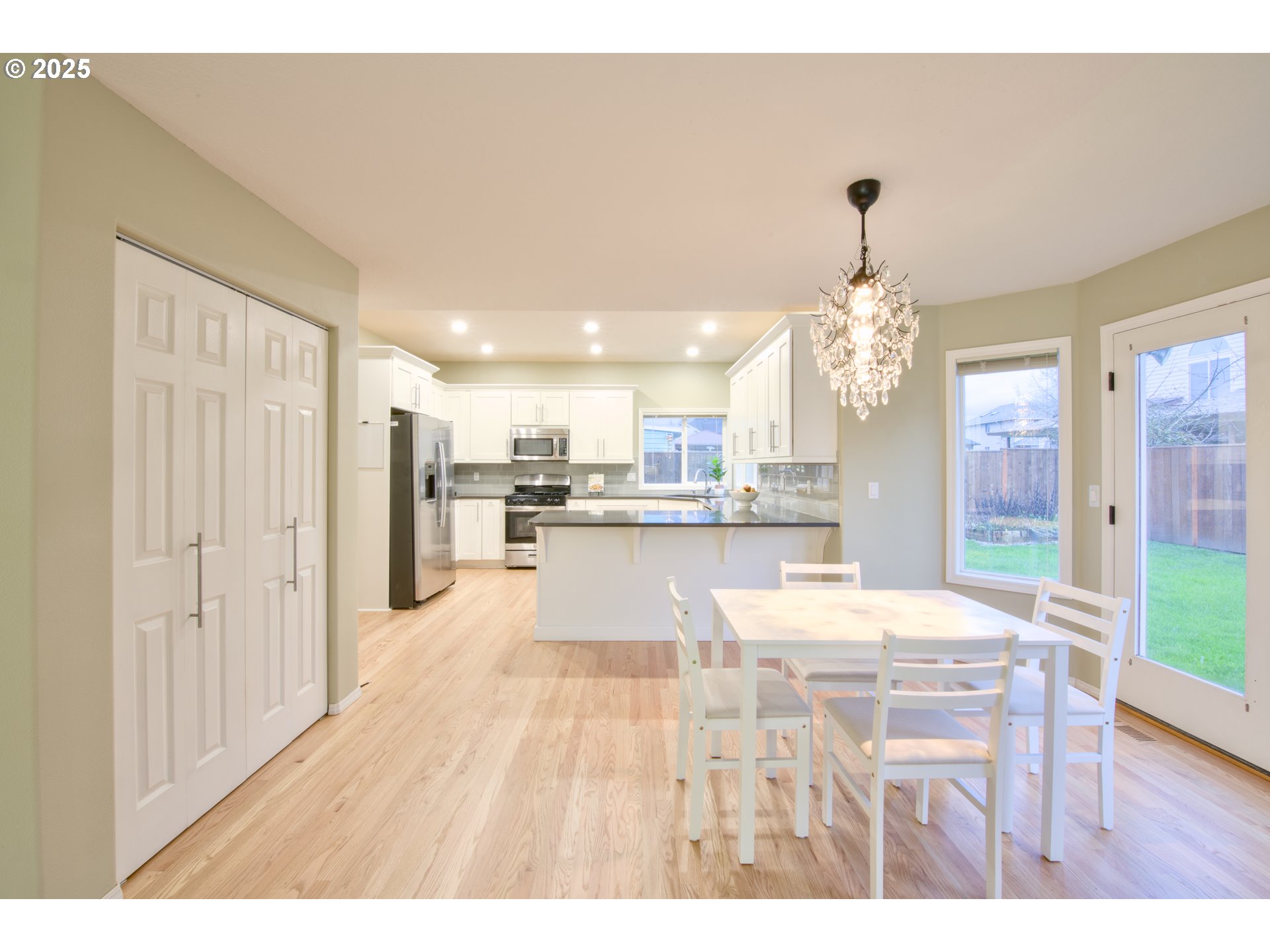 - Meticulously maintained and move-in ready, this 4 bedroom, 2.1 bath home offers 2,256 square feet of thoughtfully designed living space in the desirable Meacham Meadows neighborhood. Sitting on a 0.14 acre lot, the exterior features RV parking and a large, level backyard, perfect for everyday living and entertaining.The inviting entry welcomes you with hardwood floors that extend throughout the main level, stairs, and upper level. With 1,266 square feet on the main floor, the connected layout includes spacious living and dining rooms, an open family room, and large windows that fill the home with natural light.The remodeled kitchen is a true highlight, featuring soft close cabinetry, quartz countertops, a full height backsplash, under cabinet lighting, pull out drawers, two pantries, a built-in spice rack, and a cutlery drawer, blending style with exceptional functionality.Upstairs, the smart and welcoming floor plan offers four well sized bedrooms, all connected by hardwood flooring.Extensive updates include a new roof in 2019, new gutters, exterior paint, water heater, and garage opener in 2020. Major system upgrades in 2025 include new carpet, furnace, air conditioning, refinished hardwoods, a fully encapsulated crawlspace system, and a backyard French drain.With extensive updates already completed, this home offers peace of mind and effortless living for years to come.