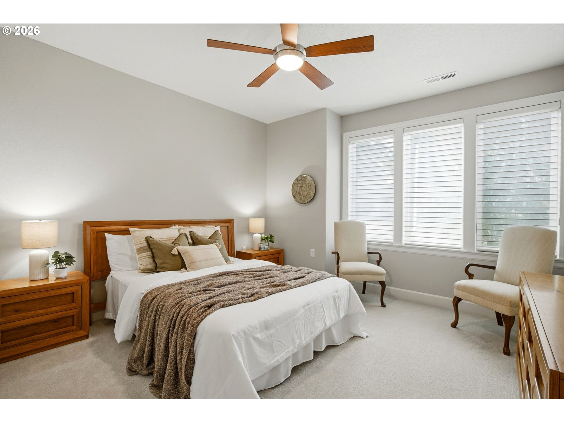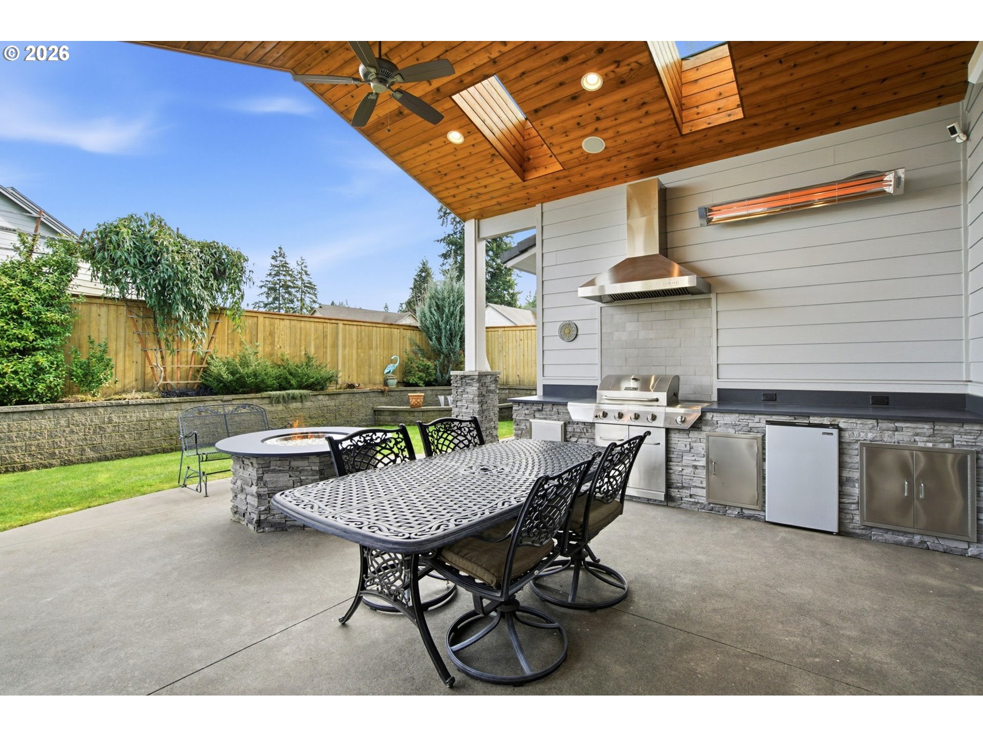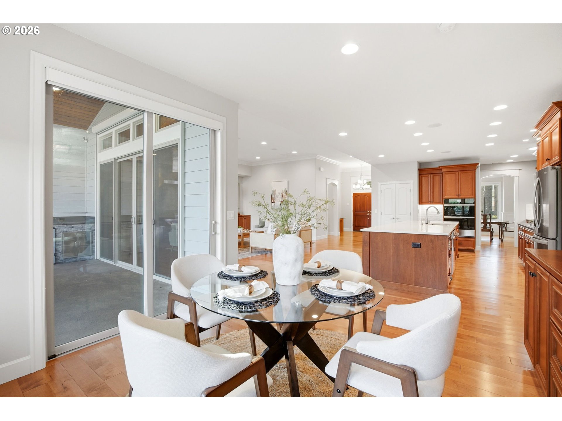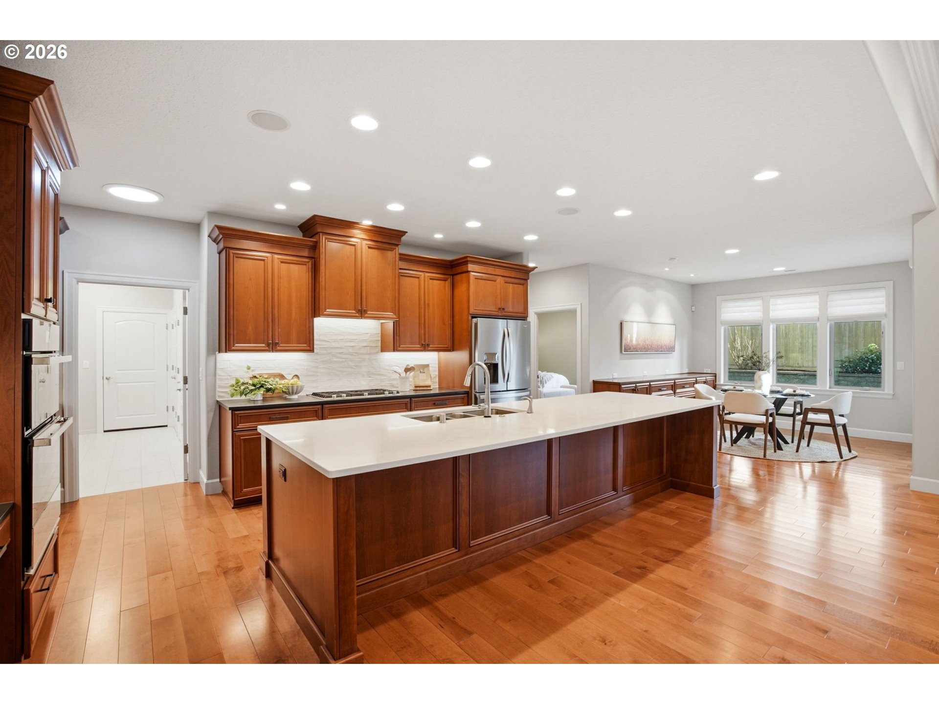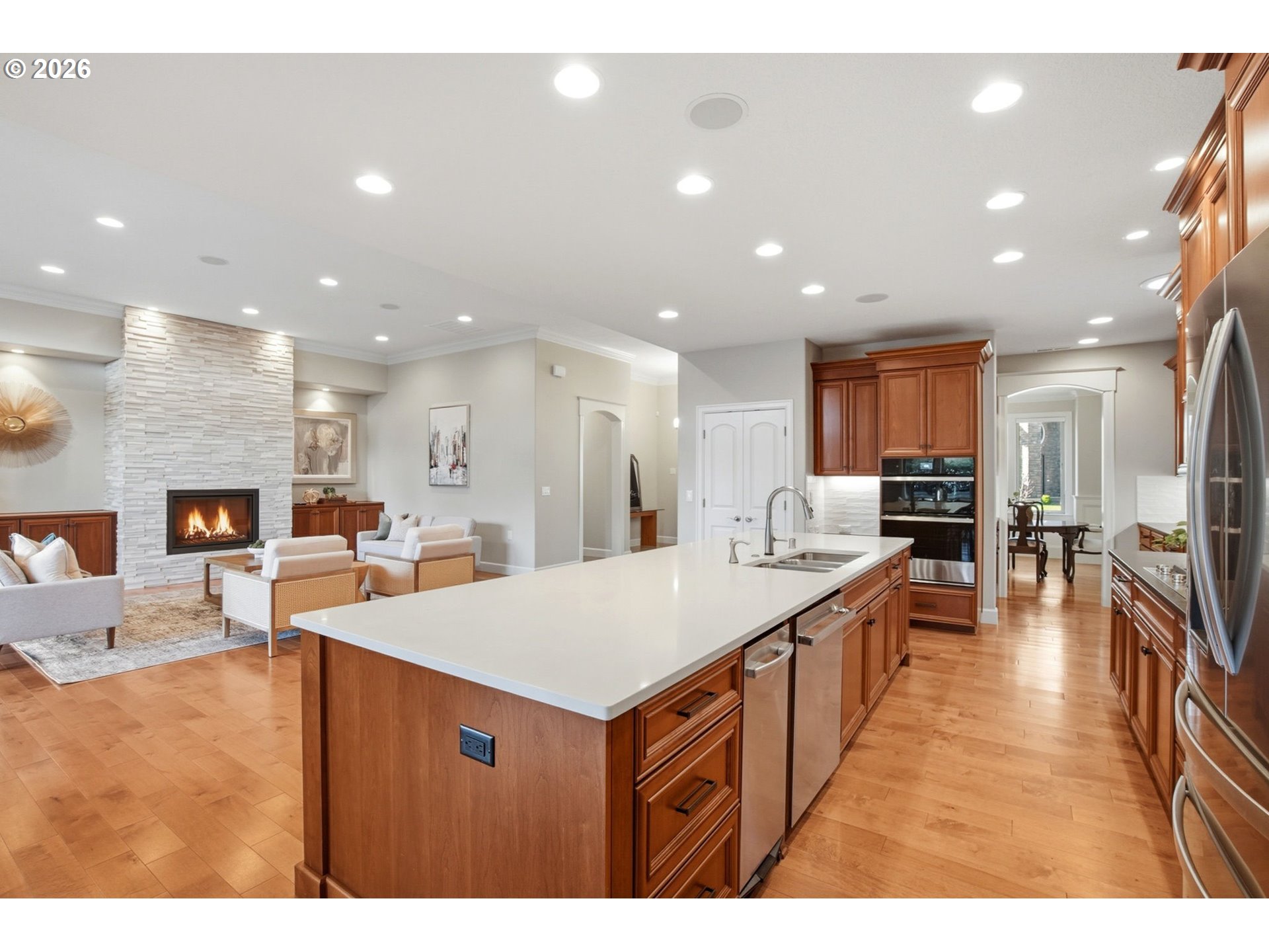 - No-step home! This custom built one owner single-story in popular First Place is tailored for aging in place. Experience refined living with exceptional functionality. 3 BD + office + 3 full BA. Designed for gathering, the spacious great room and well-appointed kitchen feature an impressive island that becomes the natural centerpiece of the home. The split bedroom layout provides separation between the primary suite and secondary bedrooms for increased privacy and quieter living spaces. Bdrm 2 has full bath just down the hall; bdrm 3 has adjoining full bath. Additional accessibility features include wide hallway, wide entrances, extra wide doors, roll in shower in primary, walk-in shower in hall bathroom. All rooms are large with most closets having motion sensor lighting including the walk-in pantry. Solar tubes bring in bright, diffused natural lighting. More highlights include: heated floors in primary bathroom, huge primary walk-in closet, generously sized laundry, slab granite and quartz, soft-close drawers/cabinets, two tankless water heaters, impeccable 3/4” hardwood flooring, abundant storage/closet space, built-in features, high ceilings, butlers pantry, under cabinet lighting, under eve lighting. Office/den with custom full-wall built-in desk designed for two. The large covered patio has remote/motorized shades, wood slat vaulted ceiling, skylights, fans, heaters and built-in fire pit (gas). Also featuring an outdoor entertaining station with built-in BBQ (propane), prep space, storage plus under counter refrigerator. 3 car garage with storage cabinets. Kitchen/patio refrigerators stay, Sonos sound system in great room included, 1-year home warranty included. Near the 3.5 acre neighborhood park featuring paved paths, benches, garden, gazebo, playground and open grass area. There are numerous resident-focused activities too. Conveniently located near groceries, restaurants, medical facilities, vet and easy access to I-205. Truly a standout home!