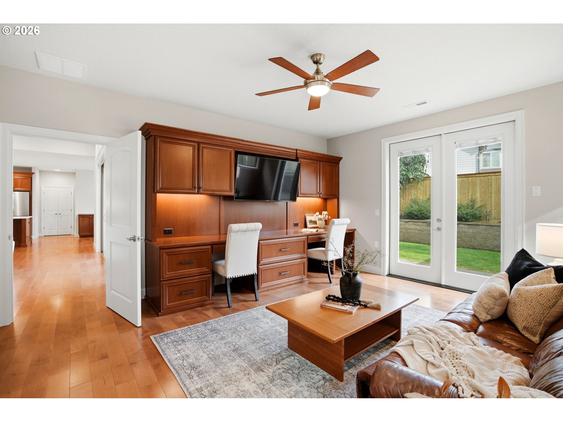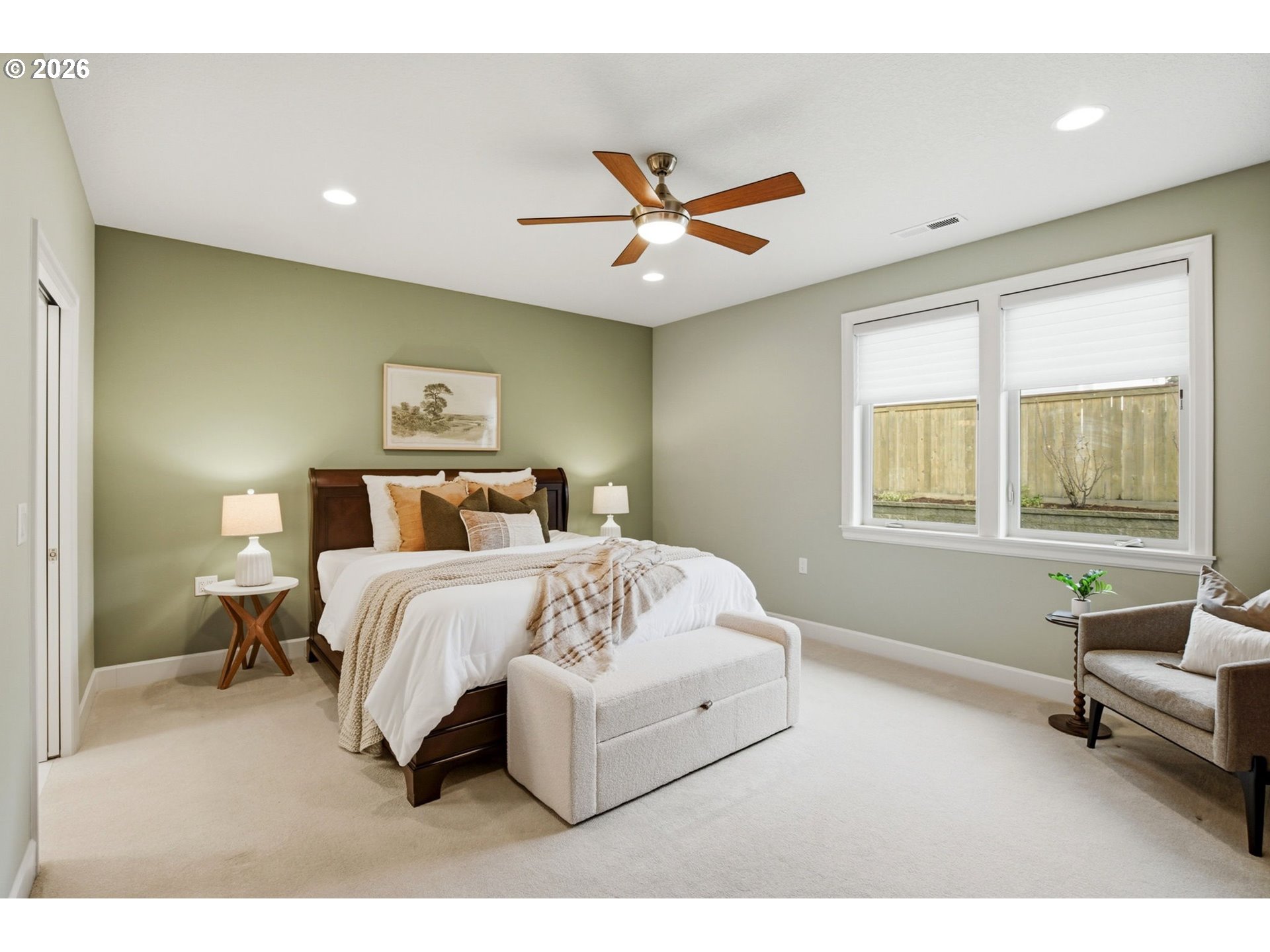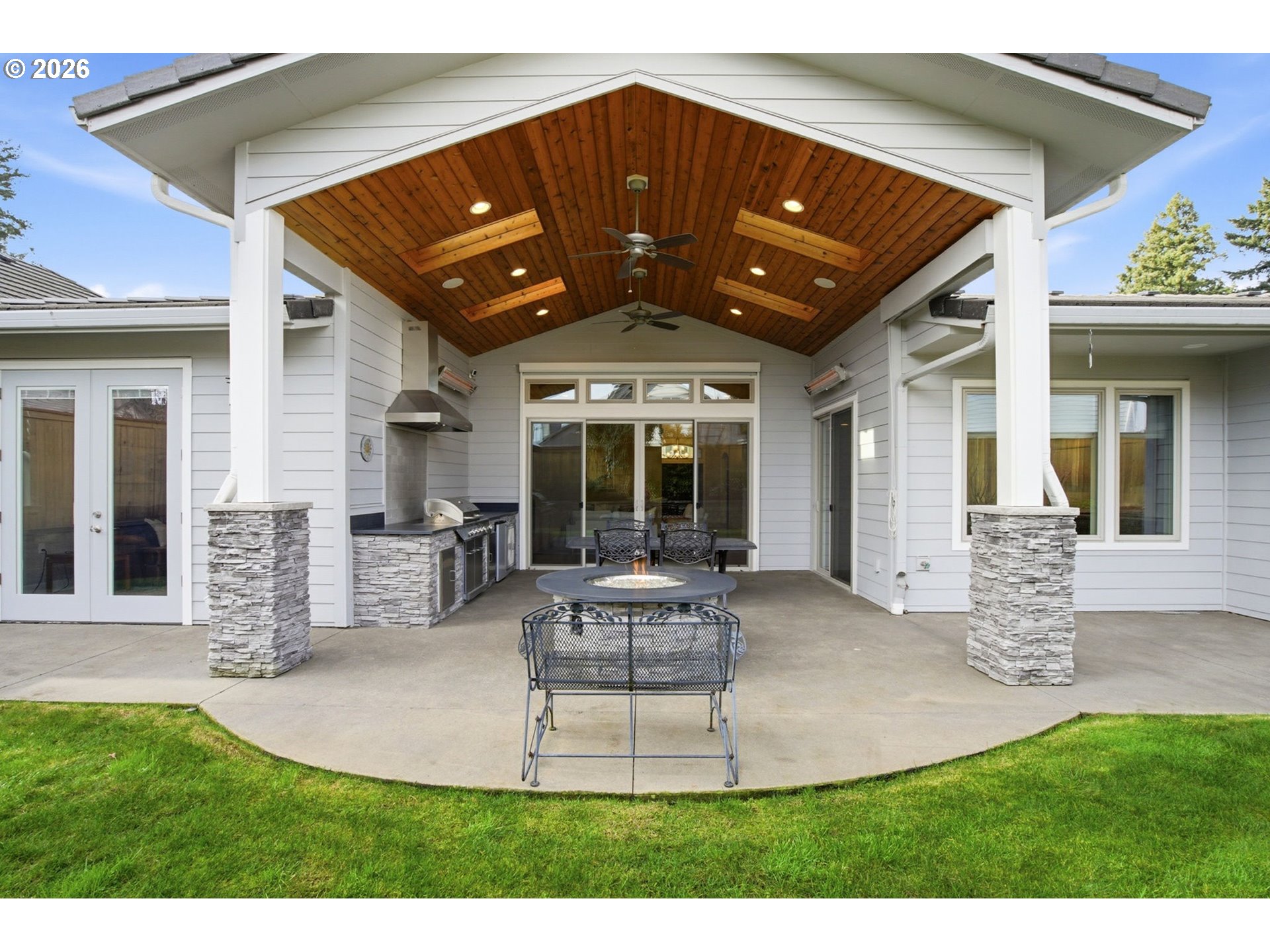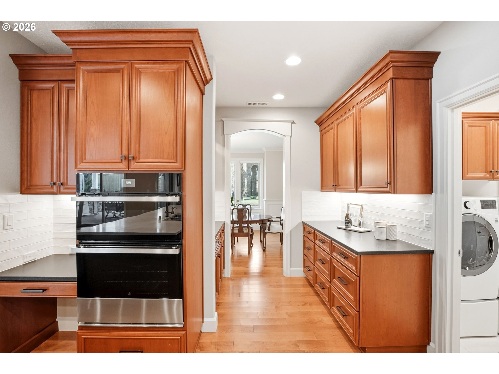 - No-step home! This custom built one owner single-story in popular First Place is tailored for aging in place. Experience refined living with exceptional functionality. 3 BD + office + 3 full BA. Designed for gathering, the spacious great room and well-appointed kitchen feature an impressive island that becomes the natural centerpiece of the home. The split bedroom layout provides separation between the primary suite and secondary bedrooms for increased privacy and quieter living spaces. Bdrm 2 has full bath just down the hall; bdrm 3 has adjoining full bath. Additional accessibility features include wide hallway, wide entrances, extra wide doors, roll in shower in primary, walk-in shower in hall bathroom. All rooms are large with most closets having motion sensor lighting including the walk-in pantry. Solar tubes bring in bright, diffused natural lighting. More highlights include: heated floors in primary bathroom, huge primary walk-in closet, generously sized laundry, slab granite and quartz, soft-close drawers/cabinets, two tankless water heaters, impeccable 3/4” hardwood flooring, abundant storage/closet space, built-in features, high ceilings, butlers pantry, under cabinet lighting, under eve lighting. Office/den with custom full-wall built-in desk designed for two. The large covered patio has remote/motorized shades, wood slat vaulted ceiling, skylights, fans, heaters and built-in fire pit (gas). Also featuring an outdoor entertaining station with built-in BBQ (propane), prep space, storage plus under counter refrigerator. 3 car garage with storage cabinets. Kitchen/patio refrigerators stay, Sonos sound system in great room included, 1-year home warranty included. Near the 3.5 acre neighborhood park featuring paved paths, benches, garden, gazebo, playground and open grass area. There are numerous resident-focused activities too. Conveniently located near groceries, restaurants, medical facilities, vet and easy access to I-205. Truly a standout home!