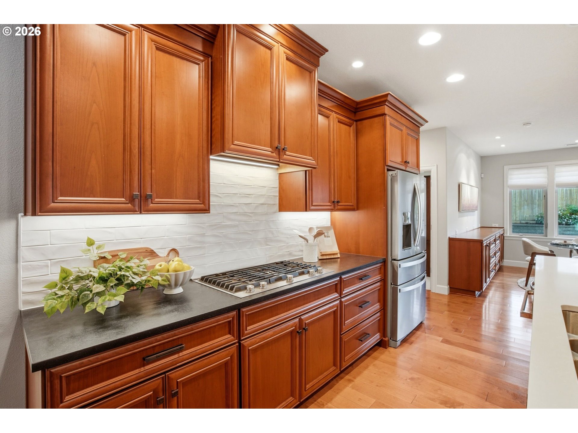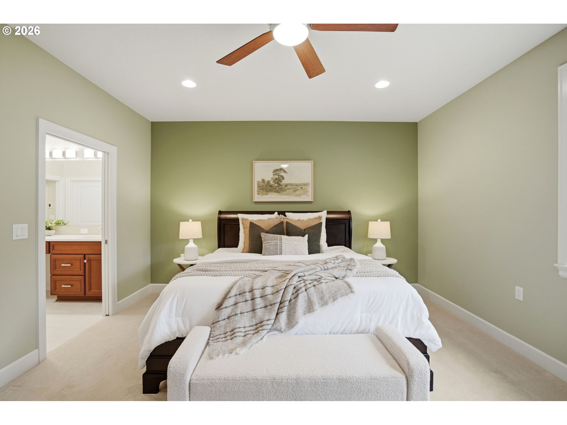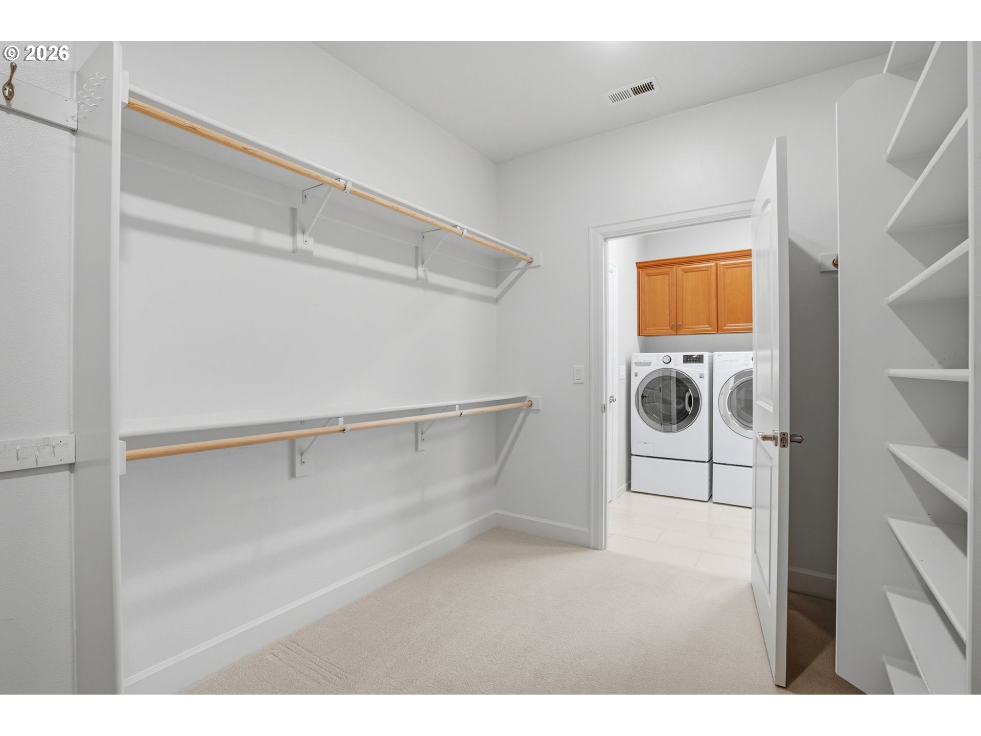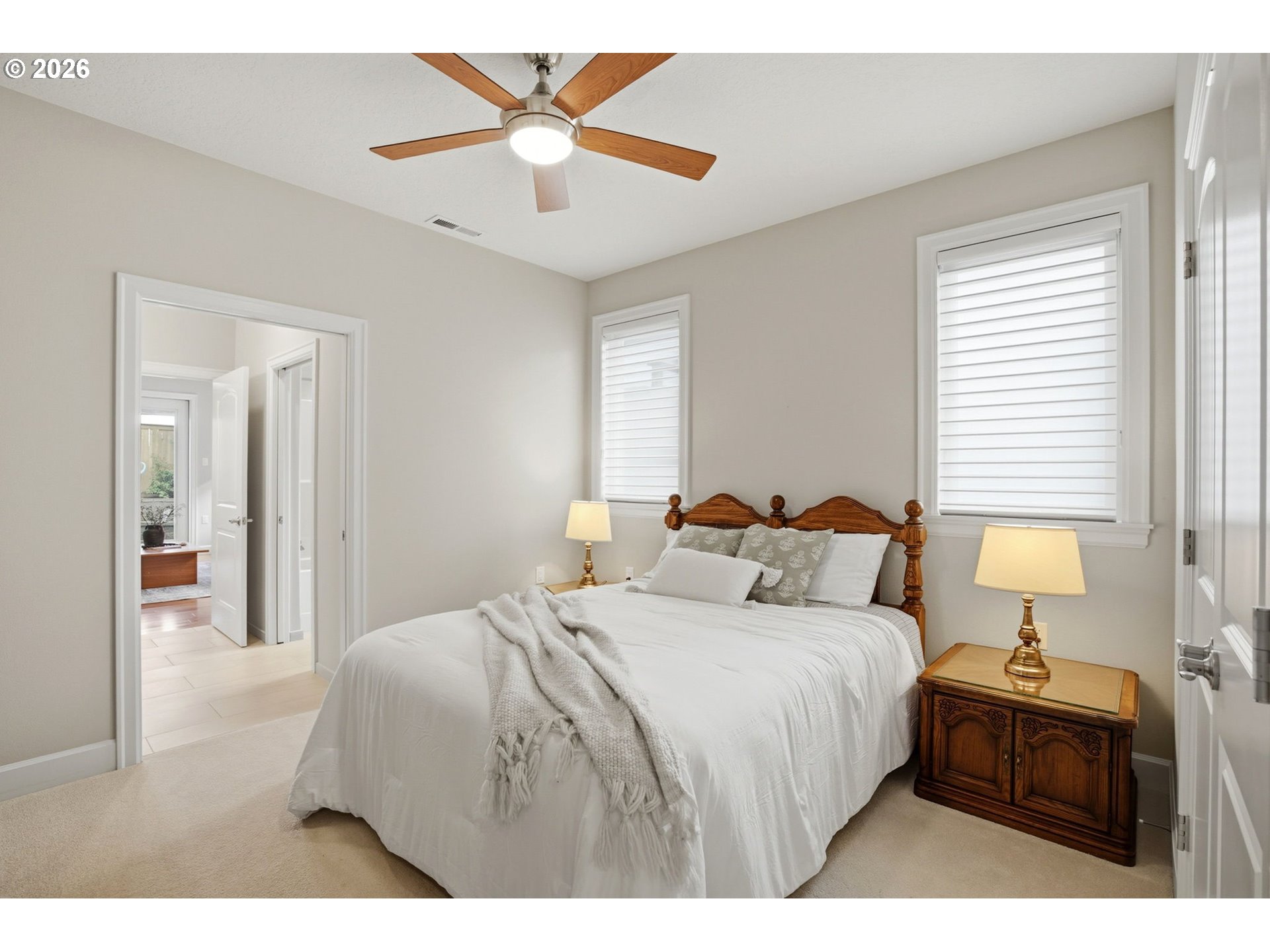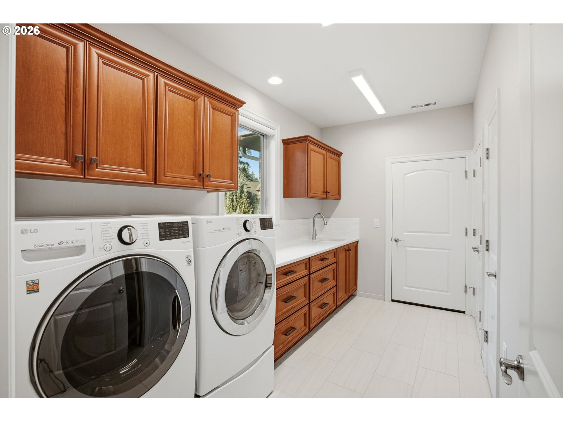 - No-step home! This custom built one owner single-story in popular First Place is tailored for aging in place. Experience refined living with exceptional functionality. 3 BD + office + 3 full BA. Designed for gathering, the spacious great room and well-appointed kitchen feature an impressive island that becomes the natural centerpiece of the home. The split bedroom layout provides separation between the primary suite and secondary bedrooms for increased privacy and quieter living spaces. Bdrm 2 has full bath just down the hall; bdrm 3 has adjoining full bath. Additional accessibility features include wide hallway, wide entrances, extra wide doors, roll in shower in primary, walk-in shower in hall bathroom. All rooms are large with most closets having motion sensor lighting including the walk-in pantry. Solar tubes bring in bright, diffused natural lighting. More highlights include: heated floors in primary bathroom, huge primary walk-in closet, generously sized laundry, slab granite and quartz, soft-close drawers/cabinets, two tankless water heaters, impeccable 3/4” hardwood flooring, abundant storage/closet space, built-in features, high ceilings, butlers pantry, under cabinet lighting, under eve lighting. Office/den with custom full-wall built-in desk designed for two. The large covered patio has remote/motorized shades, wood slat vaulted ceiling, skylights, fans, heaters and built-in fire pit (gas). Also featuring an outdoor entertaining station with built-in BBQ (propane), prep space, storage plus under counter refrigerator. 3 car garage with storage cabinets. Kitchen/patio refrigerators stay, Sonos sound system in great room included, 1-year home warranty included. Near the 3.5 acre neighborhood park featuring paved paths, benches, garden, gazebo, playground and open grass area. There are numerous resident-focused activities too. Conveniently located near groceries, restaurants, medical facilities, vet and easy access to I-205. Truly a standout home!