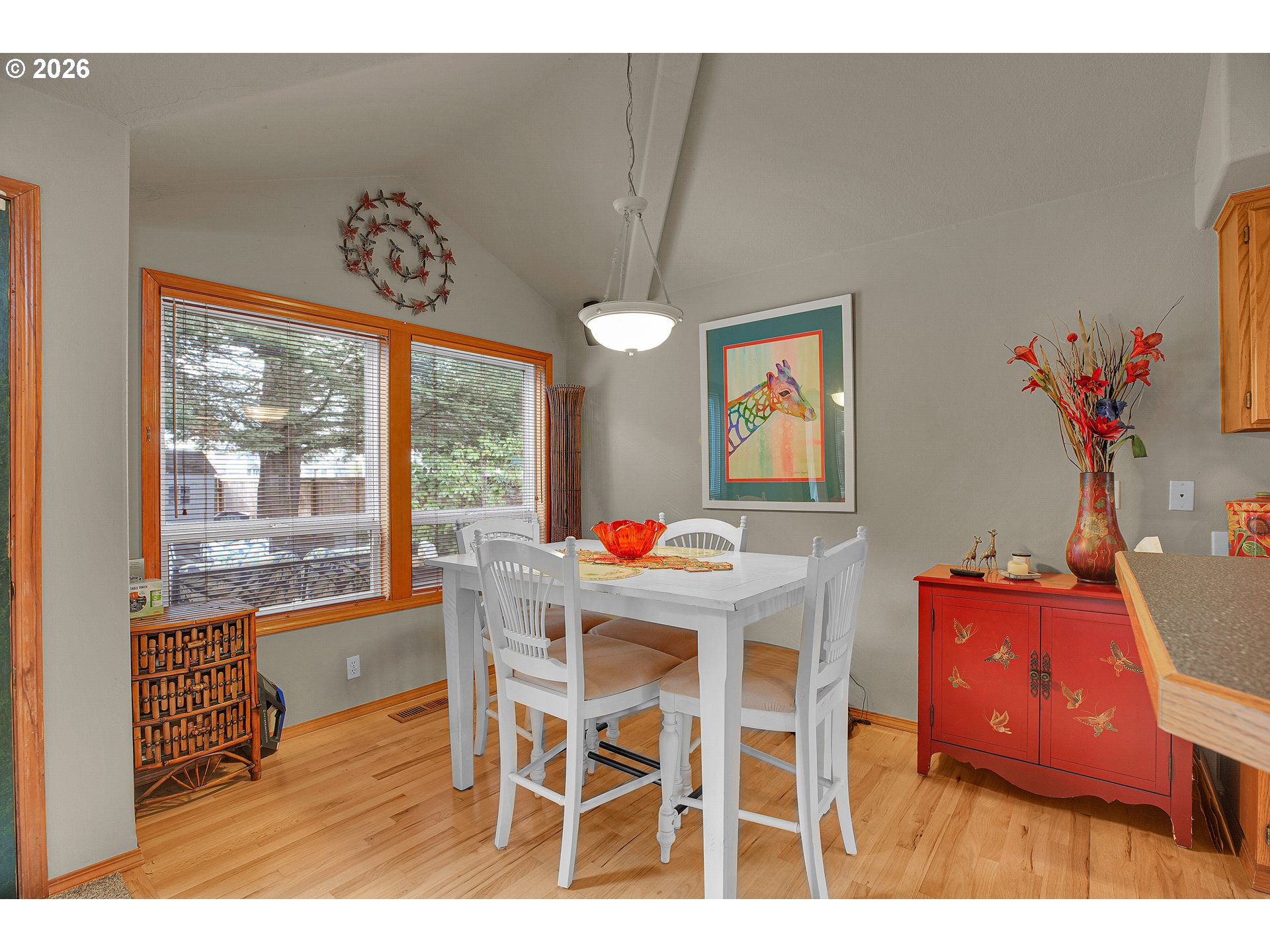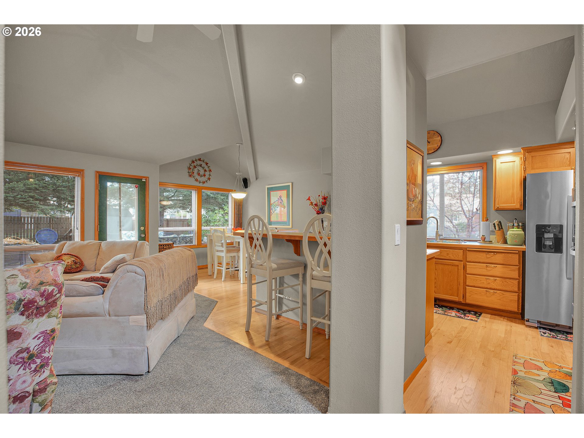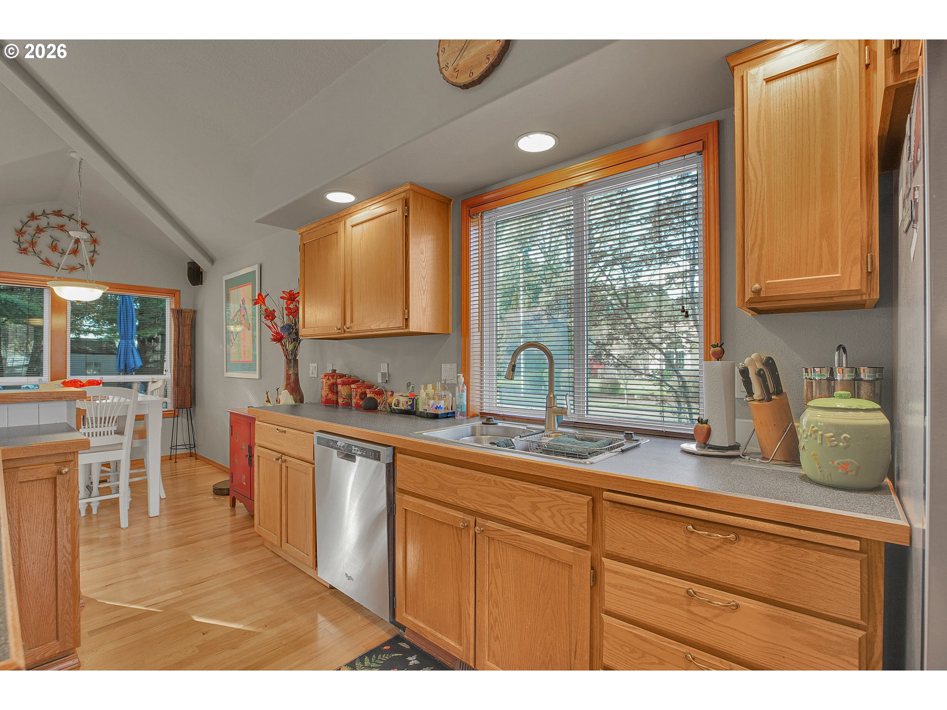 - Welcome to this beautifully crafted one-level home, thoughtfully designed with comfort in mind. Recent updates include a newer roof (2019), furnace, hot water heater and recent exterior and interior paint. The kitchen offers both style and functionality with a large kitchen island and built-in appliances. The rooflines create vaulted ceilings, and large, high-quality double-pane windows fill the home with natural light. The sizeable, deep backyard is perfect for gatherings, featuring a large patio and a newer storage shed. Located in a welcoming neighborhood with wide streets, this home blends small-community allure with easy access to all of Hillsboro. Close by, you will find Noble Woods Park, a 40-acre natural oasis with paved trails, forests, and plenty of wildlife. Nearby you will find top employers, shopping, restaurants, and all Hillsboro has to offer. [Home Energy Score = 7. HES Report at https://rpt.greenbuildingregistry.com/hes/OR10244215]