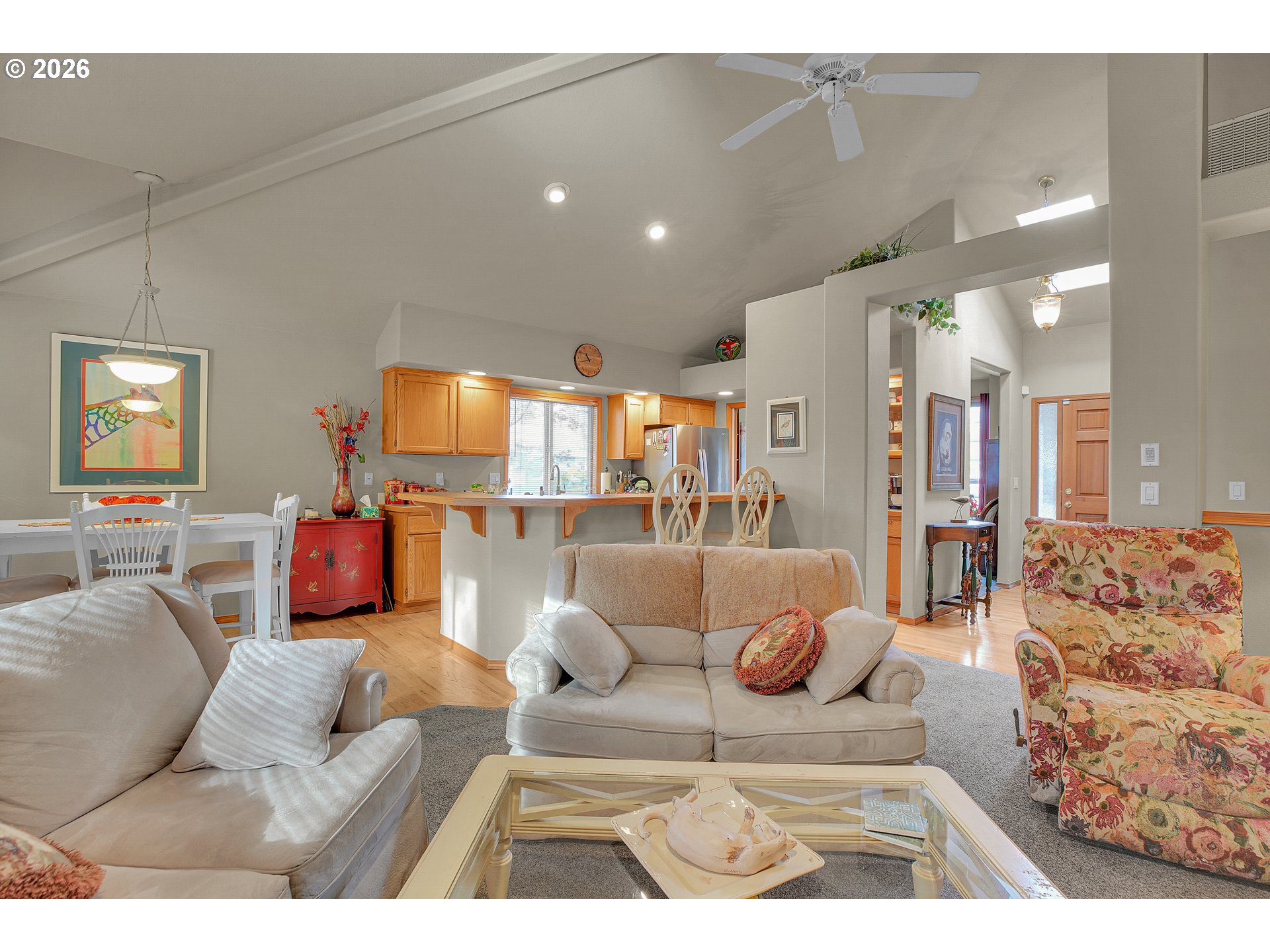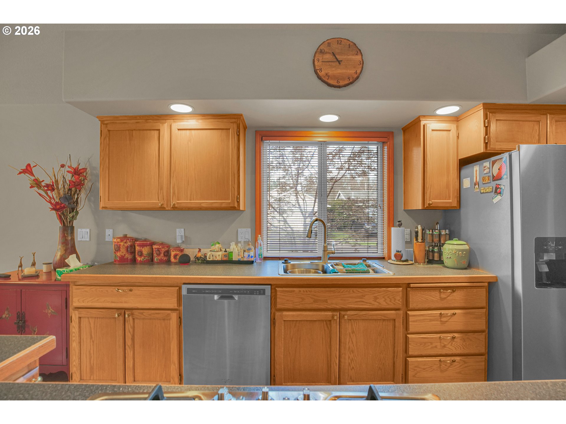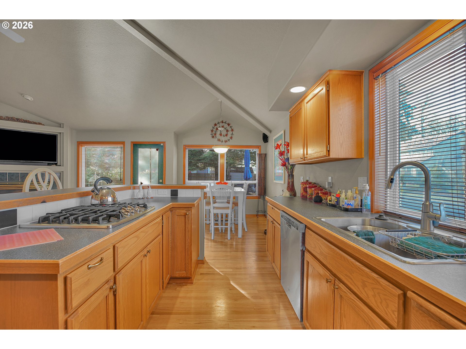 - Welcome to this beautifully crafted one-level home, thoughtfully designed with comfort in mind. Recent updates include a newer roof (2019), furnace, hot water heater and recent exterior and interior paint. The kitchen offers both style and functionality with a large kitchen island and built-in appliances. The rooflines create vaulted ceilings, and large, high-quality double-pane windows fill the home with natural light. The sizeable, deep backyard is perfect for gatherings, featuring a large patio and a newer storage shed. Located in a welcoming neighborhood with wide streets, this home blends small-community allure with easy access to all of Hillsboro. Close by, you will find Noble Woods Park, a 40-acre natural oasis with paved trails, forests, and plenty of wildlife. Nearby you will find top employers, shopping, restaurants, and all Hillsboro has to offer. [Home Energy Score = 7. HES Report at https://rpt.greenbuildingregistry.com/hes/OR10244215]