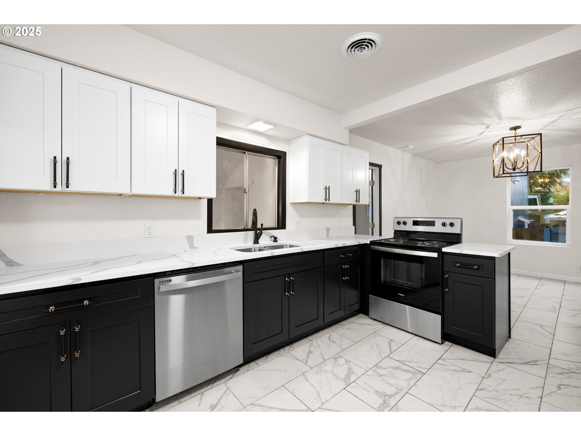 - A gem in the lents neighborhood this 4 bedroom, 2 bathroom home is the epitome of Portland! Step into a cozy living space that has been remodeled and ready for a new owner. Beautiful 2 tone cabinetry and quartz countertops in the kitchen, laminate flooring in the living area along with tile flooring in the bathrooms and kitchen. One bedroom on the main floor for ease of access. Walk downstairs to the other 3 bedrooms, 1 bathroom and another living space.