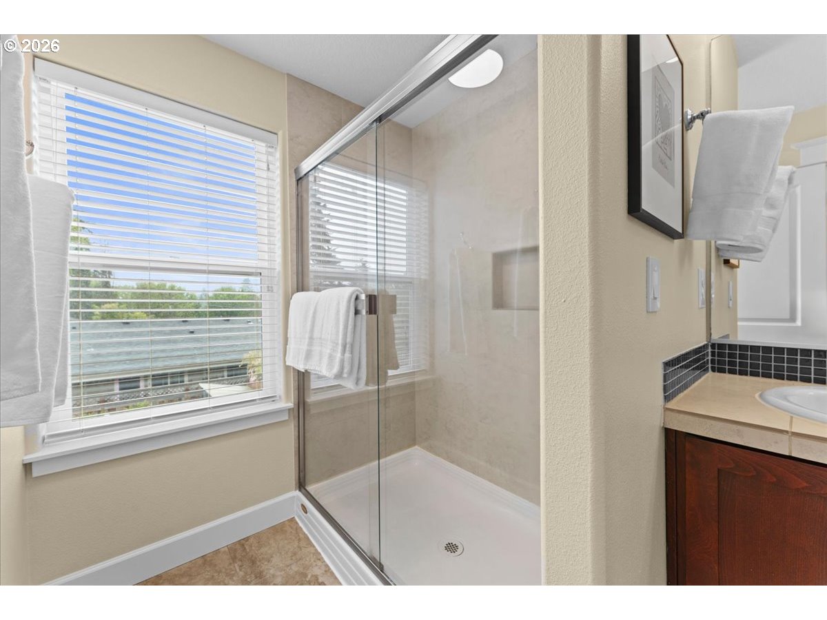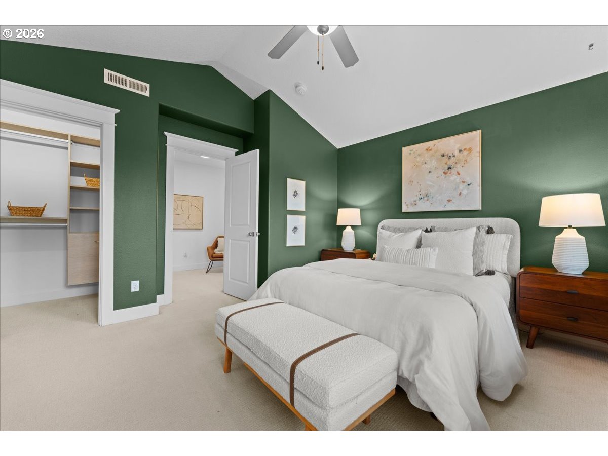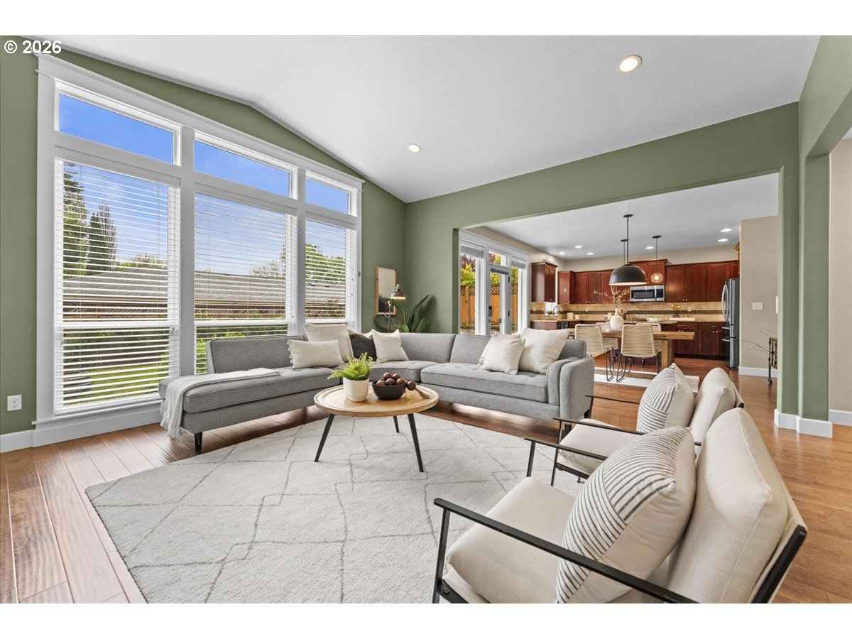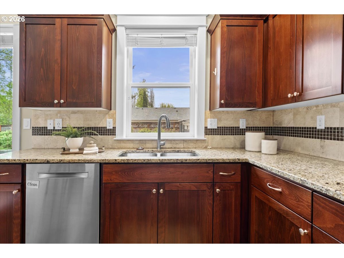 - Welcome to this well-maintained Craftsman in the heart of St. Johns, offering a thoughtful blend of comfort, functionality, and modern efficiency. Built in 2013, this 3-bedroom, 2.5-bath home features 2,112 square feet of living space with a layout designed for everyday living and easy entertaining.—The main level offers an open-concept kitchen, dining, and living area with vaulted ceilings, a wall of windows, and a cozy fireplace with built-ins. The kitchen is equipped with granite counters, gas appliances, an island, and ample storage, all connecting seamlessly to the main living spaces. A dedicated office with French doors provides flexibility for work or hobbies, along with a convenient half bath and direct access to the backyard.—Upstairs, you’ll find all three bedrooms, including a spacious primary suite with vaulted ceilings, a walk-in closet, and double sinks. The additional bedrooms are well-sized and share a full bath, creating a comfortable and functional upper level.—Outside, the fully fenced yard features a patio, irrigation system, and a chicken coop, offering space for gardening, outdoor living, or small-scale urban homesteading. Additional highlights include central A/C, solar panels, Smart Home features, and a two-car attached garage.—The home sits on a level lot with a welcoming front approach and a clean, well-kept exterior that reflects pride of ownership throughout. Inside, the combination of engineered hardwoods, natural light, and thoughtful finishes creates a warm, comfortable environment that feels both open and grounded.—St. Johns offers a unique blend of neighborhood charm and everyday convenience. From the iconic St. Johns Bridge and Cathedral Park to local shops, coffee spots, restaurants, and seasonal events, there’s a strong sense of place here. You’ll also appreciate easy access to nearby trails, riverfront areas, and major routes connecting you to the rest of Portland. [Home Energy Score = 8. HES Report at https://rpt.greenbuildingregistry.com/hes/OR10190977]