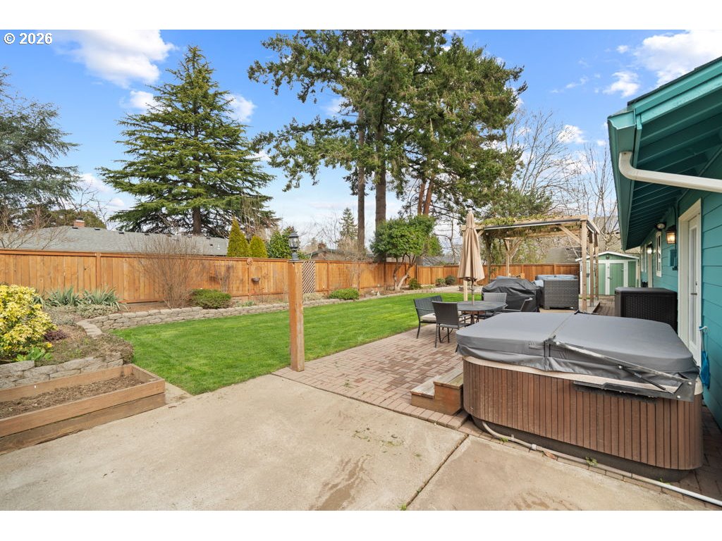- Deck, Fenced, Fire Pit, Free-Standing Hot Tub, Garden, Patio, RV Parking, Tool Shed, Yard