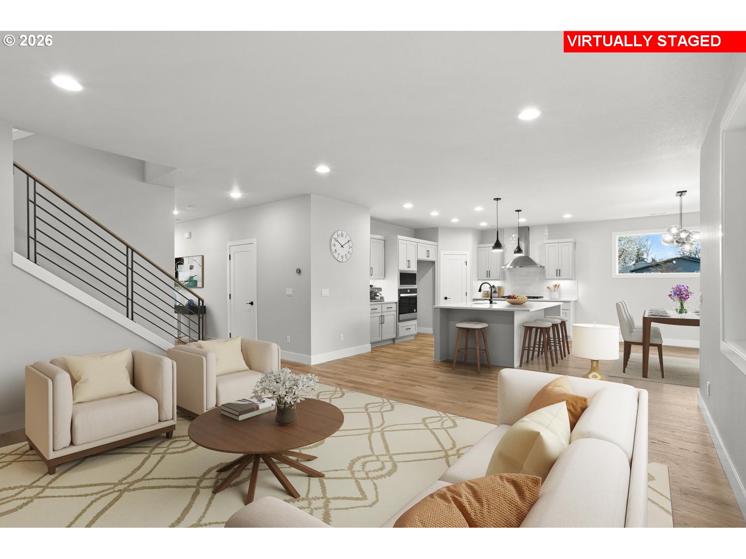 See a sales rep about our current rate buydown promo! This Farmhouse features 3 bedrooms up, with a den/4th bedroom on the main floor. Enjoy the spacious great room and gourmet kitchen with a large walk-in pantry and stainless-steel Whirlpool appliances. Enjoy the serenity the green tract behind this property has to offer on your huge covered rear patio. The primary suite features a soaking tub, full tile shower, dual vanities, and 2 large walk-in closets. Tour this plan today!