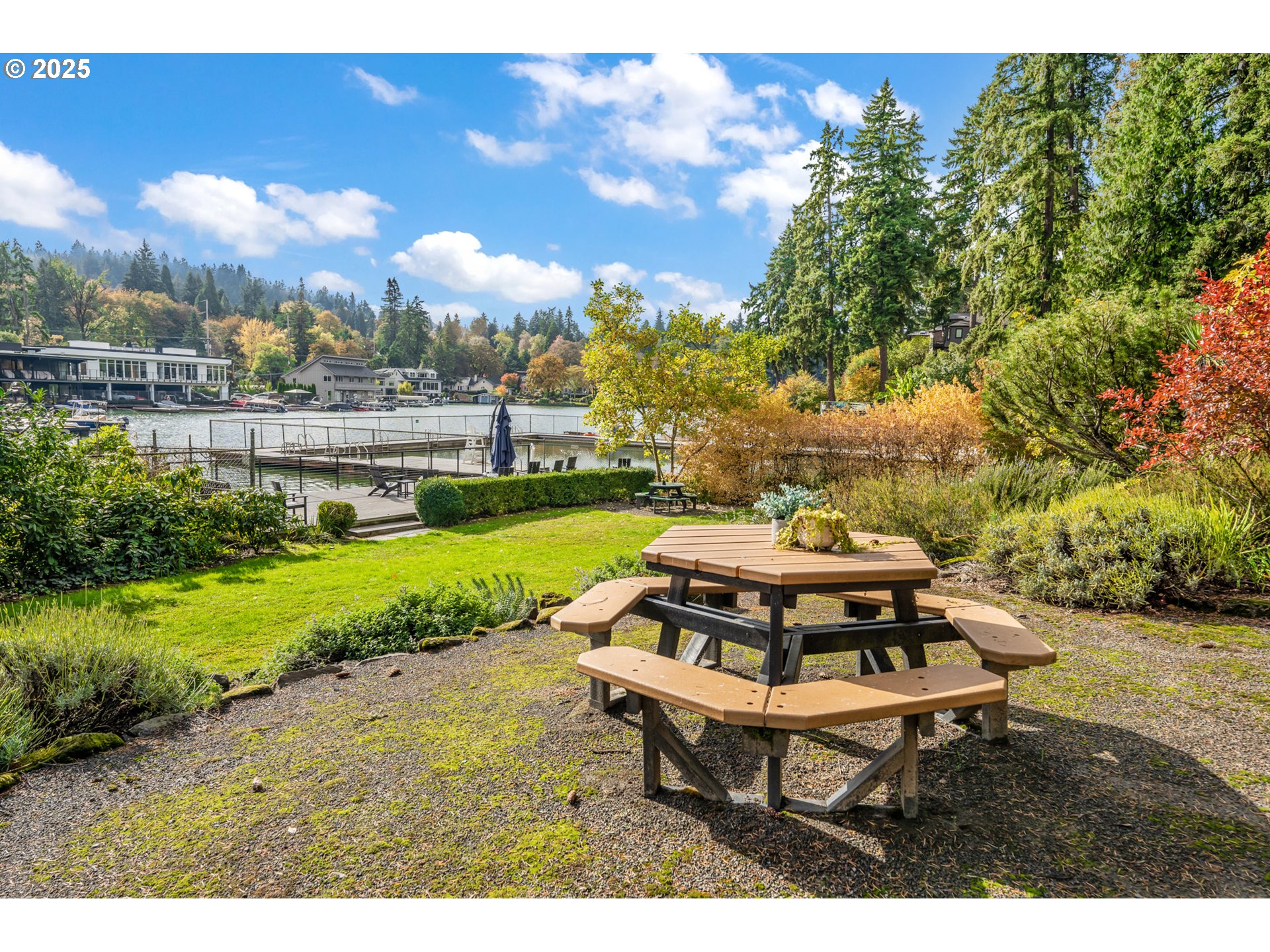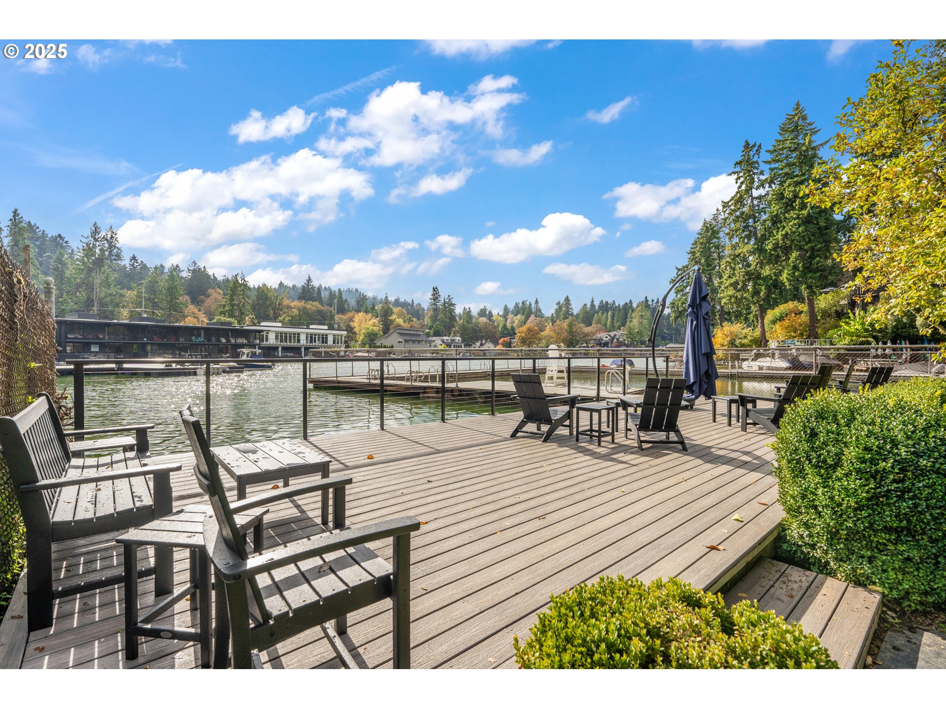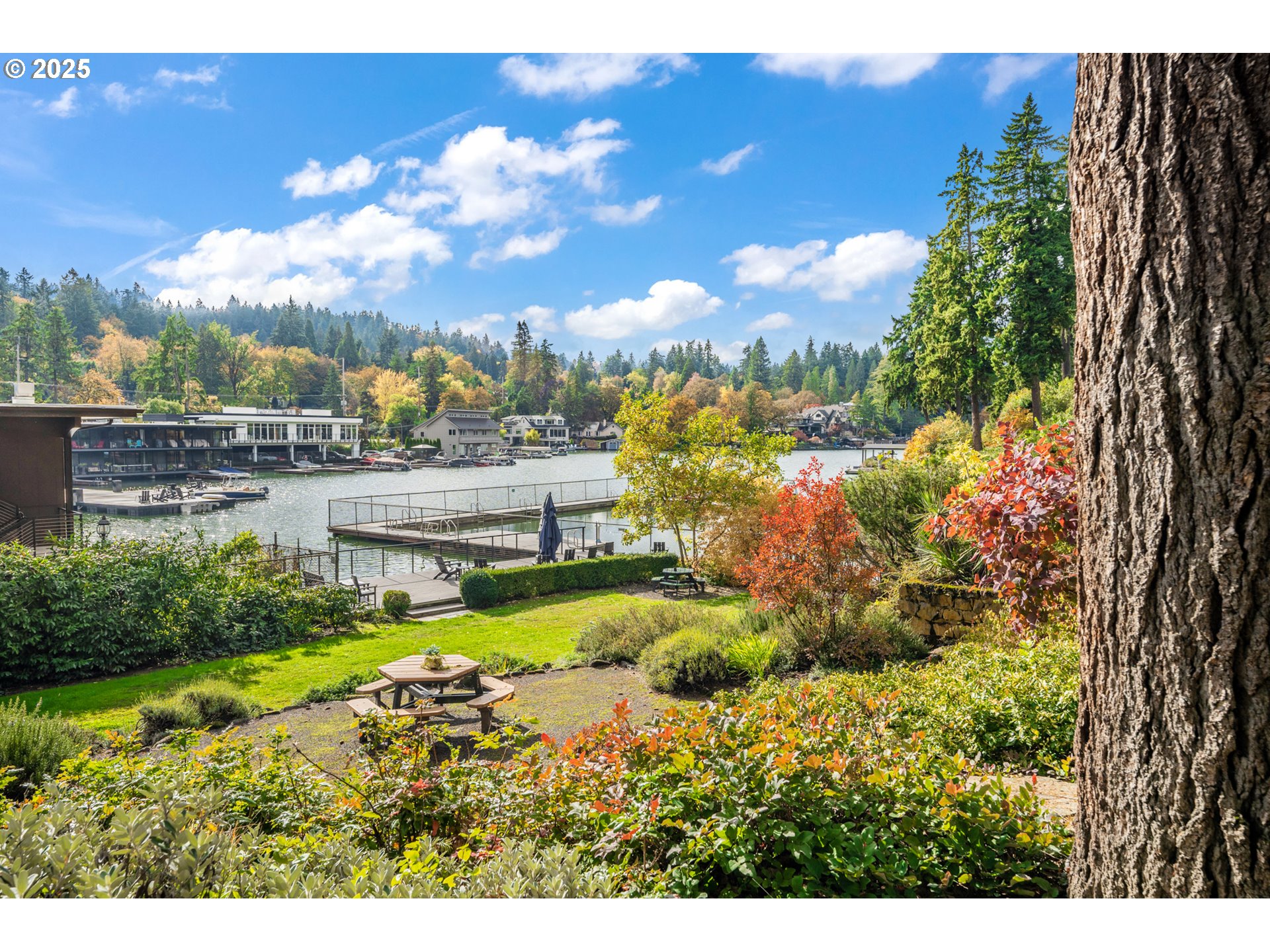 - You don't have to be a millionaire to live on the lake! Easy, breezy, fully-remodeled condo in the heart of Lake Oswego. Enjoy the natural beauty in this turnkey, one bedroom unit. Or, convert the dining room back to a second bedroom. Inside you'll find a spacious living room with gorgeous LPV flooring throughout, natural light, an electric fireplace, and spectacular views of the lake. The kitchen has been updated with granite countertops and subway tile. Additional cabinetry in the dining room is perfect for storing everything for entertaining. A gorgeous remodeled bathroom has a charming vanity with quartz countertop and a pristine tub for soaking or showering. The serene bedroom has a small electric stove. Dare I say romance? A covered porch with new decking allows you to enjoy peace lakeside all year long. Since you're just minutes from downtown Lake O, no need for a car! Amenities include fabulous shops and grocery stores, terrific food (tacos, croissants and ice cream, anyone?) and places to grab your morning coffee and an evening nightcap. Come summertime, concerts, art shows, and the farmer's market will keep you out-and-about! The HOA fees are low and the Seller took care of the most recent assessment which provided a new roof, drains and gutters; new decking on your private patio to enjoy your view; brick restoration, new windows and screens; a common deck and deck furniture; plus a remodeled bathroom and new flooring. Whether you're looking for a quiet retreat to combat a mad, mad world or a pied-a-terre to visit the grandkids, this gem is an amazing value! Seller is open to selling this unit completely furnished.