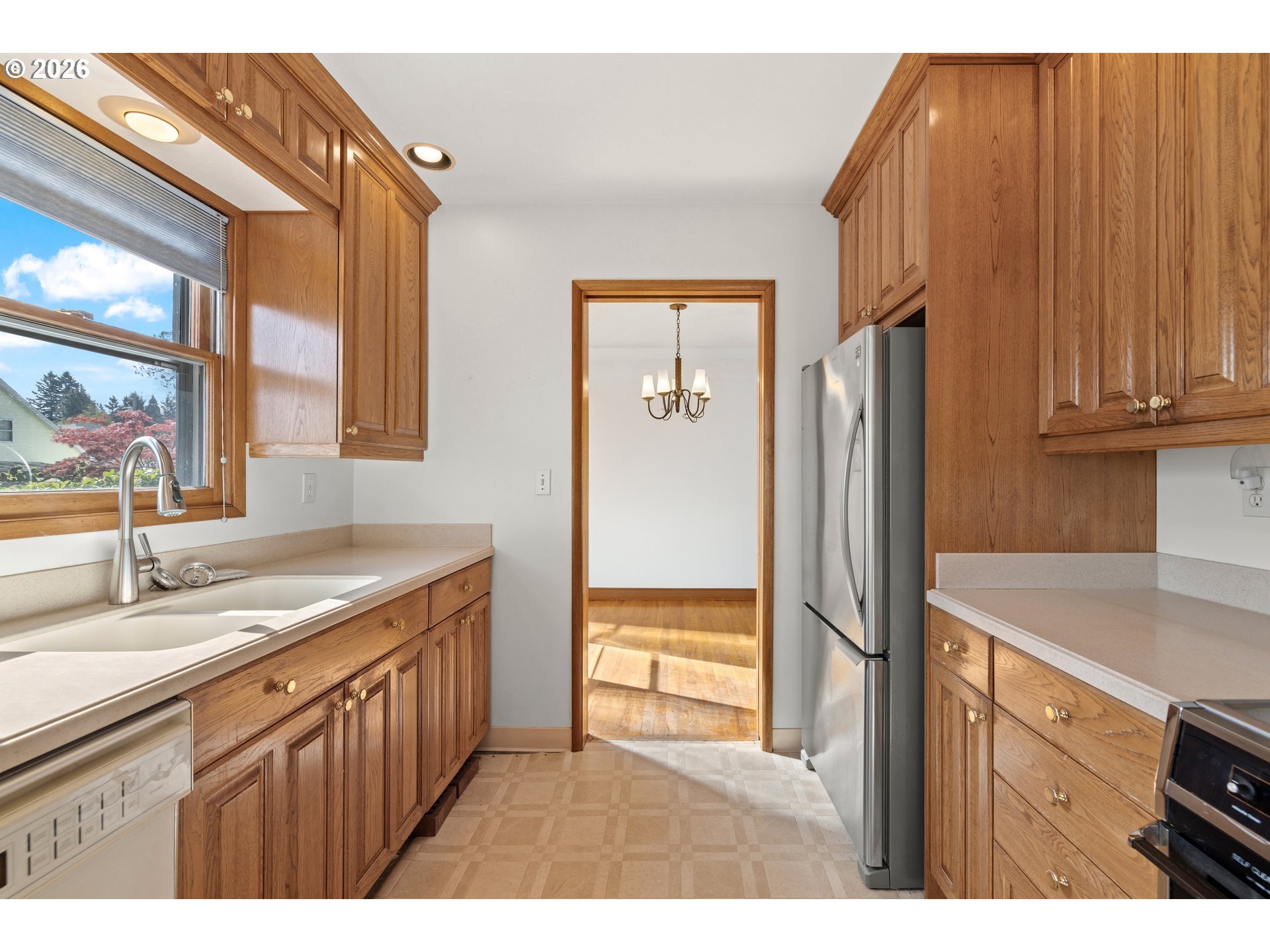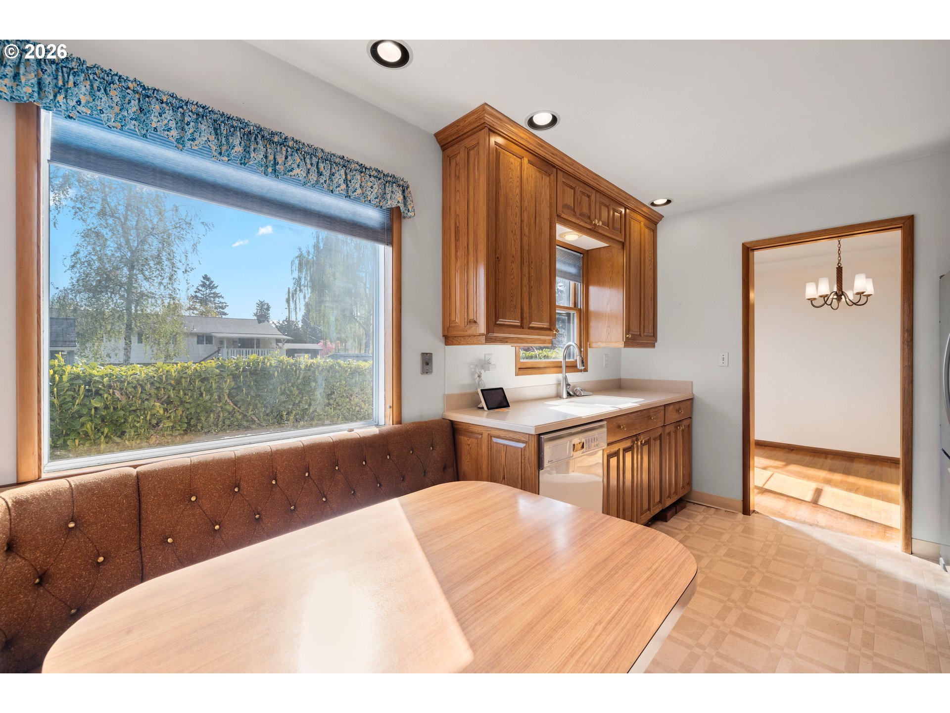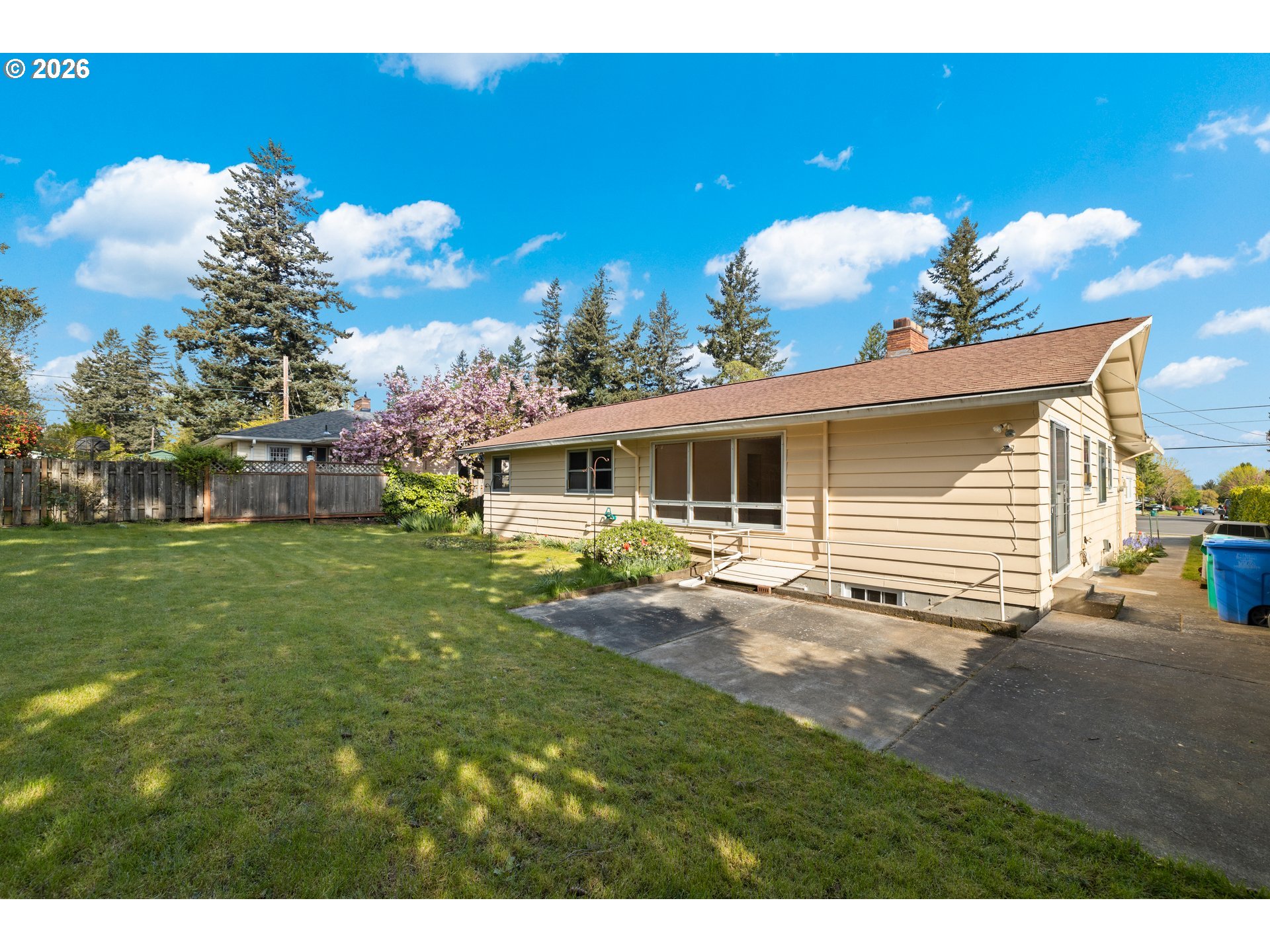 - Mid-Century Modern charm meets move-in potential in this bright, well-built home that is perfect for buyers looking for a stylish canvas to make their own. Sunlight pours through expansive living and dining room windows, highlighting original oak hardwood floors, rich wood doors, and unblemished mid-century moldings that all speak to quality construction and timeless design. Three generous bedrooms and two full baths give you comfortable everyday living with a cozy eating nook and half bath off the kitchen and a formal dining room that’s ideal for dinner parties and weekend brunches. Two wood-burning fireplaces, one tucked behind the temporary built-in bookshelf in the living room and a second anchoring the oversized lower-level family room, adding instant character and a warm, welcoming focal point. Downstairs, the finished basement expands your options: a non-conforming bedroom (no egress window), a full bath, a large family room w/private outside entry that connects you directly to the backyard. An additional bonus room in this flexible space is a dream for any home office, creative studio, rental income opportunity, fitness room, a media or game lounge — renovate it to suit your lifestyle. The spacious backyard is fenced on three sides and ready for summer gatherings, morning coffee, or a game of volleyball. This property needs light cosmetic updates — refinishing the hardwoods, refreshing paint, and modernizing the bathrooms — will instantly reward with increased value and standout curb appeal. Original, unblemished woodwork and strong bones make this an excellent opportunity to blend classic mid-century detail with contemporary finishes. Situated near shopping, dining, Glendoveer Golf Course, and scenic walking paths, the location supports an active, convenient lifestyle. Whether you’re planting roots or building equity, this home offers a rare combination of character, space, and upside — bring your vision and update it to shine.