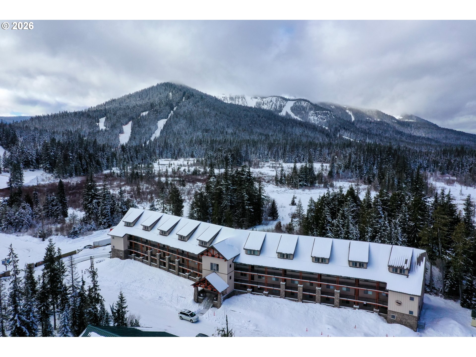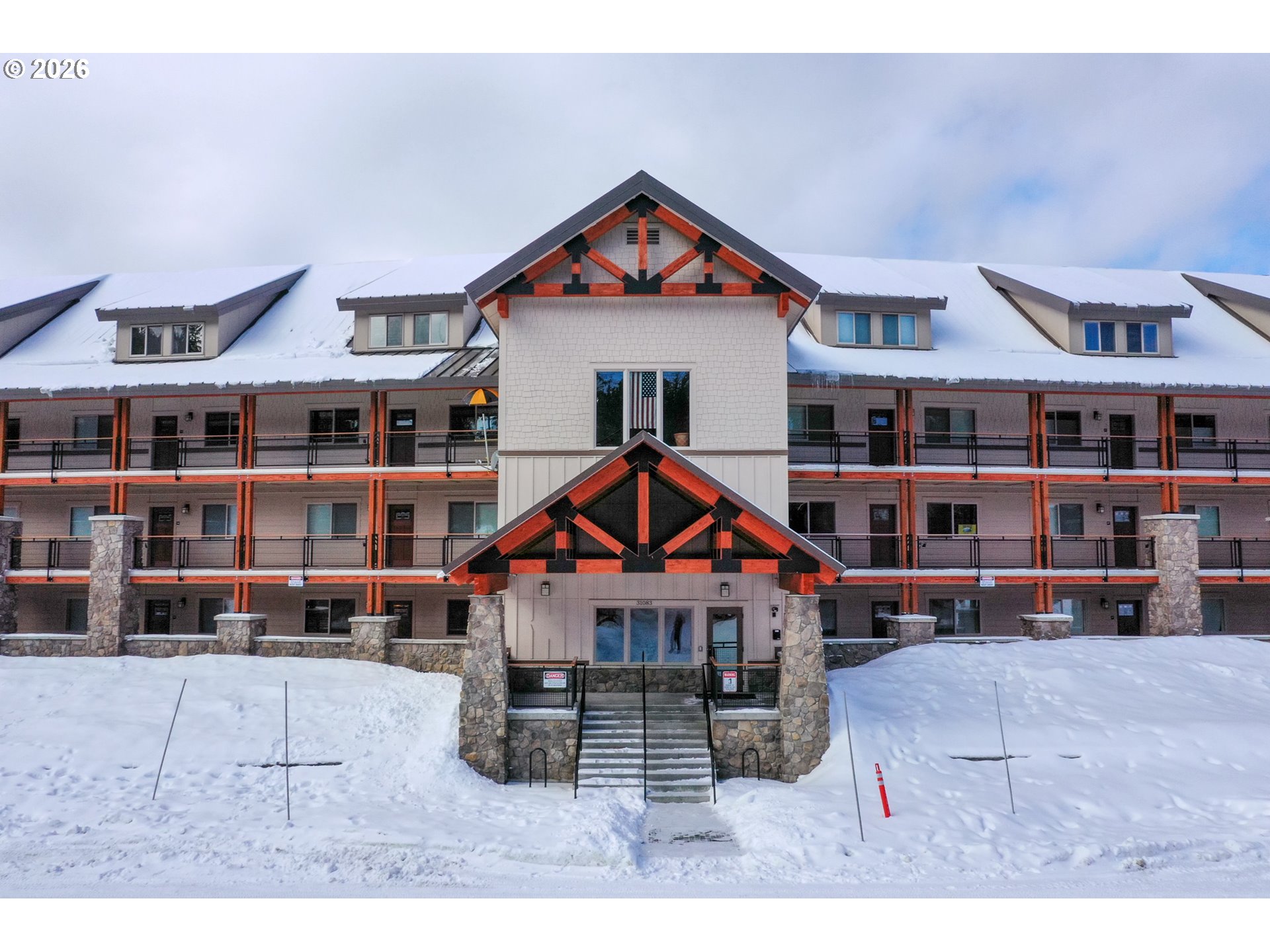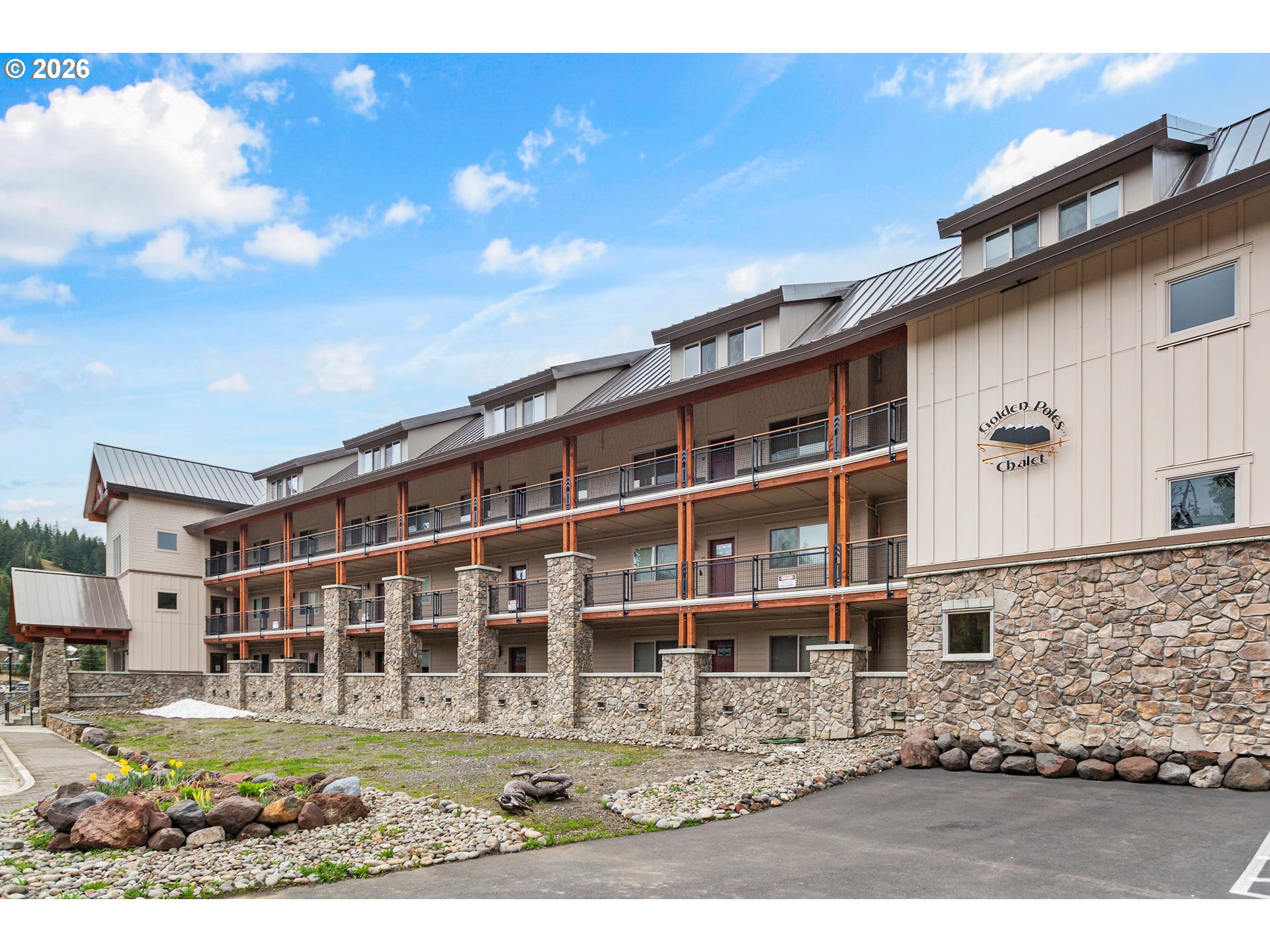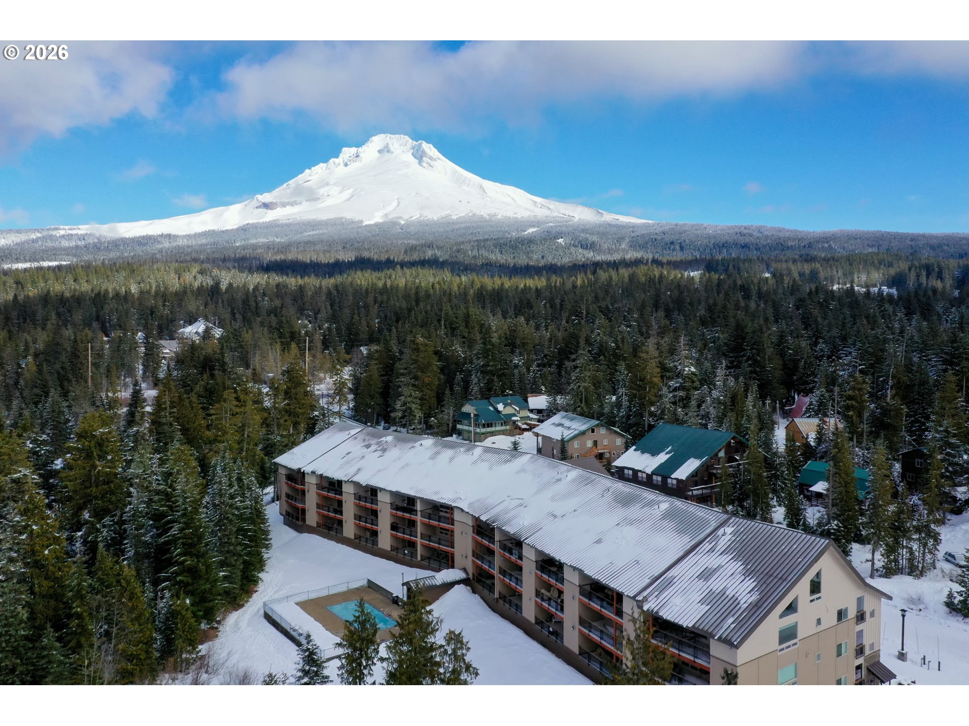 - Experience mountain living at its finest in this spacious chalet-style condo nestled in the heart of Government Camp—just moments from some of the Pacific Northwest’s premier year-round recreation.This beautifully finished 4-bedroom, 3 full bathroom retreat offers the perfect blend of comfort, space, and alpine charm. The primary suite is a true sanctuary, featuring a stunning en-suite bathroom with a large walk-in shower—perfect for relaxing after a day on the slopes.The expansive main living area showcases soaring ceilings accented by massive exposed wooden beams, creating a dramatic and inviting alpine aesthetic. A cozy gas fireplace anchors the space, making it ideal for gathering and entertaining. The kitchen and dining area are equally impressive, highlighted by custom pendant lighting and a massive eat-up island—perfect for hosting friends and family.The upper loft features two additional bedrooms and a full bathroom, offering flexible accommodations for guests or larger groups.Step outside to the covered deck and take in breathtaking views of this pristine mountain setting—an ideal spot for morning coffee or après-ski evenings.Additional amenities include access to an amazing outdoor pool area and a giant underground, secure, and dry parking garage—an invaluable feature for mountain living, keeping you protected from the elements year-round.Currently operating as a highly successful short-term rental, this property is branded as “The Clyde” and has a proven track record of generating approximately $80,000–$120,000 in annual revenue—making it not only a stunning retreat but also a compelling investment opportunity.Ideally located near Mt. Hood Skibowl, Multorpor, Summit Ski Area, and Timberline Lodge, this home offers unbeatable access to skiing, snowboarding, hiking, alpine lake days, and more. Don’t miss your chance to own “The Clyde,” your turnkey mountain escape and income-producing property.