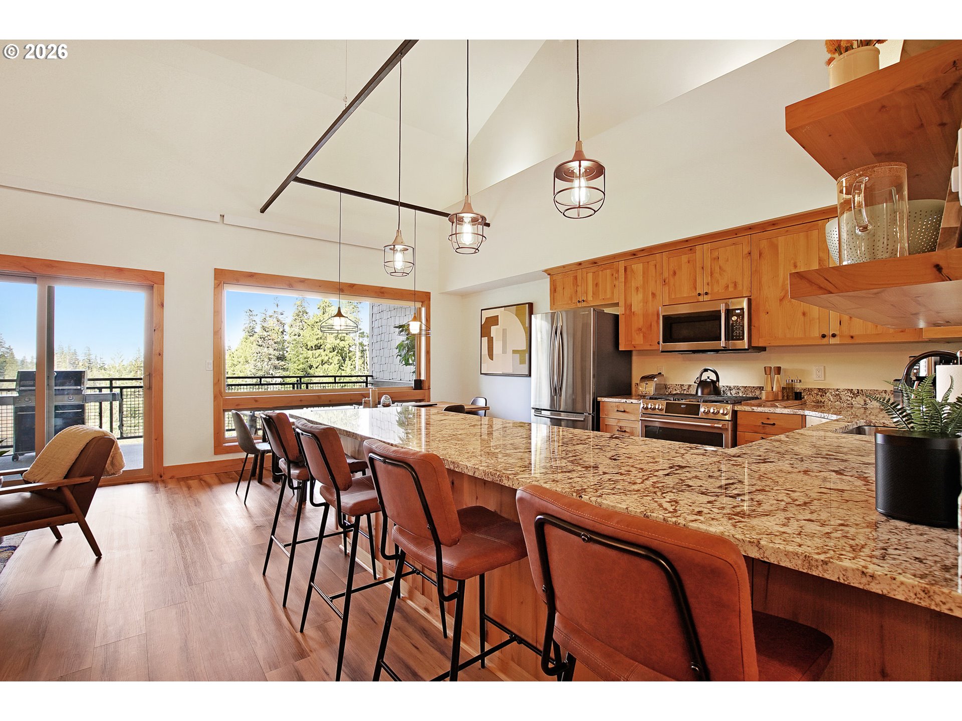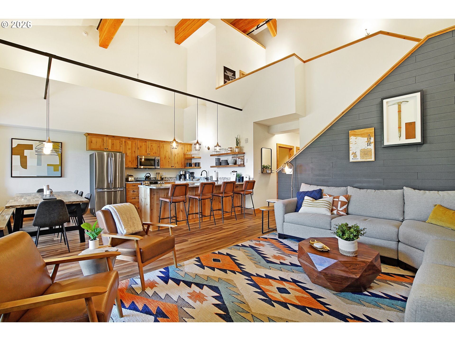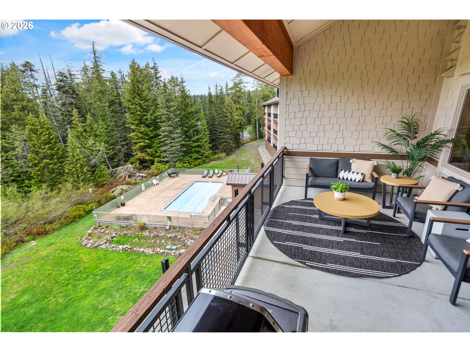 - Experience mountain living at its finest in this spacious chalet-style condo nestled in the heart of Government Camp—just moments from some of the Pacific Northwest’s premier year-round recreation.This beautifully finished 4-bedroom, 3 full bathroom retreat offers the perfect blend of comfort, space, and alpine charm. The primary suite is a true sanctuary, featuring a stunning en-suite bathroom with a large walk-in shower—perfect for relaxing after a day on the slopes.The expansive main living area showcases soaring ceilings accented by massive exposed wooden beams, creating a dramatic and inviting alpine aesthetic. A cozy gas fireplace anchors the space, making it ideal for gathering and entertaining. The kitchen and dining area are equally impressive, highlighted by custom pendant lighting and a massive eat-up island—perfect for hosting friends and family.The upper loft features two additional bedrooms and a full bathroom, offering flexible accommodations for guests or larger groups.Step outside to the covered deck and take in breathtaking views of this pristine mountain setting—an ideal spot for morning coffee or après-ski evenings.Additional amenities include access to an amazing outdoor pool area and a giant underground, secure, and dry parking garage—an invaluable feature for mountain living, keeping you protected from the elements year-round.Currently operating as a highly successful short-term rental, this property is branded as “The Clyde” and has a proven track record of generating approximately $80,000–$120,000 in annual revenue—making it not only a stunning retreat but also a compelling investment opportunity.Ideally located near Mt. Hood Skibowl, Multorpor, Summit Ski Area, and Timberline Lodge, this home offers unbeatable access to skiing, snowboarding, hiking, alpine lake days, and more. Don’t miss your chance to own “The Clyde,” your turnkey mountain escape and income-producing property.