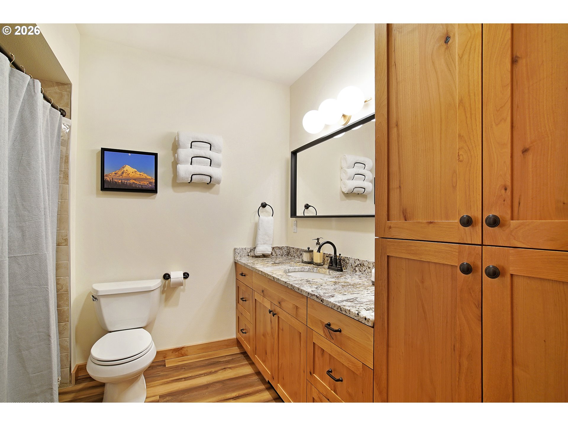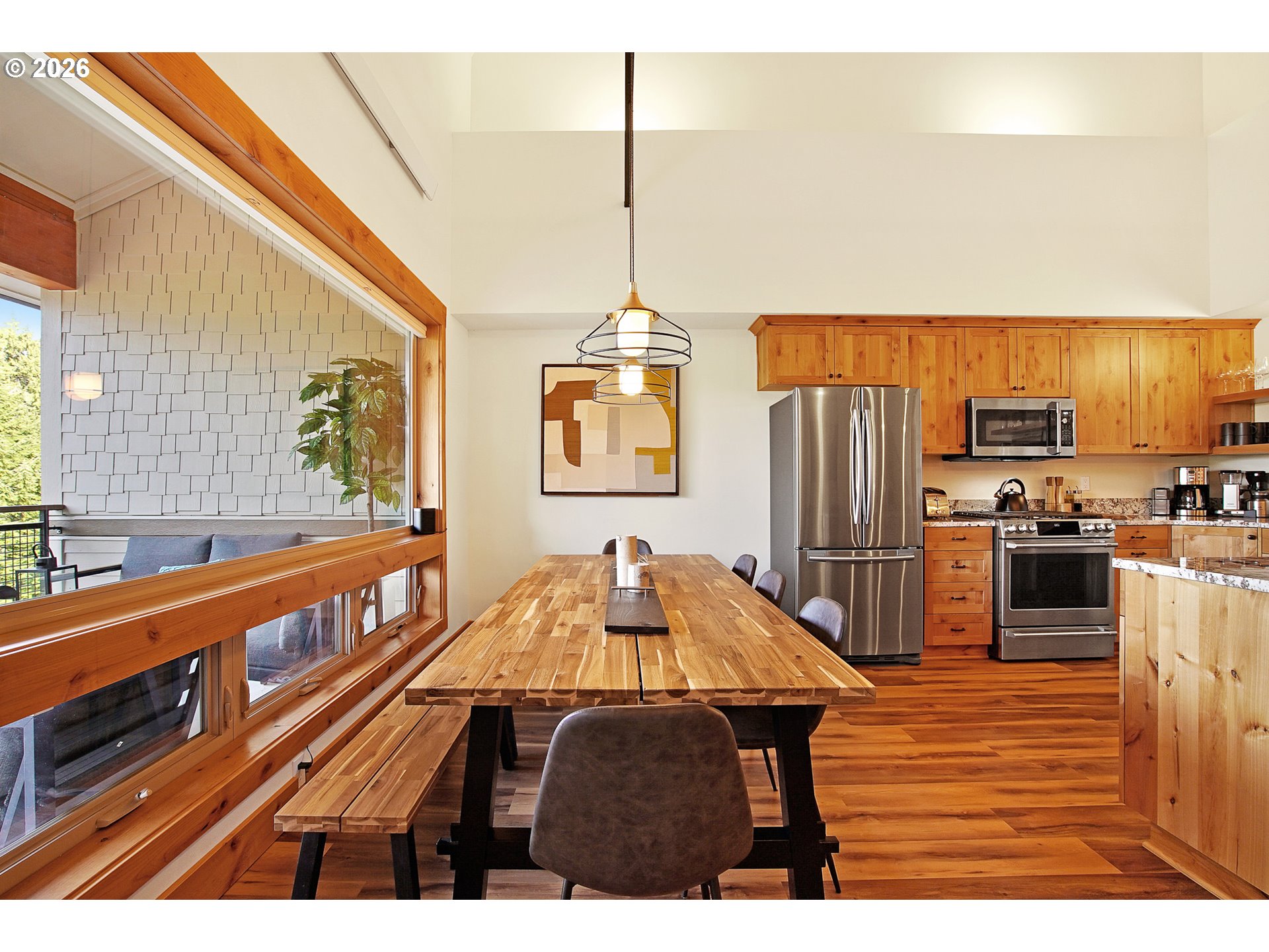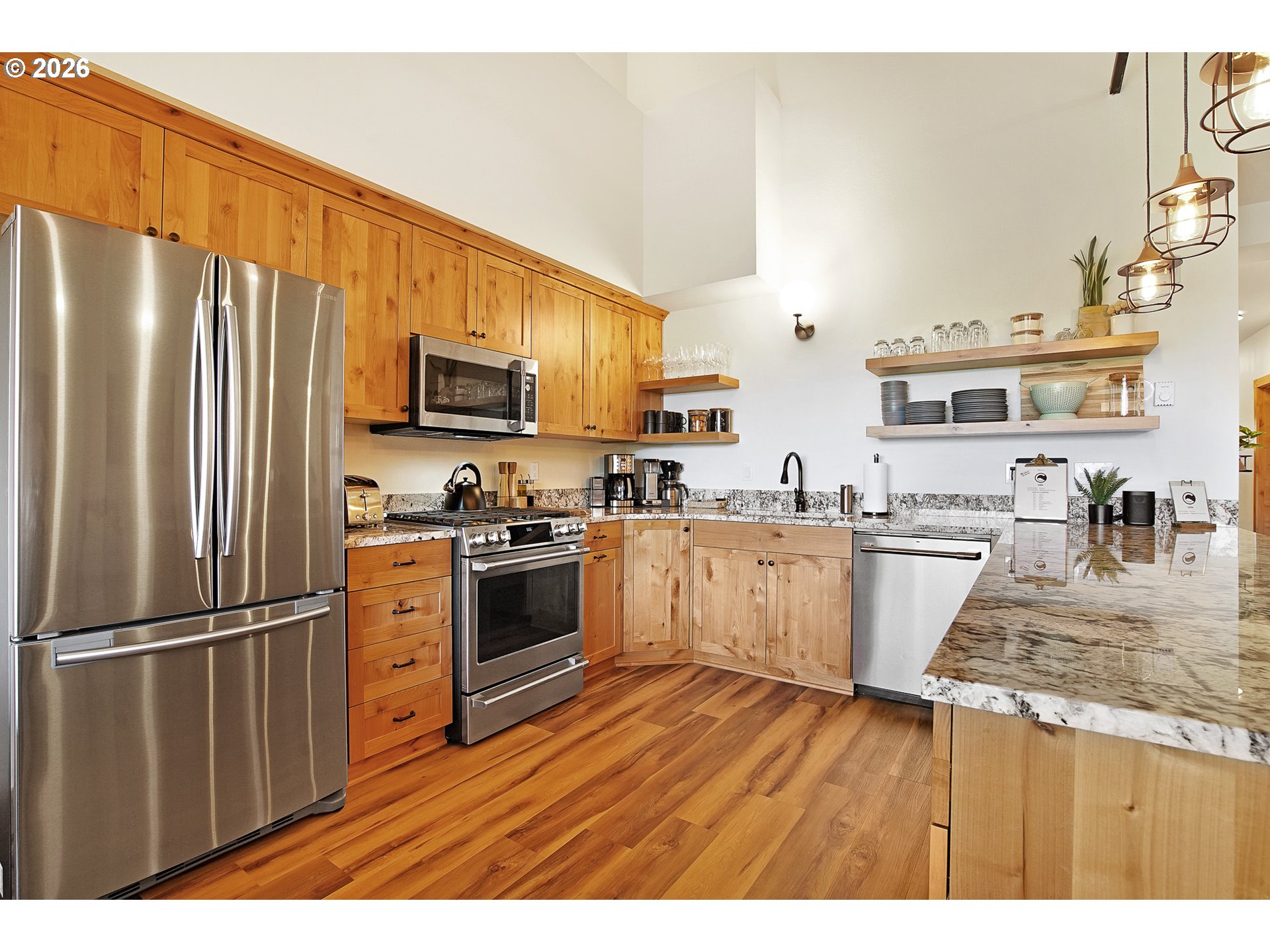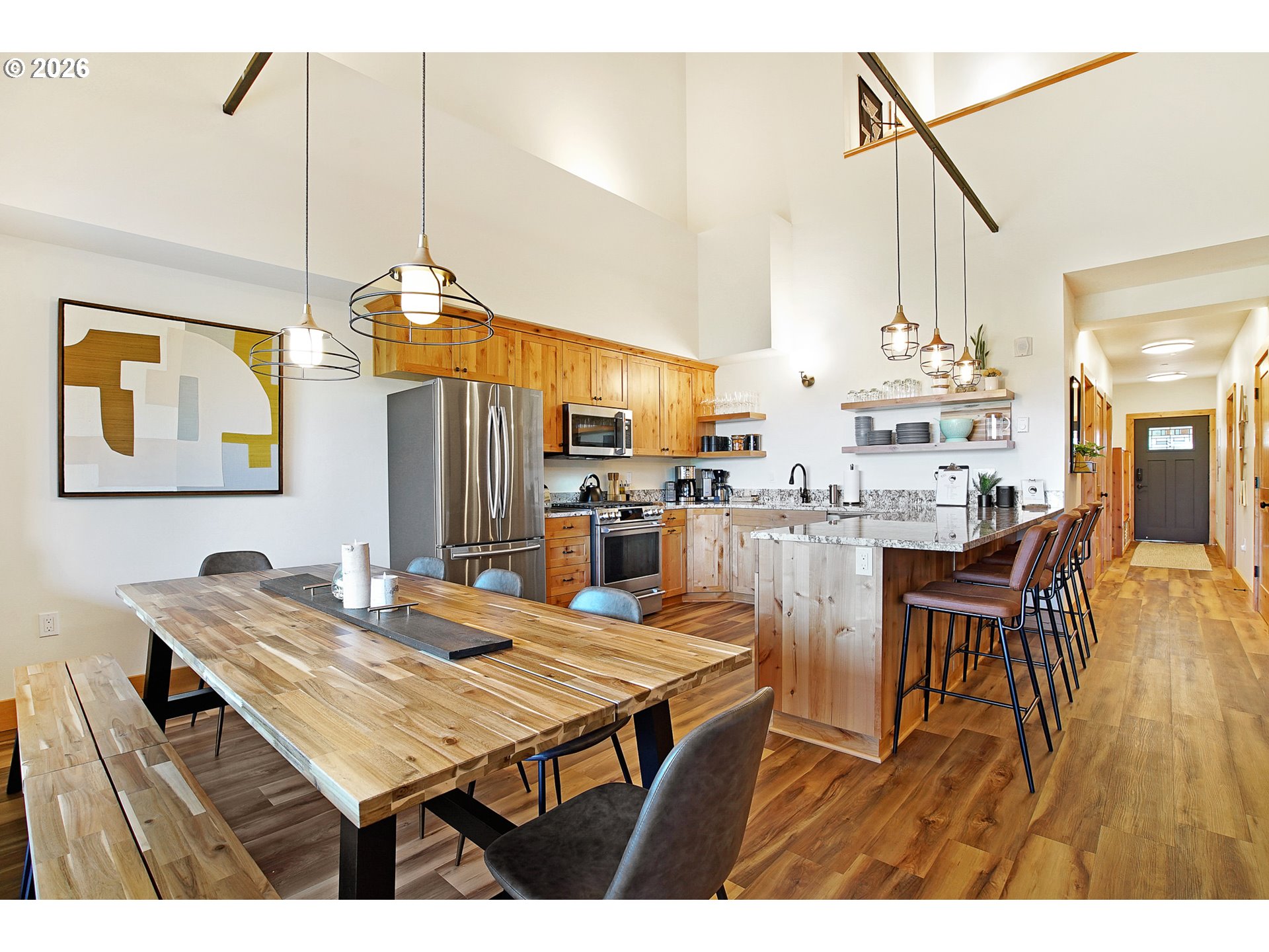 - Experience mountain living at its finest in this spacious chalet-style condo nestled in the heart of Government Camp—just moments from some of the Pacific Northwest’s premier year-round recreation.This beautifully finished 4-bedroom, 3 full bathroom retreat offers the perfect blend of comfort, space, and alpine charm. The primary suite is a true sanctuary, featuring a stunning en-suite bathroom with a large walk-in shower—perfect for relaxing after a day on the slopes.The expansive main living area showcases soaring ceilings accented by massive exposed wooden beams, creating a dramatic and inviting alpine aesthetic. A cozy gas fireplace anchors the space, making it ideal for gathering and entertaining. The kitchen and dining area are equally impressive, highlighted by custom pendant lighting and a massive eat-up island—perfect for hosting friends and family.The upper loft features two additional bedrooms and a full bathroom, offering flexible accommodations for guests or larger groups.Step outside to the covered deck and take in breathtaking views of this pristine mountain setting—an ideal spot for morning coffee or après-ski evenings.Additional amenities include access to an amazing outdoor pool area and a giant underground, secure, and dry parking garage—an invaluable feature for mountain living, keeping you protected from the elements year-round.Currently operating as a highly successful short-term rental, this property is branded as “The Clyde” and has a proven track record of generating approximately $80,000–$120,000 in annual revenue—making it not only a stunning retreat but also a compelling investment opportunity.Ideally located near Mt. Hood Skibowl, Multorpor, Summit Ski Area, and Timberline Lodge, this home offers unbeatable access to skiing, snowboarding, hiking, alpine lake days, and more. Don’t miss your chance to own “The Clyde,” your turnkey mountain escape and income-producing property.